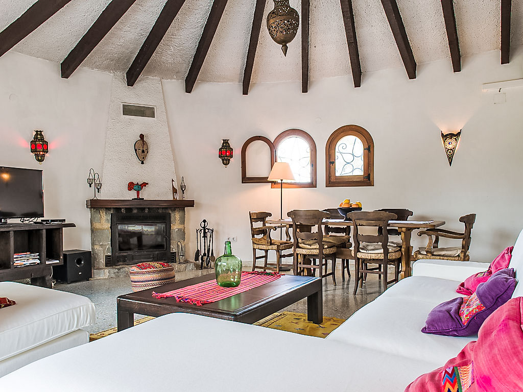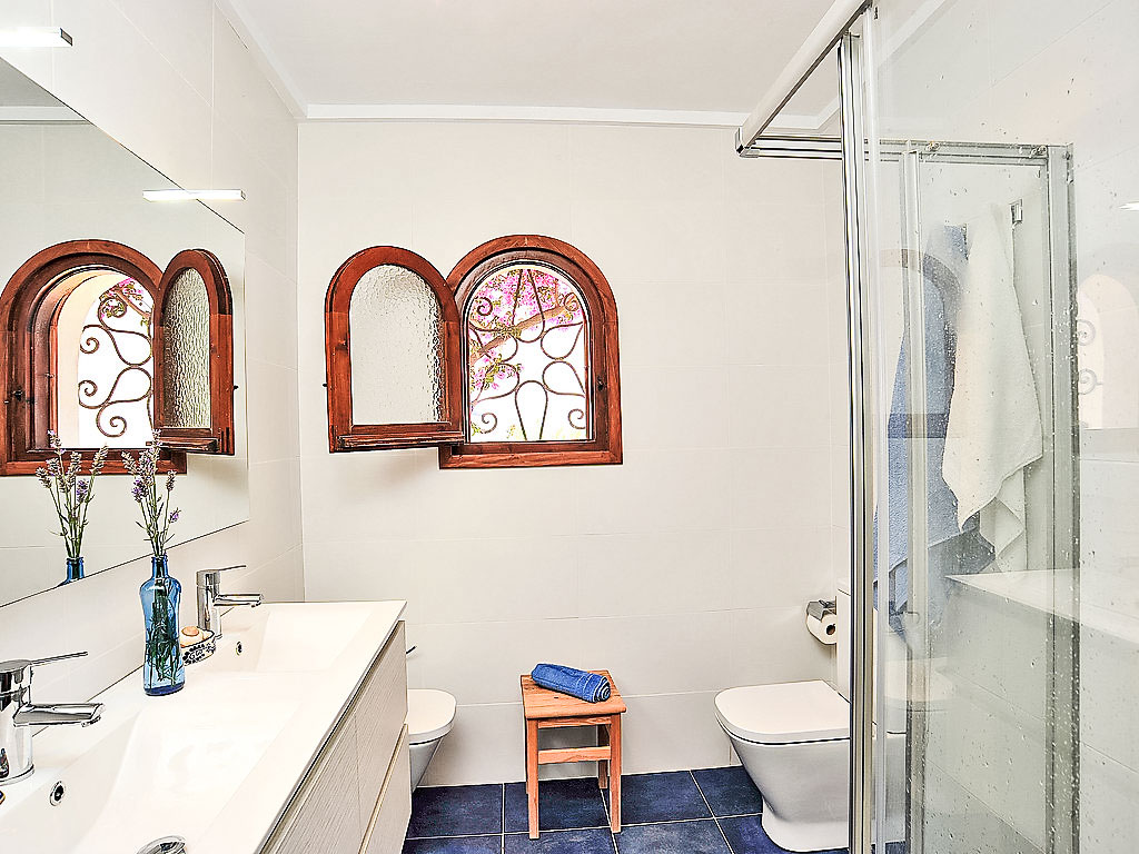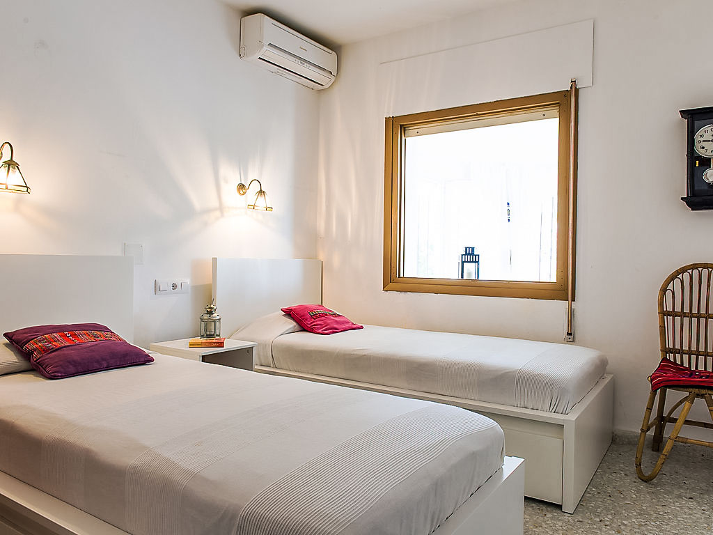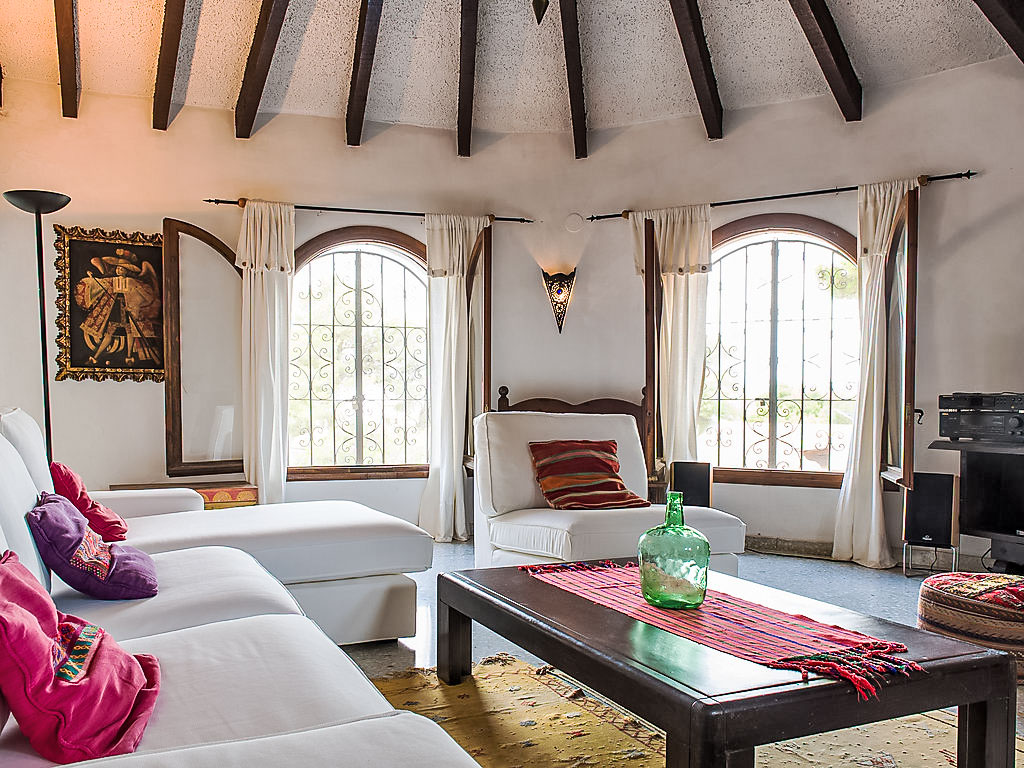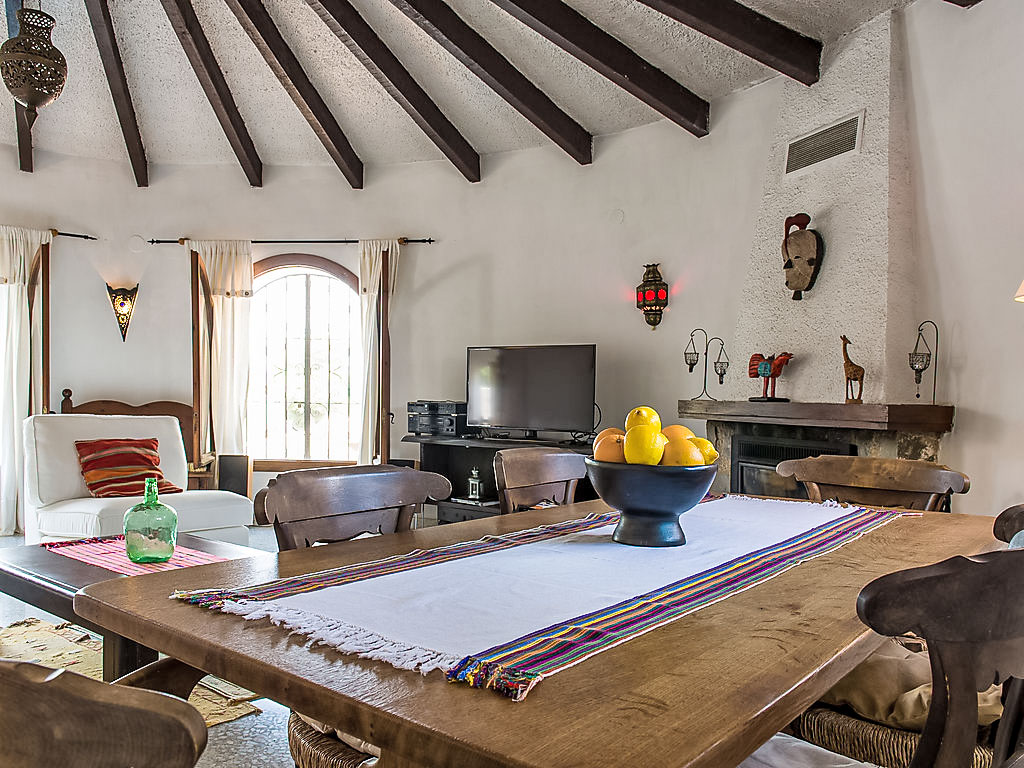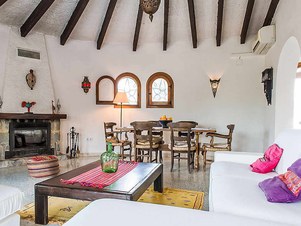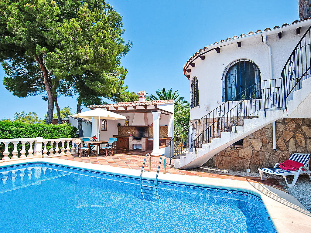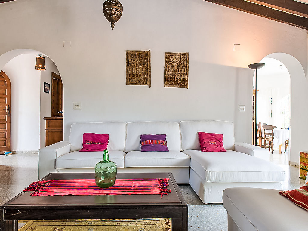 4-Zimmer-Haus 130 m2. Komfortabel eingerichtet: Wohn-/Esszimmer mit Schwedenofen, Sat-TV und Digital-TV (Flachbildschirm), Klimaanlage. Ausgang zur Veranda. 1 Zimmer mit 2 Betten (90 cm, Länge 200 cm), Klimaanlage. 1 Zimmer mit 1 franz. Bett (150 cm, Länge 200 cm), Klimaanlage. 1 Zimmer mit 1 franz. Bett (155 cm, Länge 200 cm). Küche (Backofen, Geschirrspüler, 4 Induktionskochplatten, Toaster, Wasserkocher, Mikrowelle, Tiefkühler). 2 Duschen/Bidet/WC. Terrassenmöbel, Gartengrill. Zur Verfügung: Waschmaschine, Haartrockner. Internet (Wireless LAN, gratis). Maximal 1 Haustier/Hund erlaubt. Von der Dachterrasse schöne Sicht aufs Meer und Montgó. AT427048A