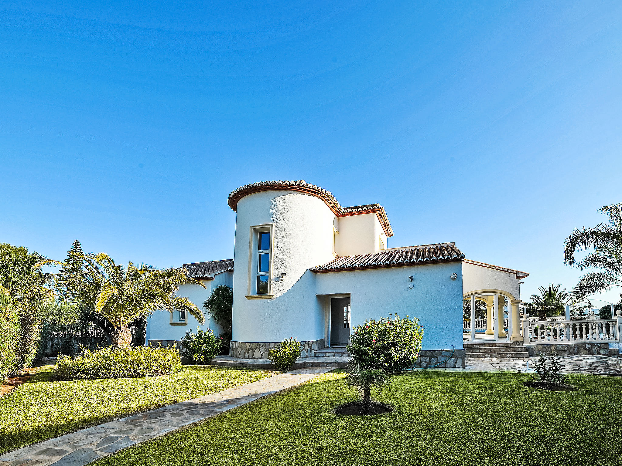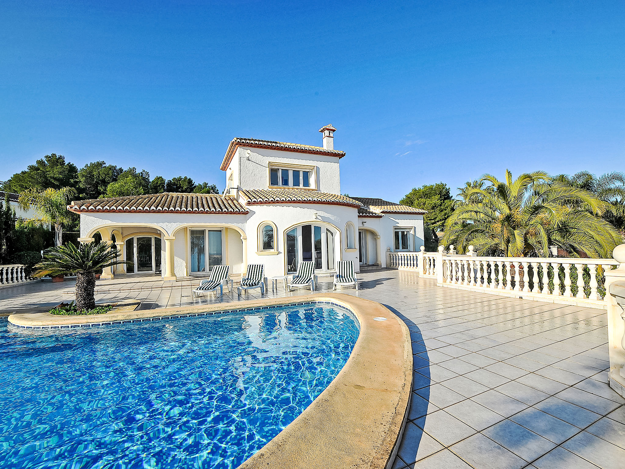 Schöne Villa "Arborcer", Baujahr 1999. Im Ortsteil Adsubia, sonnige Lage, 2 km vom Meer. Zur Alleinbenutzung: gepflegter Garten 1'000 m2 (eingezäunt) mit Rasen und Pflanzen, Schwimmbad eckig (5 x 10 m, 120 - 180 cm tief, 01.01.-31.12.) mit Innentreppe. Aussendusche. Im Hause: Sonnenterrasse, Zentralheizung, Alarmanlage. Einzelgarage. Supermarkt 1.5 km, Restaurant 1.5 km, Sandstrand "Arenal" 2 km. Jugendgruppen nur auf Anfrage.