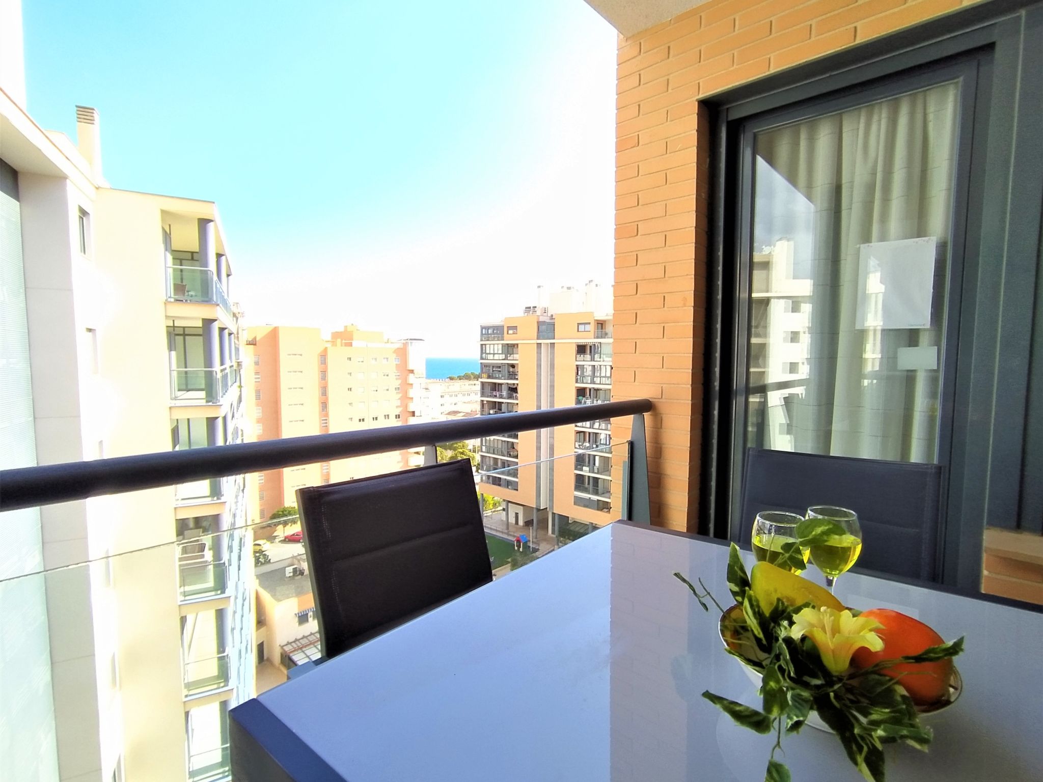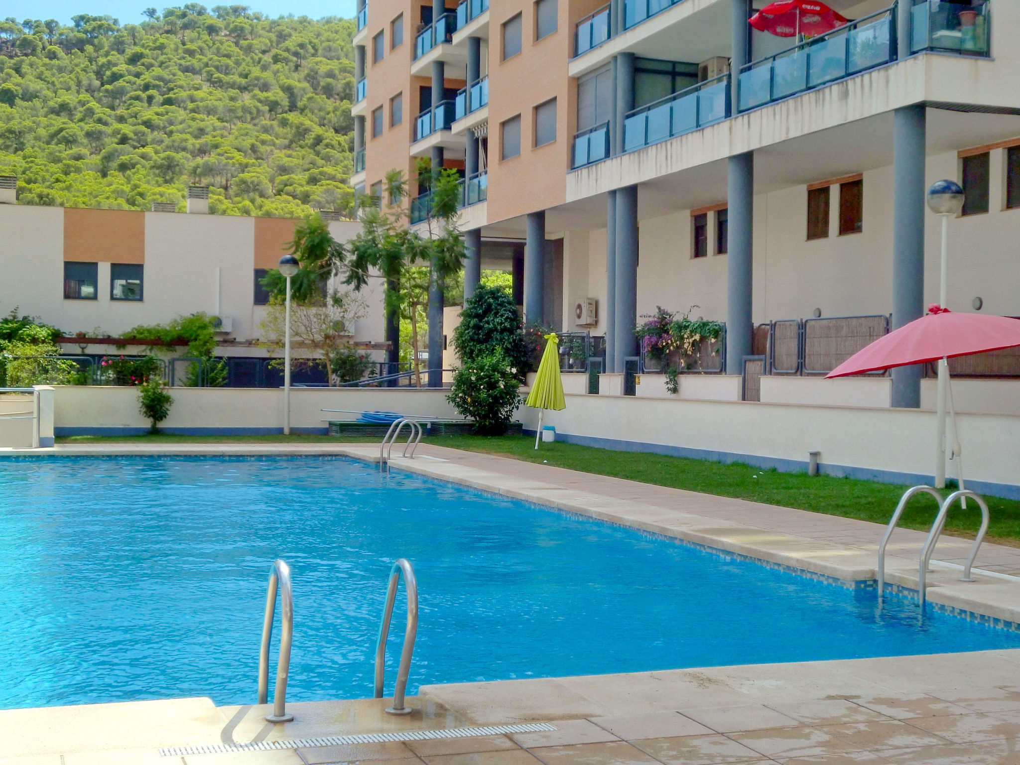 "Tamarindo", 3-Zimmer-Wohnung 72 m2 im 8. Stock. Geräumig und hell, schön und geschmackvoll eingerichtet: Wohn-/Esszimmer mit Digital-TV und Klimaanlage. Ausgang zur Terrasse. 1 Zimmer mit 2 Betten. 1 Zimmer mit 1 franz. Bett und Bad/Bidet/WC. Ausgang zur Terrasse. Offene Küche (Backofen, Geschirrspüler, Toaster, Wasserkocher, Mikrowelle, Tiefkühler). Dusche/WC. Klimaanlage, Boiler (50 Liter). Terrasse. Terrassenmöbel. Sicht auf das Meer, das Schwimmbad, den Garten und die Landschaft. Zur Verfügung: Waschmaschine, Bügeleisen, Haartrockner. Parkplatz Nr. 178 (überdacht). AT428532A