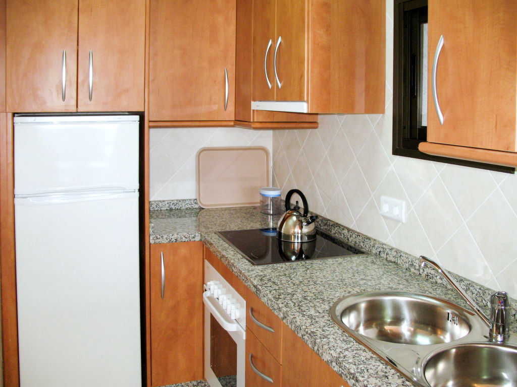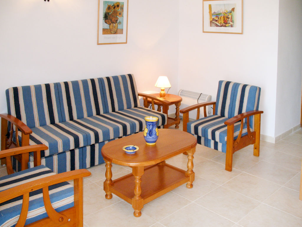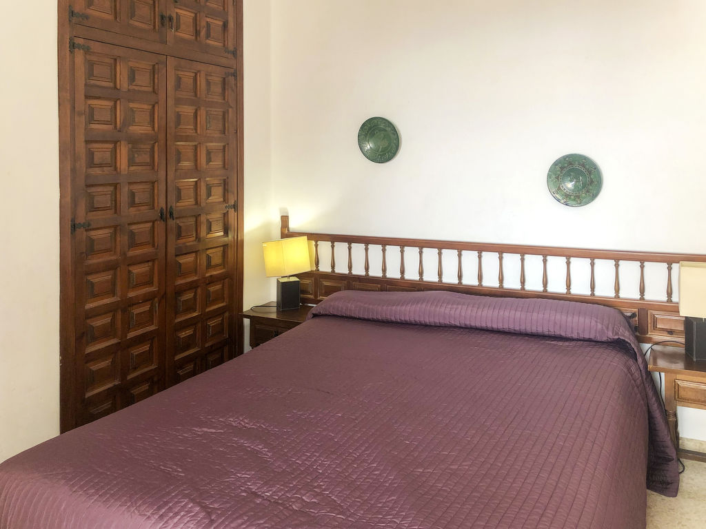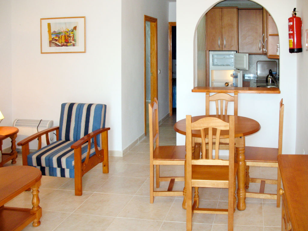 "Villa con jardin 1 dormitorio", 2-Zimmer-Villa 46 bis 50 m2. Einfach und zweckmässig eingerichtet: Wohn-/Esszimmer mit 1 Schlafmöglichkeit, Esstisch, Kabel-TV, E-Heizung und Klimaanlage. Ausgang zur Terrasse. 1 Zimmer mit 2 Betten. Offene Küche (Backofen, 4 Glaskeramikherd Platten). Bad/WC. Terrasse. Terrassenmöbel, Liegestühle (2). Zur Verfügung: Safe, Bügeleisen, Kinderhochstuhl, Babybett. Internet (Wireless LAN, gratis). Bitte beachten: geeignet für Familien. Nichtraucher-Unterkunft. A/MA/00759