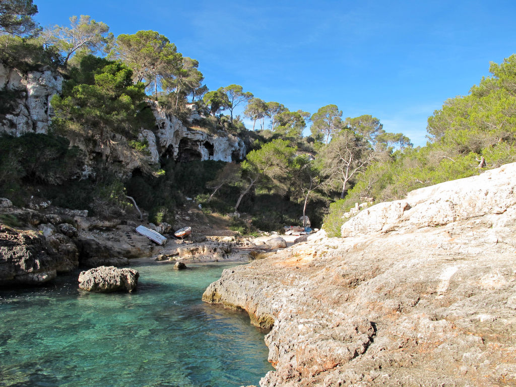 Das Ferienhaus steht direkt oberhalb der Felsbucht, am steilen Hang, mit herrlicher Sicht auf das blaue Meer. Ein Trampelpfad mit steiler Privattreppe führt vom Haus hinunter zur Bucht S'Almonia (ca. 100 m). Zum Küstenweg Calo des Marmols ca. 100m. Bäckerei, Restaurant und Bar in Es Llombards (5 km), Einkaufsmöglichkeit in Santanyí (6 km). Cala Llombards 2 km. Das ca. 200 m² große, von einem Mäuerchen umgebene Grundstück besteht aus mehreren Terrassenflächen mit Mobiliar und 3 Sonnenliegen. Gasgrill. Überdachte Parkmöglichkeit auf dem Grundstück. Feriengerechte Einrichtung. Fliesenböden. Sat-TV (deutsche Programme), DVD. Waschmaschine, Bügeleisen/-brett, Fön. Elektroradiatoren. Hinweis: Rauchen ist im Haus nicht gestattet.