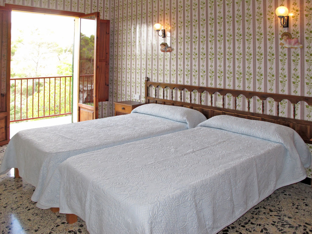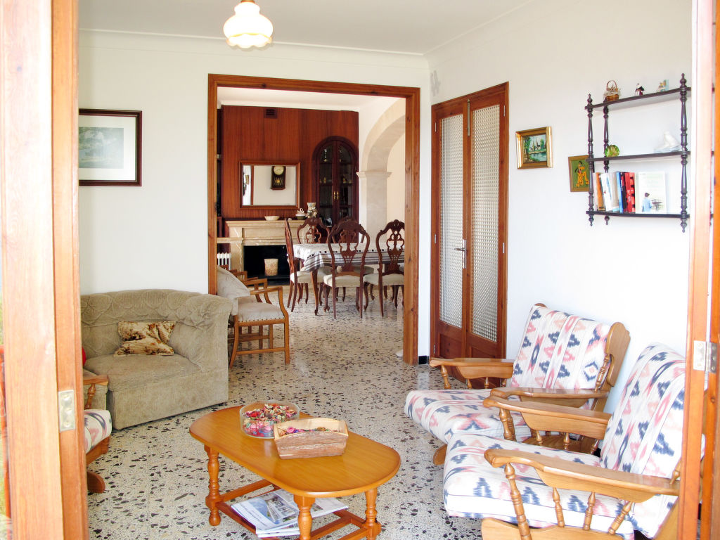 "Ses Sevines (LOM303)", 4-Zimmer-Haus 110 m2 auf 2 Stockwerken. Zweckmässig eingerichtet: 1 Zimmer mit 2 Betten. Ausgang zur Terrasse. 1 Zimmer mit 1 franz. Bett (135 cm, Länge 190 cm). Ausgang zum Balkon. 1 Zimmer mit 1 franz. Bett (150 cm, Länge 190 cm), E-Heizofen. Ausgang zum Balkon. Dusche/WC. Obergeschoss: Wohn-/Esszimmer mit offenem Kamin, Esstisch, Sat-TV, DVD und E-Heizofen. Ausgang zum Balkon. Küche (Backofen, Geschirrspüler, 3 Glaskeramikherd Platten, Toaster, Wasserkocher, Mikrowelle, Tiefkühler, elektrische Kaffeemaschine). Dusche/WC. Balkon, 2 Terrassen. Balkonmöbel, Gartengrill (mobil), Liegestühle (3). Sicht auf das Meer. Zur Verfügung: Waschmaschine, Bügeleisen, Kinderhochstuhl, Babybett, Haartrockner. Bitte beachten: Nichtraucher-Haus. 4-Zimmer-Haus, 2 Etagen, ca. 110 m². Eingang in Obergeschoss: Wohnraum mit Sitzgruppe, Kamin, Essplatz und Balkonausgang. Küche (3 Ceranfelder, Backofen, Mikrowelle, Geschirrspüler, Kühl-/Gefrierkombination, Kaffeemaschine, Wasserkocher, Toaster). Dusche/WC. Erdgeschoss: Zweibettzimmer. 2 x Schlafzimmer mit franz. Bett (1,50 x 1,90 m und 1,35 x 1,90 m). Dusche/WC. Von allen Schlafzimmern Balkon- bzw. Terrassenausgang. ETV1786