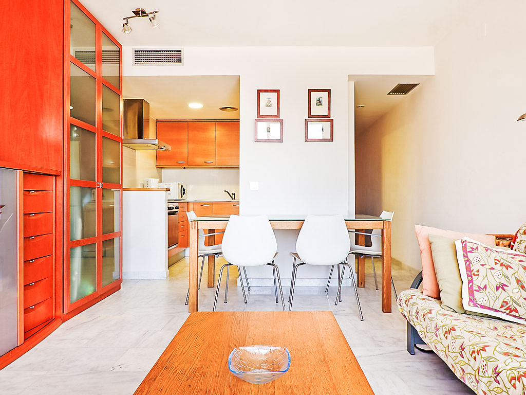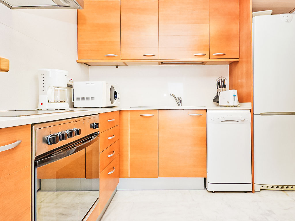 3-Zimmer-Wohnung 55 m2 im 2. Stock. Modern und geschmackvoll eingerichtet: Wohn-/Esszimmer mit 1 Diwanbett, Esstisch und TV (Flachbildschirm), Klimaanlage. Ausgang zum Balkon. 1 Zimmer mit 1 franz. Bett (1 x 150 cm), Klimaanlage. 1 Zimmer mit 1 Ausziehbett (2 Pers. 2 x 90 cm), Klimaanlage. Offene Küche (Backofen, Geschirrspüler, 4 Glaskeramikherd Platten, Mikrowelle, Tiefkühler, elektrische Kaffeemaschine). Dusche/Bidet/WC. Klimaanlage. Terrasse 5 m2. Balkonmöbel. Herrliche Sicht auf das Meer und den Hafen. Zur Verfügung: Waschmaschine, Kinderhochstuhl, Babybett. Internet (Wireless LAN). Parkplatz Nr. 24. Bitte beachten: geeignet für Familien. Parkplatz nur für kleine Wagen. TV nur ES. HUTTE000086