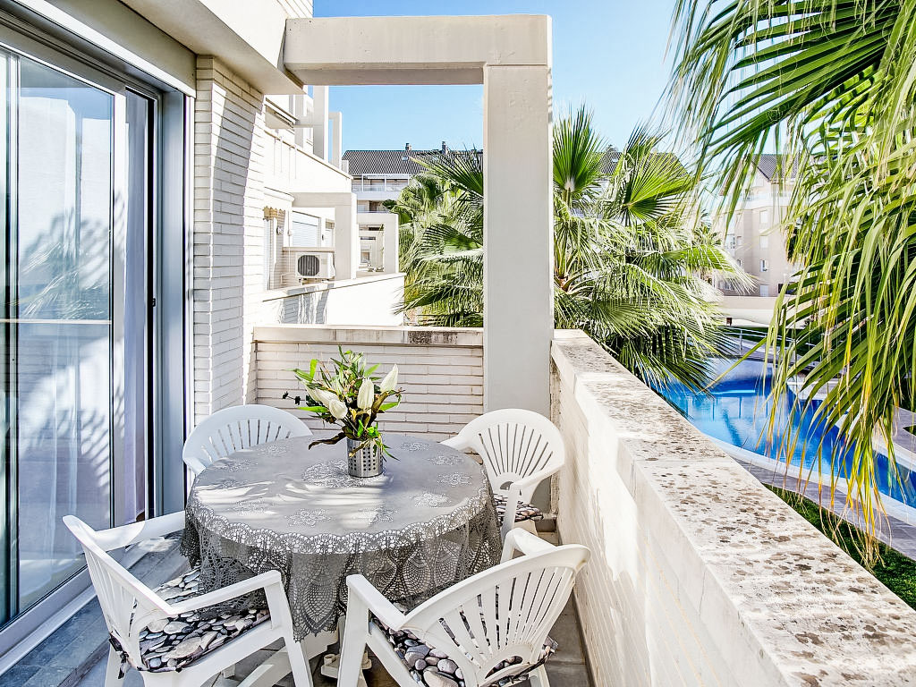Grosses Appartementhaus "Elegance", auf 4 Stockwerken, Baujahr 2006. Am Ortsrand, 700 m vom Zentrum von Dénia, 500 m vom Meer. Zur Mitbenutzung: Garten mit Rasen, Schwimmbad (saisonale Verfügbarkeit: 01.Jan.-31.Dez.). Kinderbecken. In der Anlage: Sauna, Fitnessraum, Spielzimmer, Fahrstuhl (zur Mitbenutzung). Treppenweg (15 Stufen) bis zum Haus. Parkplatz. Einkaufsgeschäft 1 km, Supermarkt 1 km, Bar, Bushaltestelle 400 m, Sandstrand 500 m. Sporthafen 2 km, Golfplatz (18 Loch) 8 km, Tennis 500 m. Der Besitzer akzeptiert keine Jugendgruppen.