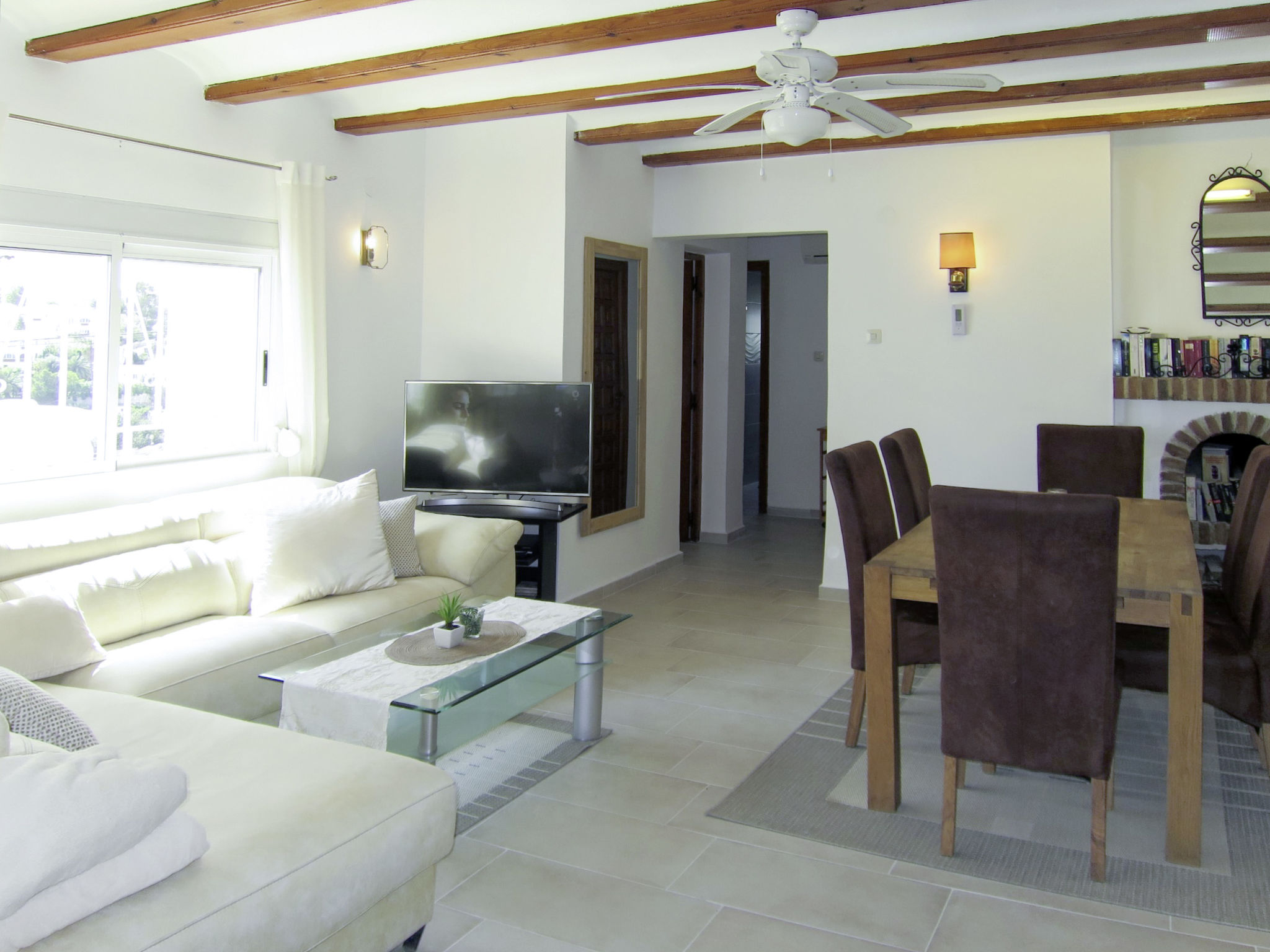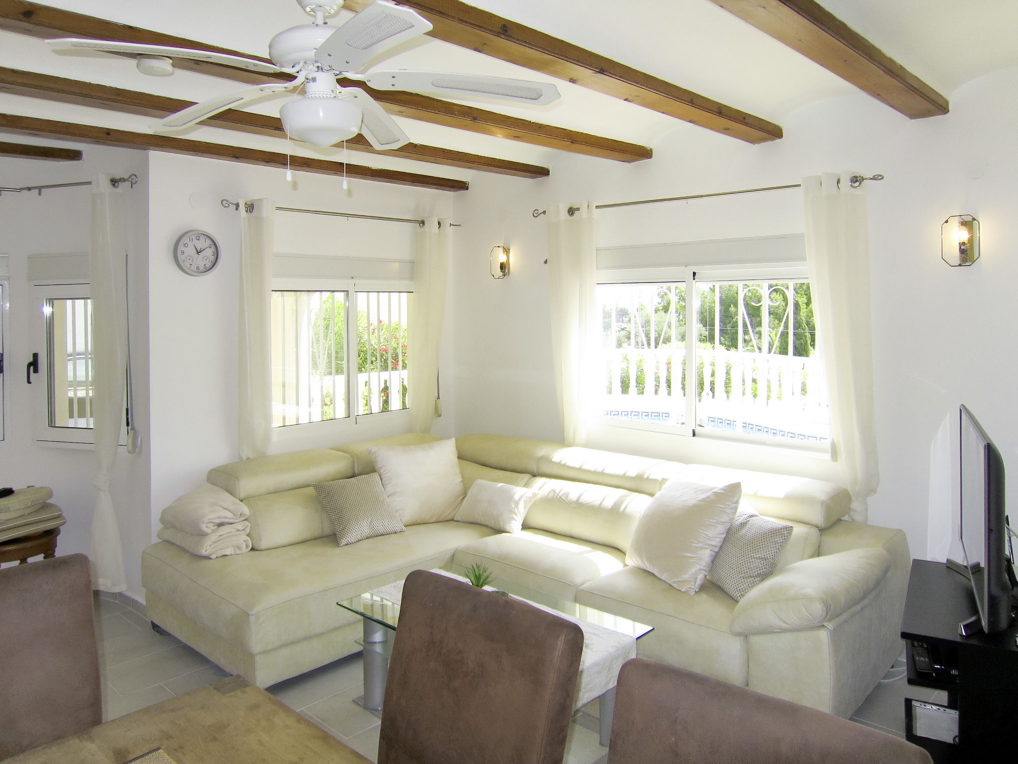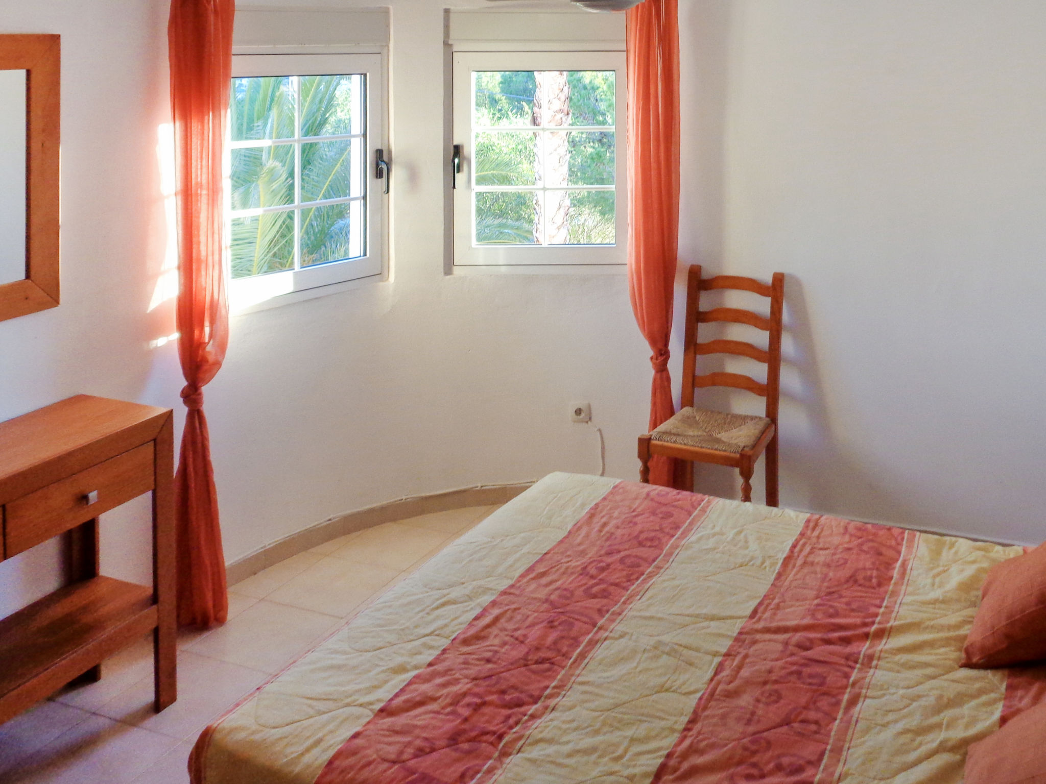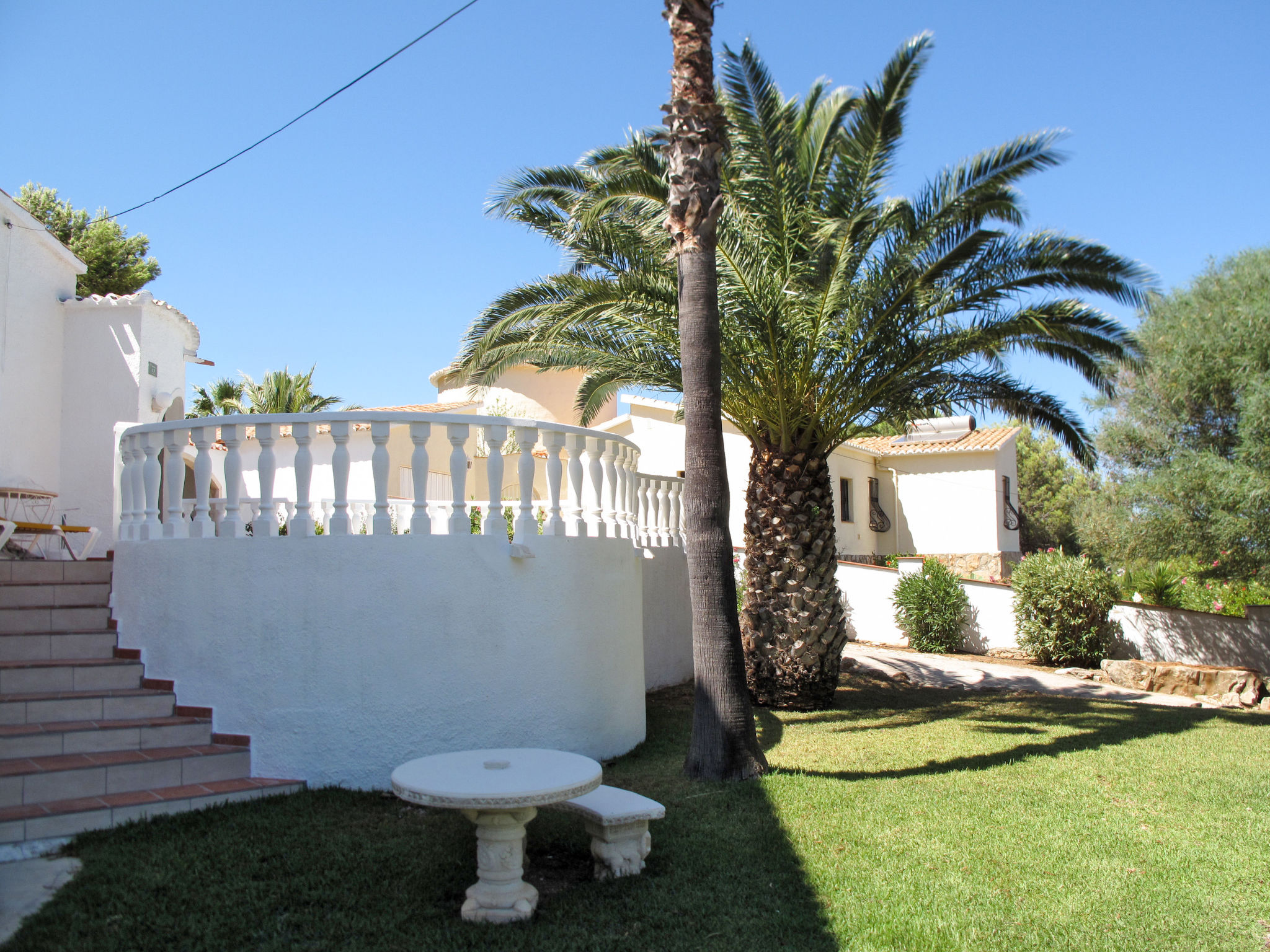 Die CASA ROMANTICA steht im Ortsteil Galleretes, in schöner Aussichtslage mit Blick auf das Meer und den Berg Montgó. Ortsmitte Denia und Strand 2 km. Tennis ca. 100 m. Restaurant ca. 150 m. Ca. 850 m² großes, abgeschlossenes Grundstück mit Palmen, Rasenfläche, Bougainvilleen, Oleander, Hibiscus und Agaven. Schöner geschwungener Pool (ca. 28 m², ganzjährig geöffnet) mit Poolterrasse, 4 Sonnenliegen und Sonnenschirm. Grill. Überdachte Terrasse (ca. 16 m²) mit Gartenmöbeln. Mit Natursteinen geflieste Grundstückseinfahrt. 1 überdachter Parkplatz. Weitere Parkmöglichkeiten auf dem Grundstück. Das Haus ist hell und feriengerecht eingerichtet. Einbauschränke. Fliesenböden. Sat-TV. Internetzugang (WLAN, inklusive). Waschmaschine. Klimaanlage mit Kühl-/Heizfunktion. Hinweis: Rauchen ist im Haus nicht gestattet.