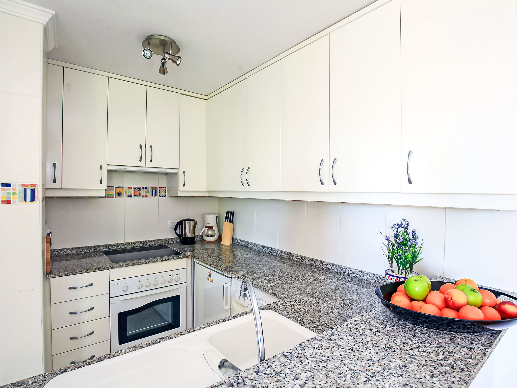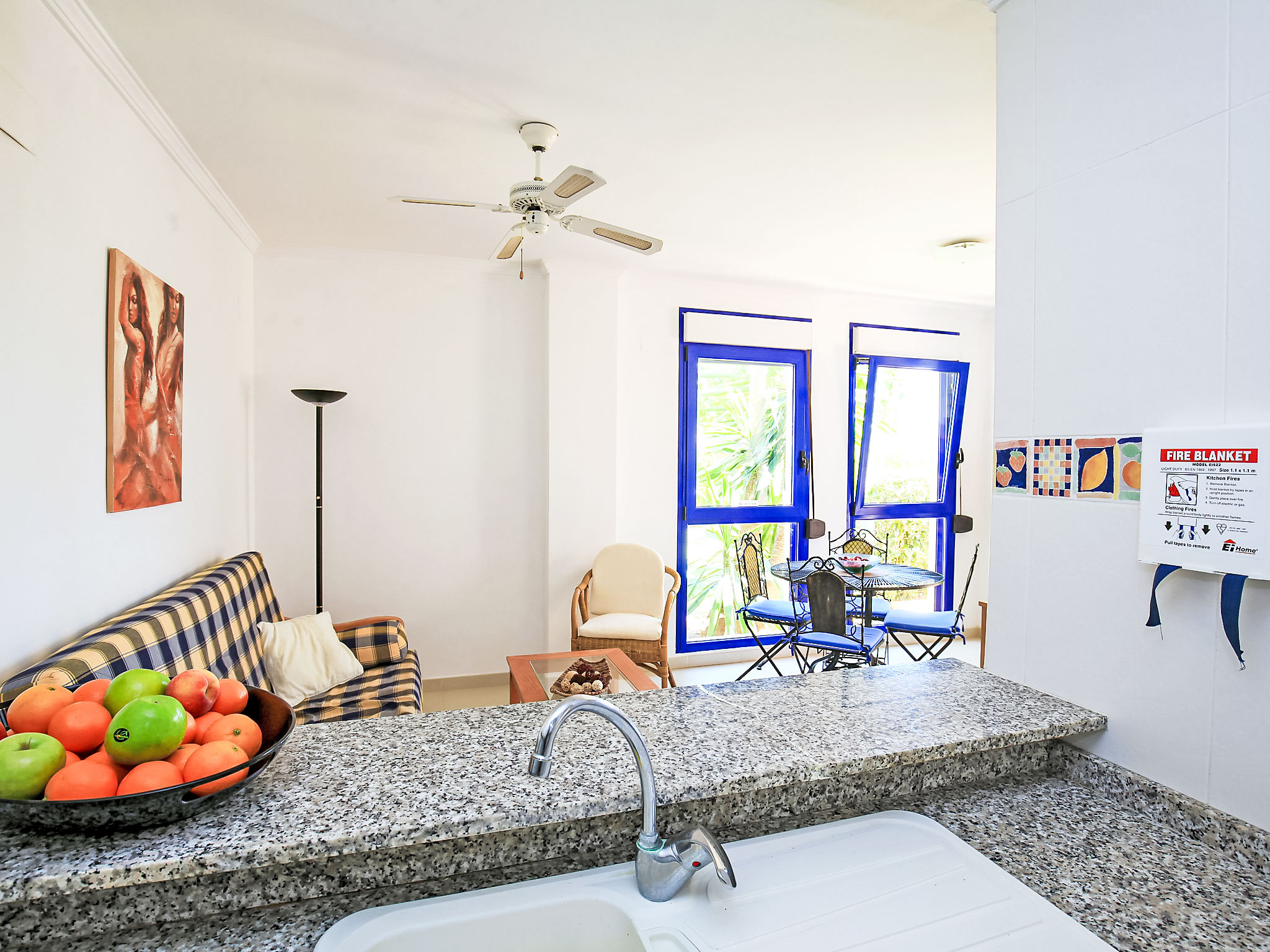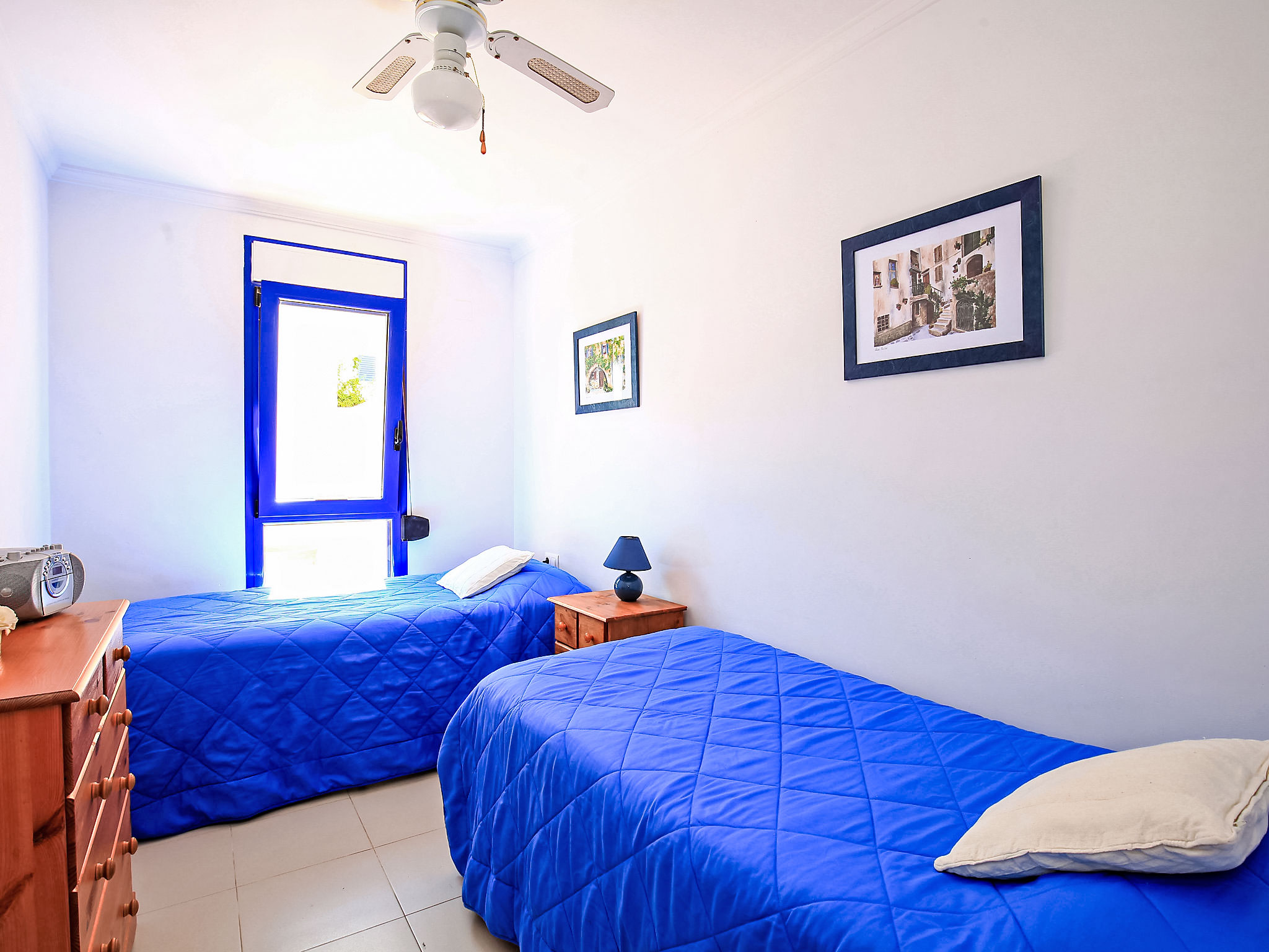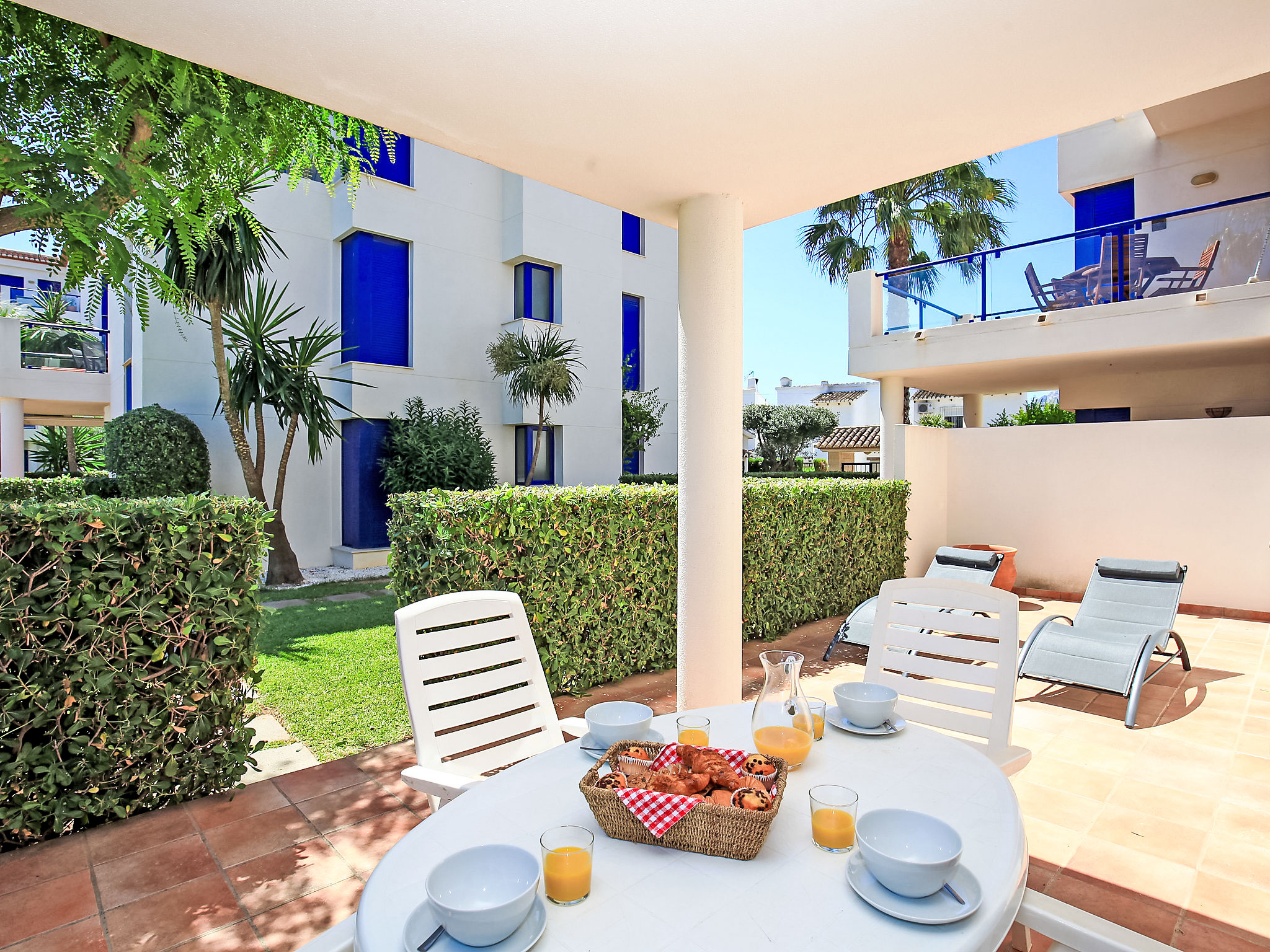"Alma del Sol", 3-Zimmer-Wohnung 60 m2, im Erdgeschoss. Einfach eingerichtet: Wohn-/Esszimmer mit Digital-TV, DVD, E-Heizofen, Klimaanlage und Warmluftheizung. Ausgang zum Garten, zur Terrasse, zum Schwimmbad. 1 Zimmer mit 1 franz. Bett (135 cm, Länge 190 cm), Dusche/WC, E-Heizofen, Klimaanlage und Warmluftheizung. Ausgang zur Terrasse. 1 Zimmer mit 2 Betten (90 cm, Länge 190 cm), Radio und CD. Offene Küche (Backofen, 4 Glaskeramikherd Platten, Mikrowelle). Bad/WC. Terrasse 28 m2 teilweise überdacht. Terrassenmöbel. Zur Verfügung: Waschmaschine, Kinderhochstuhl, Babybett. Internet (Wireless LAN, gratis). Parkplatz Nr. 2. Bitte beachten: Kühlschrank ohne Gefrierfach. TV nur ES. AT-430466-A