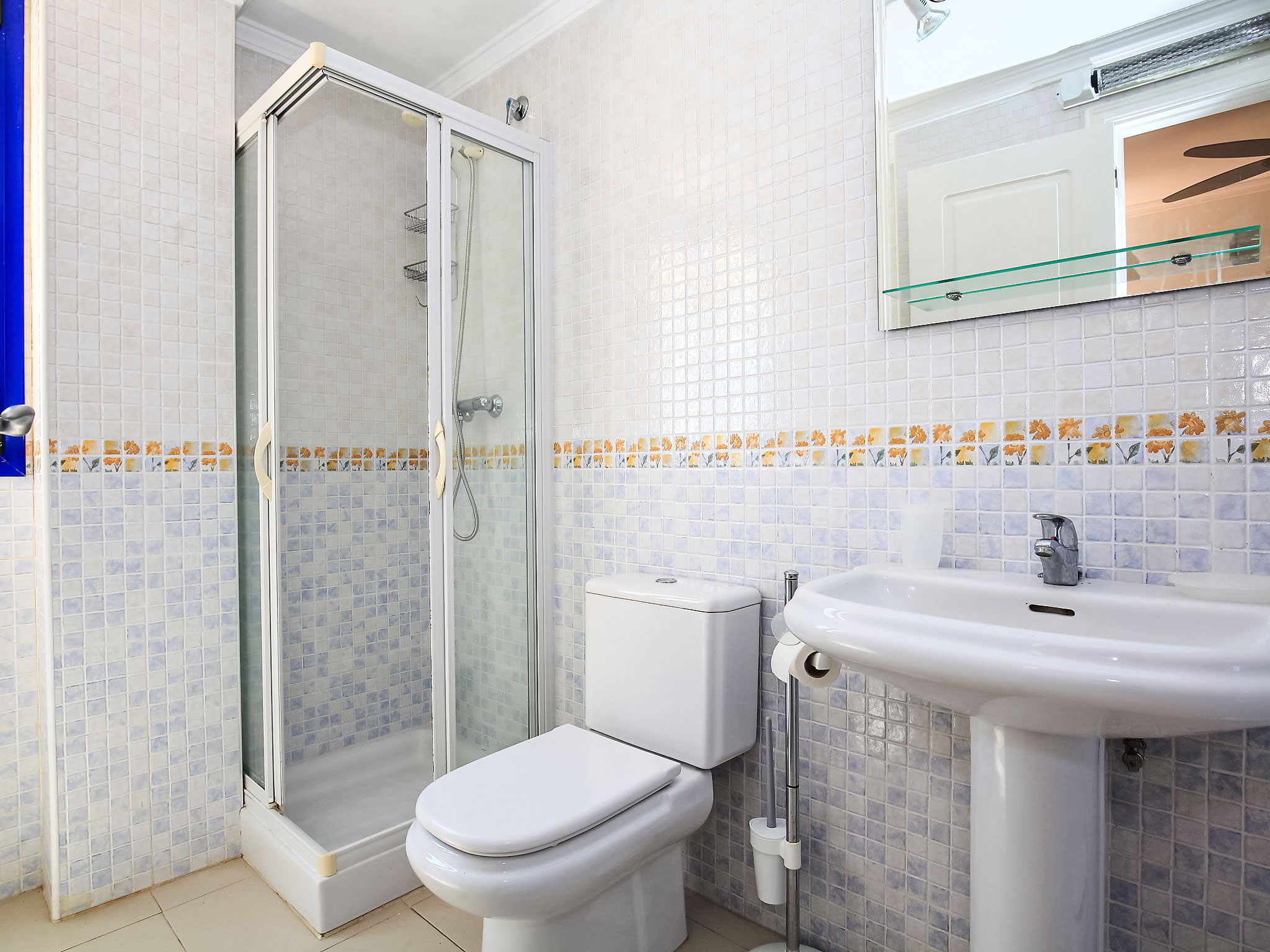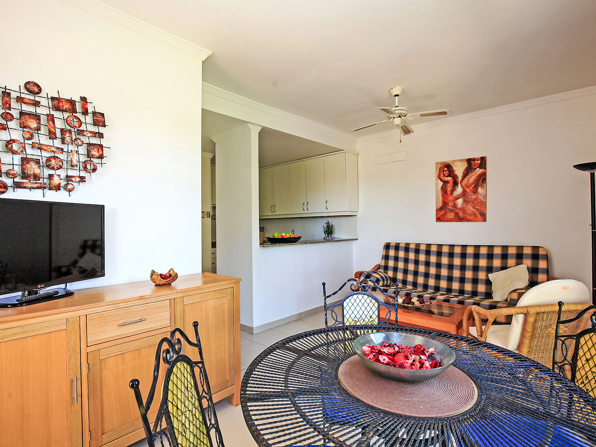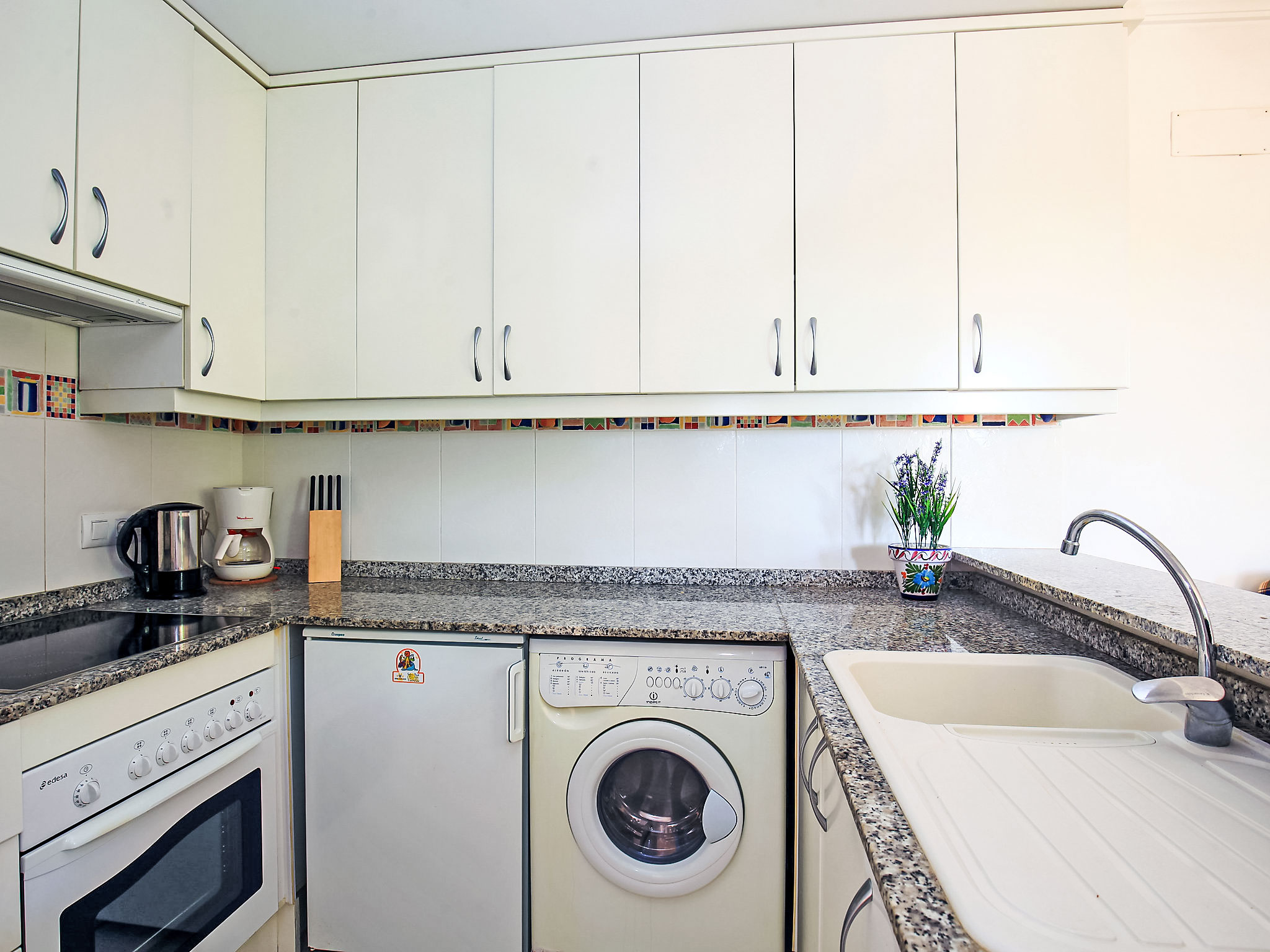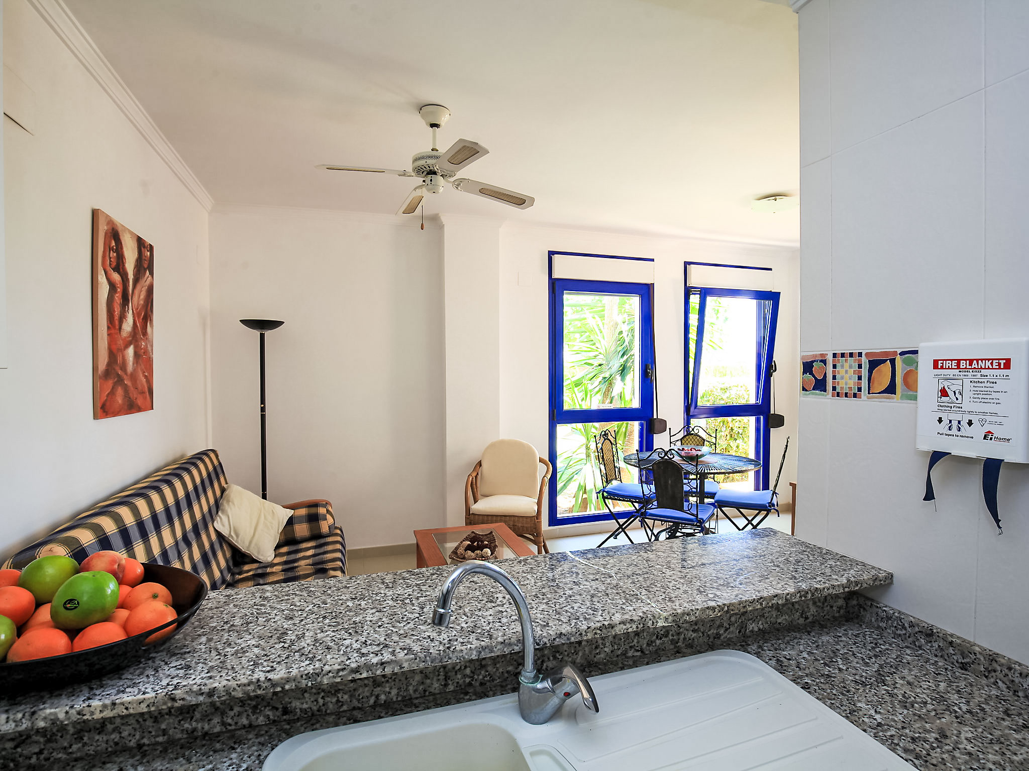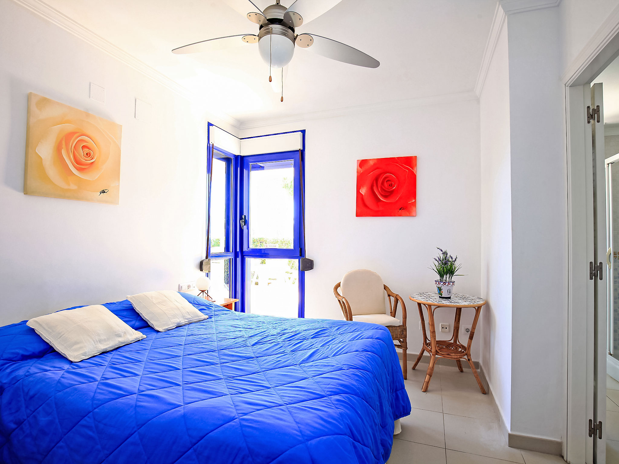 "Alma del Sol", 3-Zimmer-Wohnung 60 m2, im Erdgeschoss. Einfach eingerichtet: Wohn-/Esszimmer mit Digital-TV, DVD, E-Heizofen, Klimaanlage und Warmluftheizung. Ausgang zum Garten, zur Terrasse, zum Schwimmbad. 1 Zimmer mit 1 franz. Bett (135 cm, Länge 190 cm), Dusche/WC, E-Heizofen, Klimaanlage und Warmluftheizung. Ausgang zur Terrasse. 1 Zimmer mit 2 Betten (90 cm, Länge 190 cm), Radio und CD. Offene Küche (Backofen, 4 Glaskeramikherd Platten, Mikrowelle). Bad/WC. Terrasse 28 m2 teilweise überdacht. Terrassenmöbel. Zur Verfügung: Waschmaschine, Kinderhochstuhl, Babybett. Internet (Wireless LAN, gratis). Parkplatz Nr. 2. Bitte beachten: Kühlschrank ohne Gefrierfach. TV nur ES. AT-430466-A