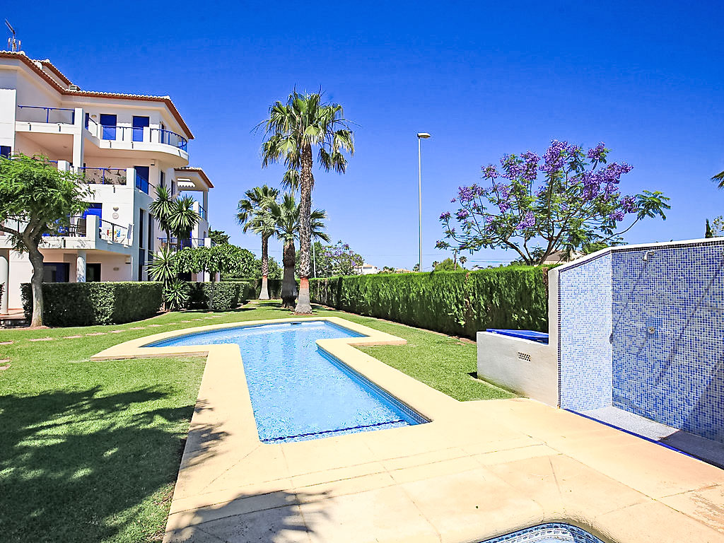 Appartementhaus "Alma del Sol", auf 3 Stockwerken, Baujahr 2002. 3 km vom Zentrum von Els Poblets, 10 km vom Zentrum von Dénia, 400 m vom Meer, Strasse zu überqueren, an einer Hauptstrasse. Zur Mitbenutzung: gepflegter Garten mit Rasen und Pflanzen, Schwimmbad (8 x 14 m, saisonale Verfügbarkeit: 01.Jan.-31.Dez.) mit Innentreppe. Kinderbecken, Aussendusche, Parkplatz. Supermarkt 900 m, Restaurant, Bar, Café 600 m, Bushaltestelle 100 m, Sandstrand 400 m, Steinstrand 800 m. Golfplatz 8 km.