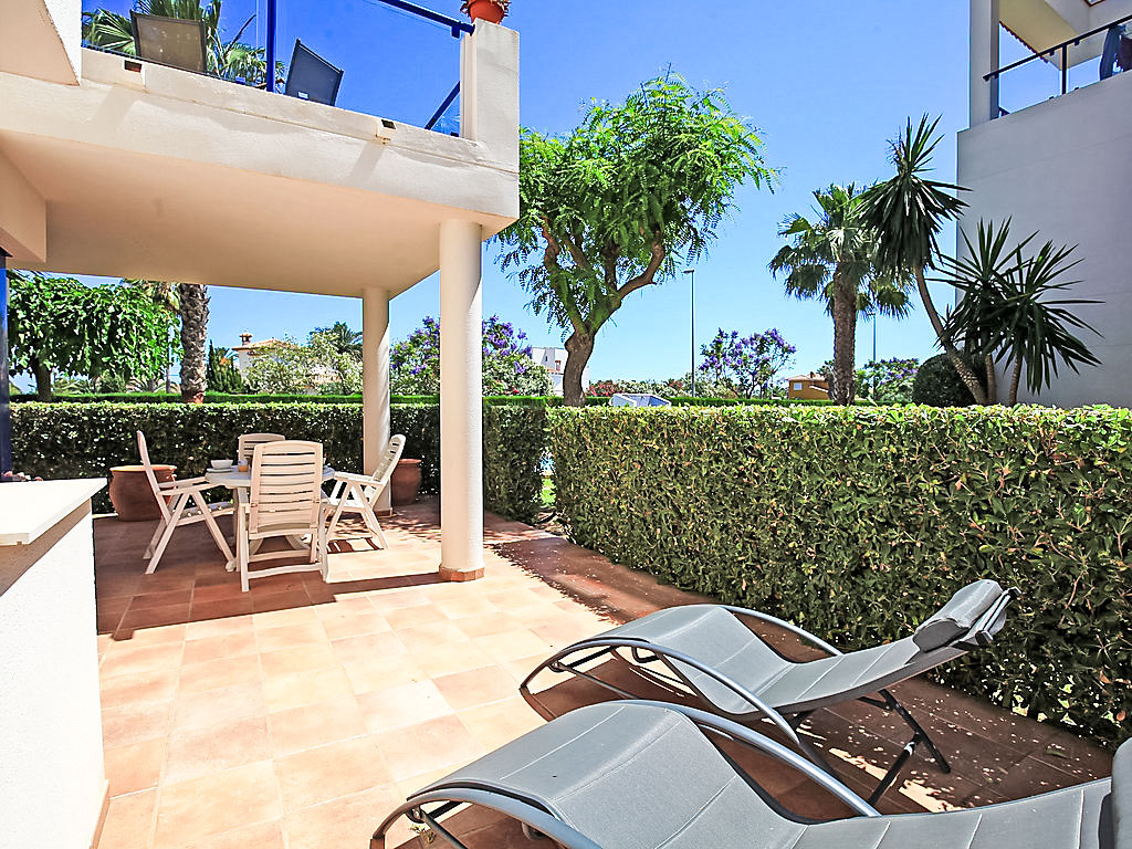 "Alma del Sol", 3-Zimmer-Wohnung 60 m2, im Erdgeschoss. Einfach eingerichtet: Wohn-/Esszimmer mit Digital-TV, DVD, E-Heizofen, Klimaanlage und Warmluftheizung. Ausgang zum Garten, zur Terrasse, zum Schwimmbad. 1 Zimmer mit 1 franz. Bett (135 cm, Länge 190 cm), Dusche/WC, E-Heizofen, Klimaanlage und Warmluftheizung. Ausgang zur Terrasse. 1 Zimmer mit 2 Betten (90 cm, Länge 190 cm), Radio und CD. Offene Küche (Backofen, 4 Glaskeramikherd Platten, Mikrowelle). Bad/WC. Terrasse 28 m2 teilweise überdacht. Terrassenmöbel. Zur Verfügung: Waschmaschine, Kinderhochstuhl, Babybett. Internet (Wireless LAN, gratis). Parkplatz Nr. 2. Bitte beachten: Kühlschrank ohne Gefrierfach. TV nur ES. AT-430466-A