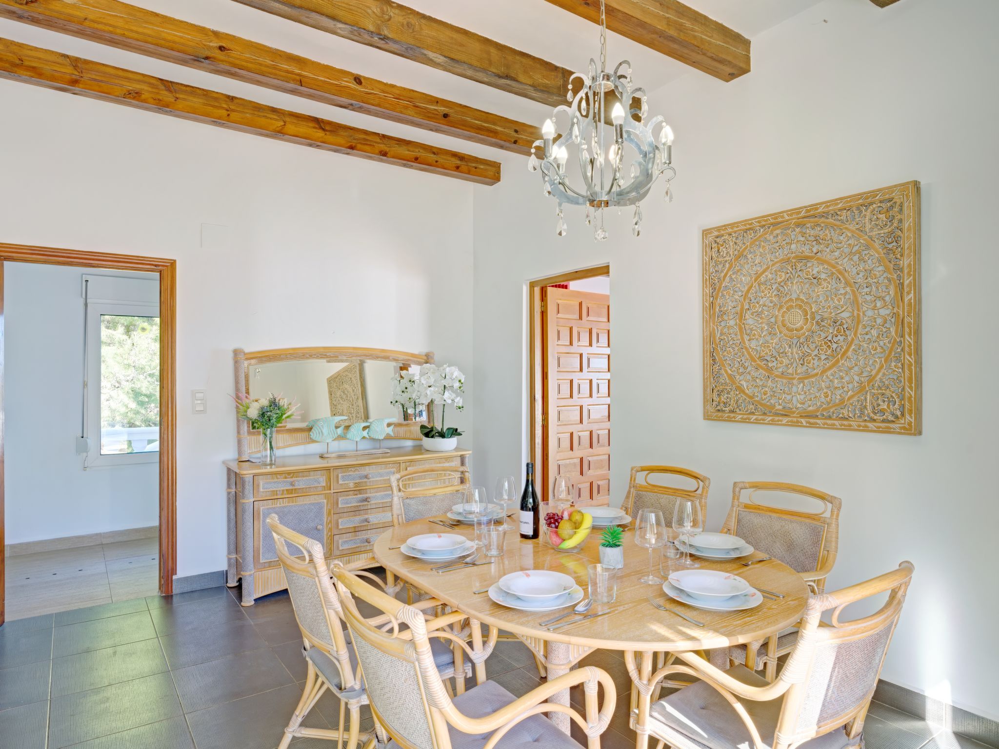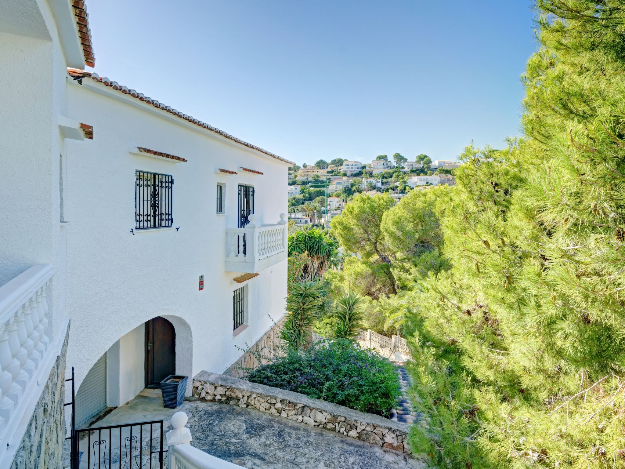 Schöne Villa "Batavia". Im Ortsteil Balcón al Mar, ruhige, sonnige, erhöhte Lage in einem Wohnquartier, 6 km vom Meer. Zur Alleinbenutzung: Garten 1'300 m2 (eingezäunt), Schwimmbad (5 x 10 m, 01.01.-31.12.) mit Innentreppe. Aussendusche. Im Hause: Zentralheizung. Treppenweg (19 Stufen) bis zum Haus. Supermarkt 3 km, Restaurant 1 km, Sandstrand "Arenal" 8 km, Steinstrand "Granadella" 6 km. Jugendgruppen nur auf Anfrage. Die Nachbarschaft ist sehr lärmempfindlich. Ruhe und gutes Benehmen wird erwartet.