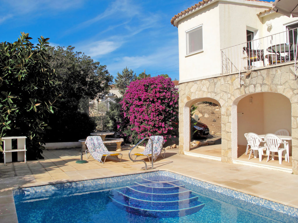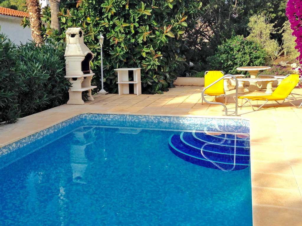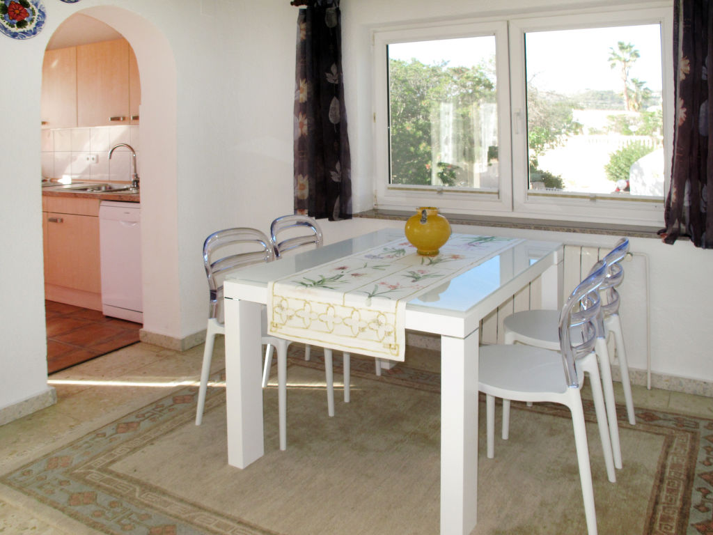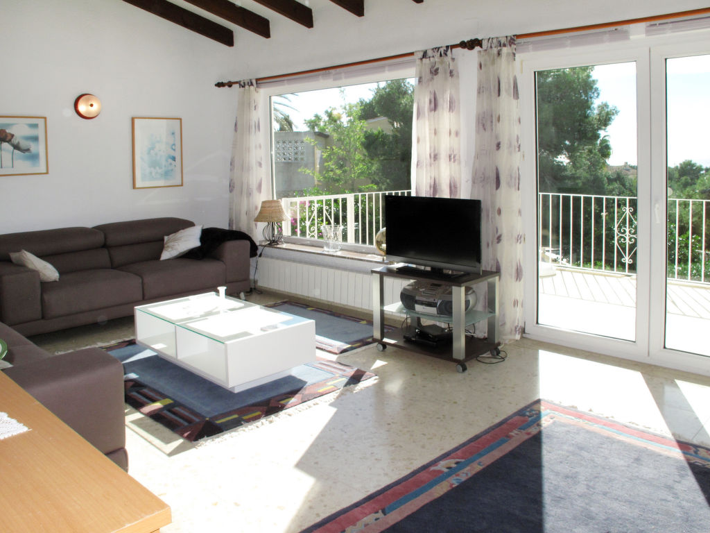 Das gepflegte Haus steht im GOLFCLUB SAN JAIME. Zur Ortsmitte Moraira 3 km. Supermarkt ca. 400 m. Strand 1,2 km. Restaurant im Golfclub. 9-Loch-Golfplatz und Tennisplätze ca. 800 m. Schön angelegtes, ca. 1000 m² großes Grundstück mit Mandelbäumen, Agaven, Oleander, Bougainvilleen und Gummibaum. Pool (ca. 8 x 4 m, gesamte Saison geöffnet) mit Außendusche und 4 Liegestühlen. Überdachte Terrasse mit Gartenmöbeln. Gemauerter Grill. Balkon mit Gartenmöbeln. Herrlicher Meerblick bis zum Peñón de Ifach. Parkmöglichkeit auf dem Grundstück. Das Haus, auf 3 Ebenen gebaut, ist freundlich-rustikal eingerichtet. Alle Zimmer mit Deckenbalken. Sat-TV. Waschmaschine. Keine Heizmöglichkeit. Hinweis: Rauchen ist im Haus nicht gestattet.