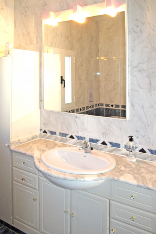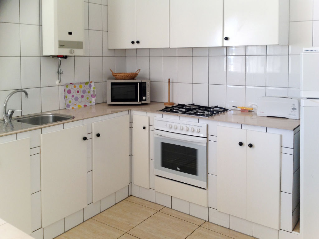 4-Zimmer-Haus, ca. 90 m². Eingang über Terrasse in Flur, durch Theke abgeteilte Küche (4 Flammen, Backofen, Mikrowelle, Kühl-/Gefrierkombination, Kaffeemaschine). Wohnraum mit Sitzgruppe und Essplatz, von hier Zugang zu Doppelzimmer. 2 Doppelzimmer. Dusche/WC. AT-428265-A