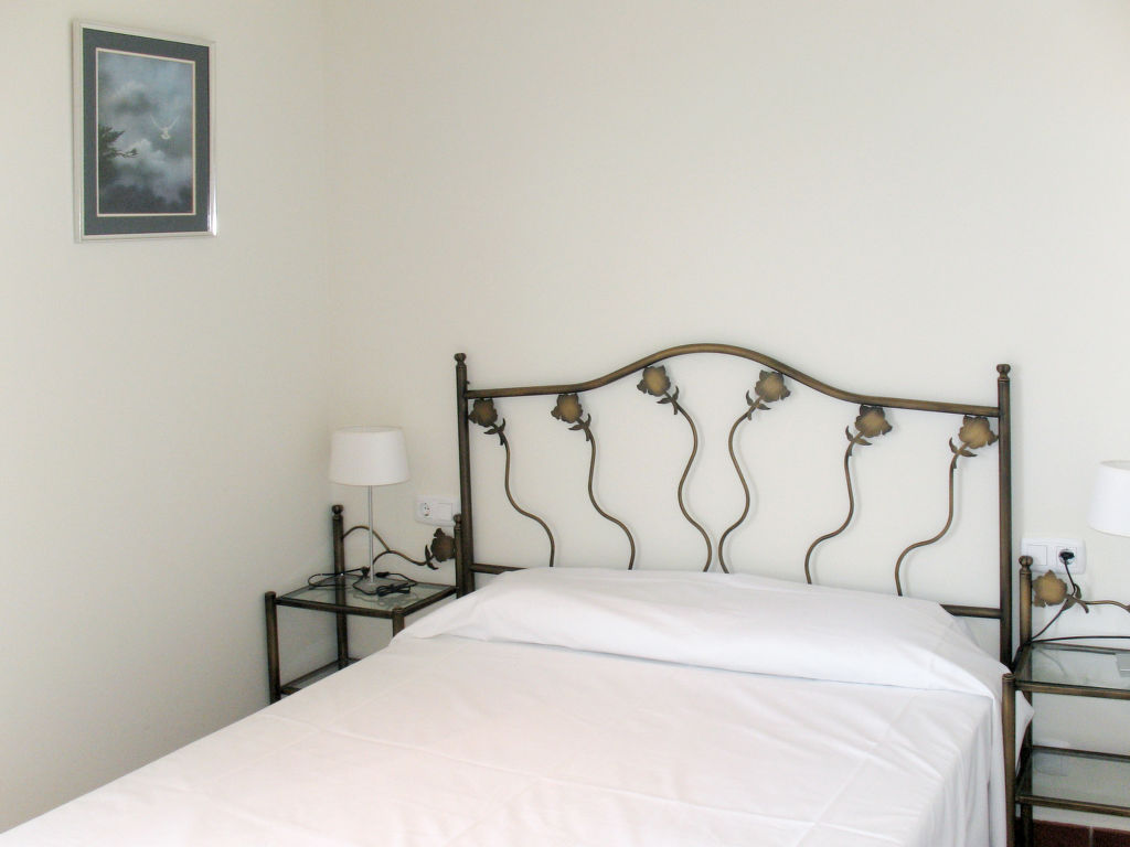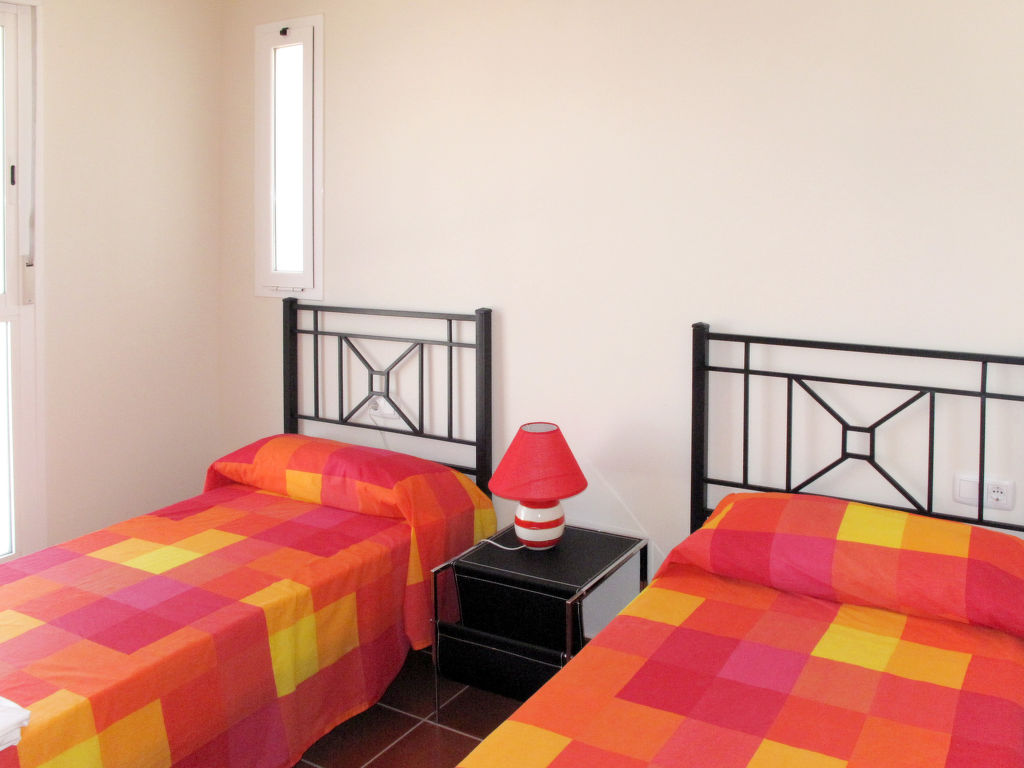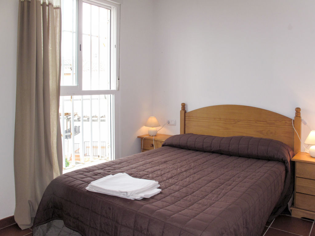 3-Zimmer-Haus, 2 Etagen, ca. 75 m². Erdgeschoss: Eingang in Flur, offen zum Wohn-/Schlafraum mit Doppelbettcouch (1 Erwachsener oder 2 Kinder), Essplatz, Terrassenausgang. Küche (4 Ceranfelder, Backofen, Mikrowelle, Kühl-/Gefrierkombination, Kaffeemaschine). Dusche/WC. Vom Flur Treppe ins Obergeschoss: Schlafzimmer mit franz. Bett (1,35 m breit). Zweibettzimmer oder in Ausnahmefällen Schlafzimmer mit Etagenbett. Bad/WC. Vom Balkon über Außentreppe zur Dachterrasse. Maximale Belegung: 5 Erwachsene oder 4 Erwachsene und 2 Kinder. Hinweis: In einigen Häusern Betten teilweise 1,80 m lang. AT-024186-CS