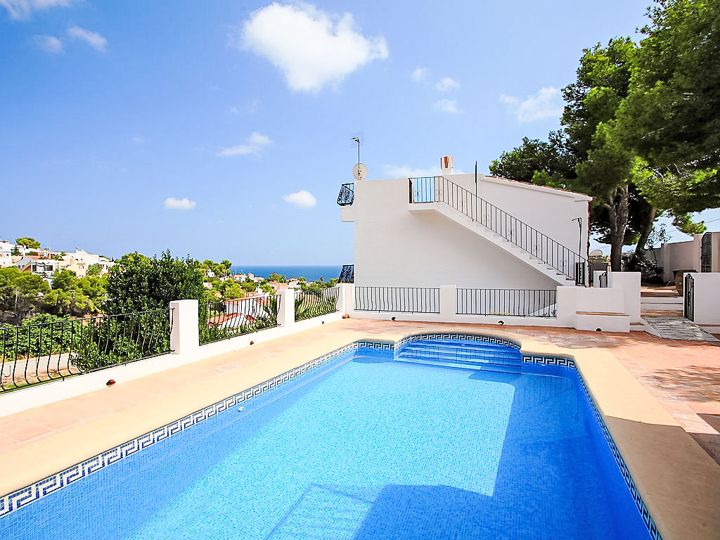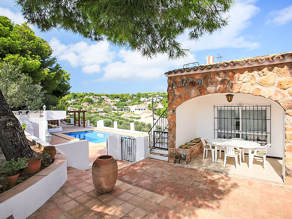 La Fustera: Gemütliches Einfamilienhaus "Dulcinea". 5.6 km vom Zentrum von Calpe, 600 m vom Meer. Zur Alleinbenutzung: Grundstück 850 m2, Schwimmbad geschützt (8 x 4 m, 01.01.-31.12.) mit Innentreppe. Parkplatz. Supermarkt, Restaurant, Bar 300 m, Sandstrand 600 m. Nahe gelegene Sehenswürdigkeiten: Aqualandia, Mundomar, Terra Mítica, Terra Natura, y Benidorm Palace (Benidorm).