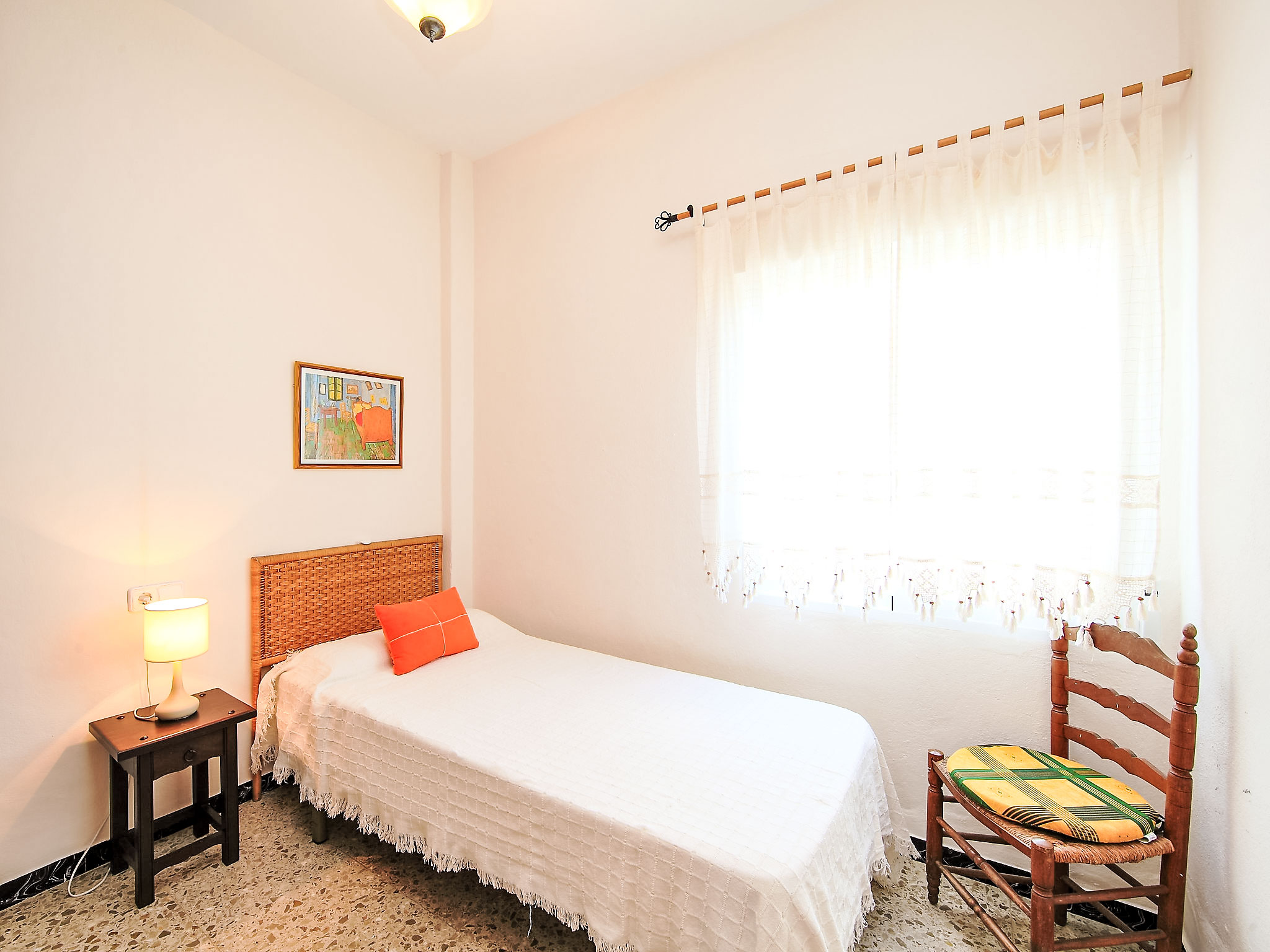 "Dulcinea", 4-Zimmer-Haus 100 m2. Geräumig und hell, komfortabel und gemütlich eingerichtet: Wohn-/Esszimmer mit offenem Kamin, Sat-TV, Digital-TV und Internationale TV-Sender. Ausgang zur Terrasse, zur Loggia. 1 Zimmer mit 1 franz. Bett (135 cm, Länge 190 cm). 1 Zimmer mit 2 Betten (90 cm, Länge 190 cm). 1 Zimmer mit 1 Bett (90 cm, Länge 190 cm). Küche (Backofen, Mikrowelle). Bad/WC, Dusche/WC. Gartengrill, Liegestühle. Seitliche Sicht auf das Meer. Zur Verfügung: Waschmaschine, Bügeleisen. Parkplatz (1 Auto) beim Haus. AT-433768-A