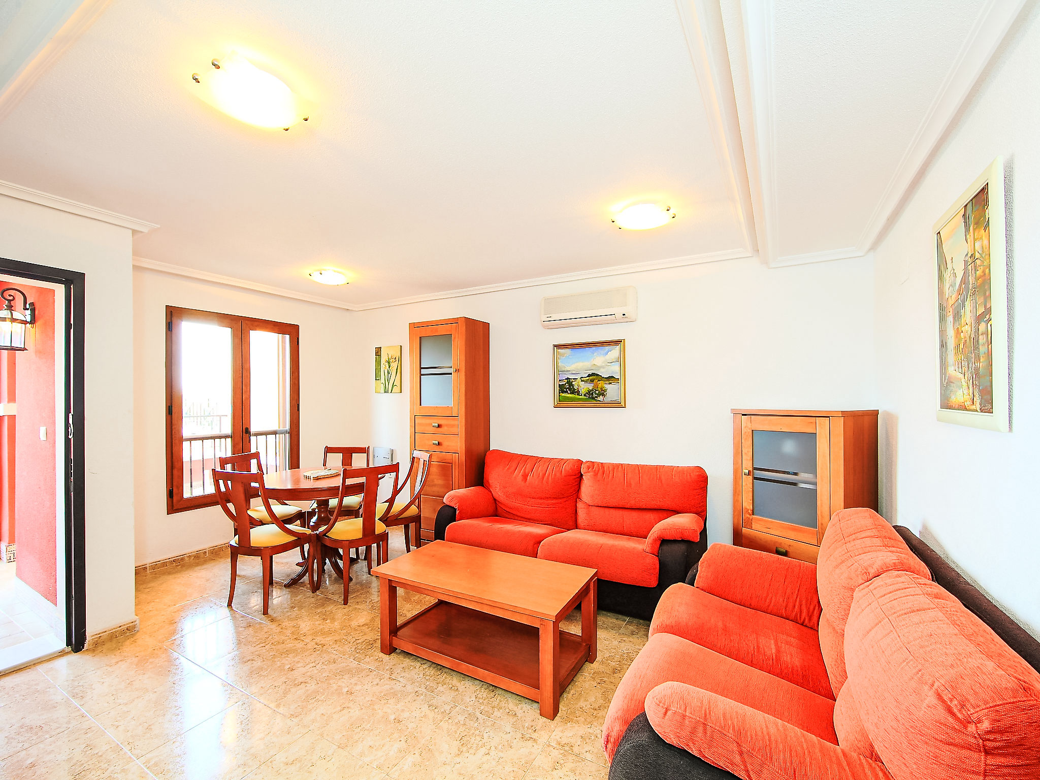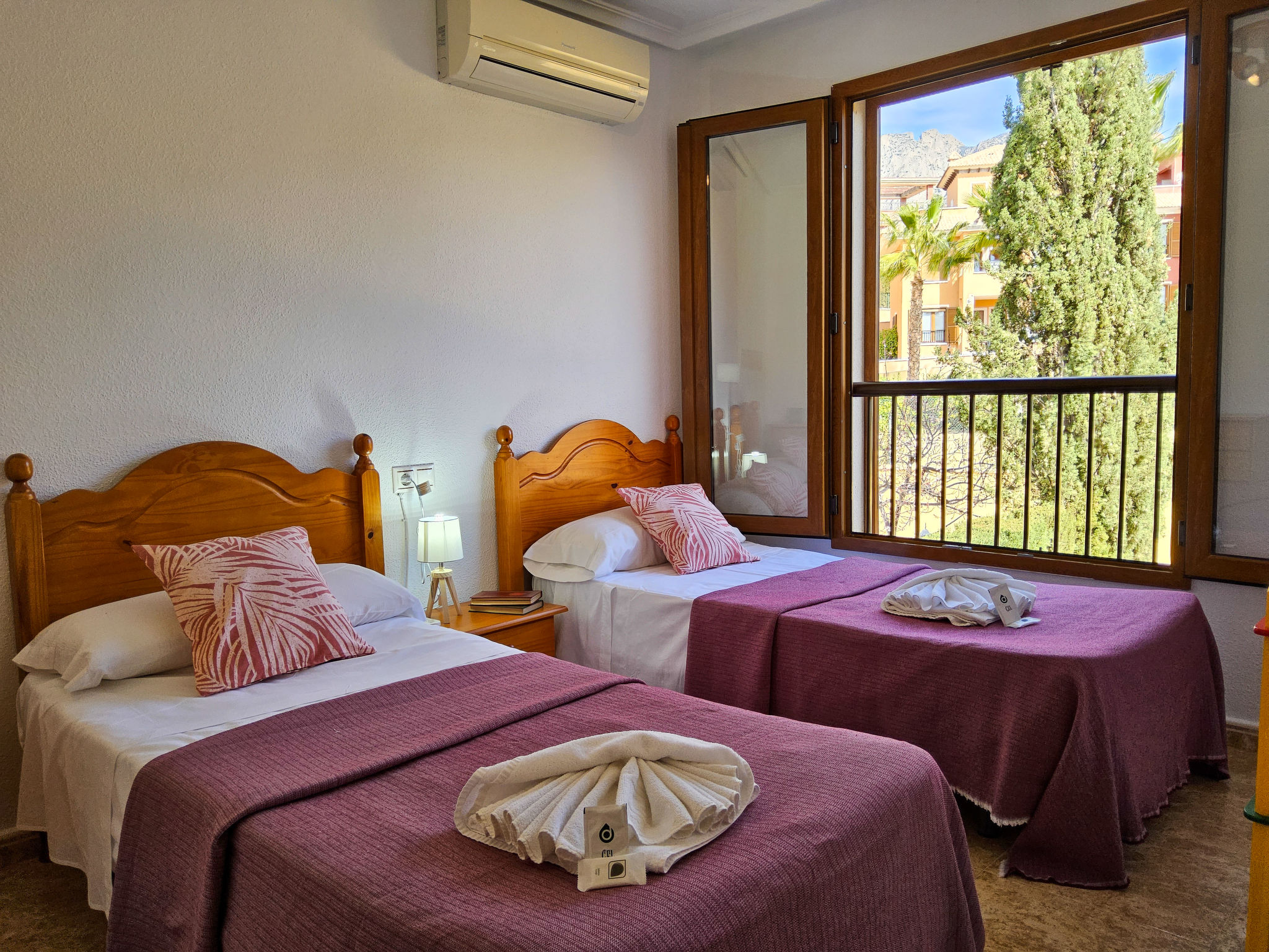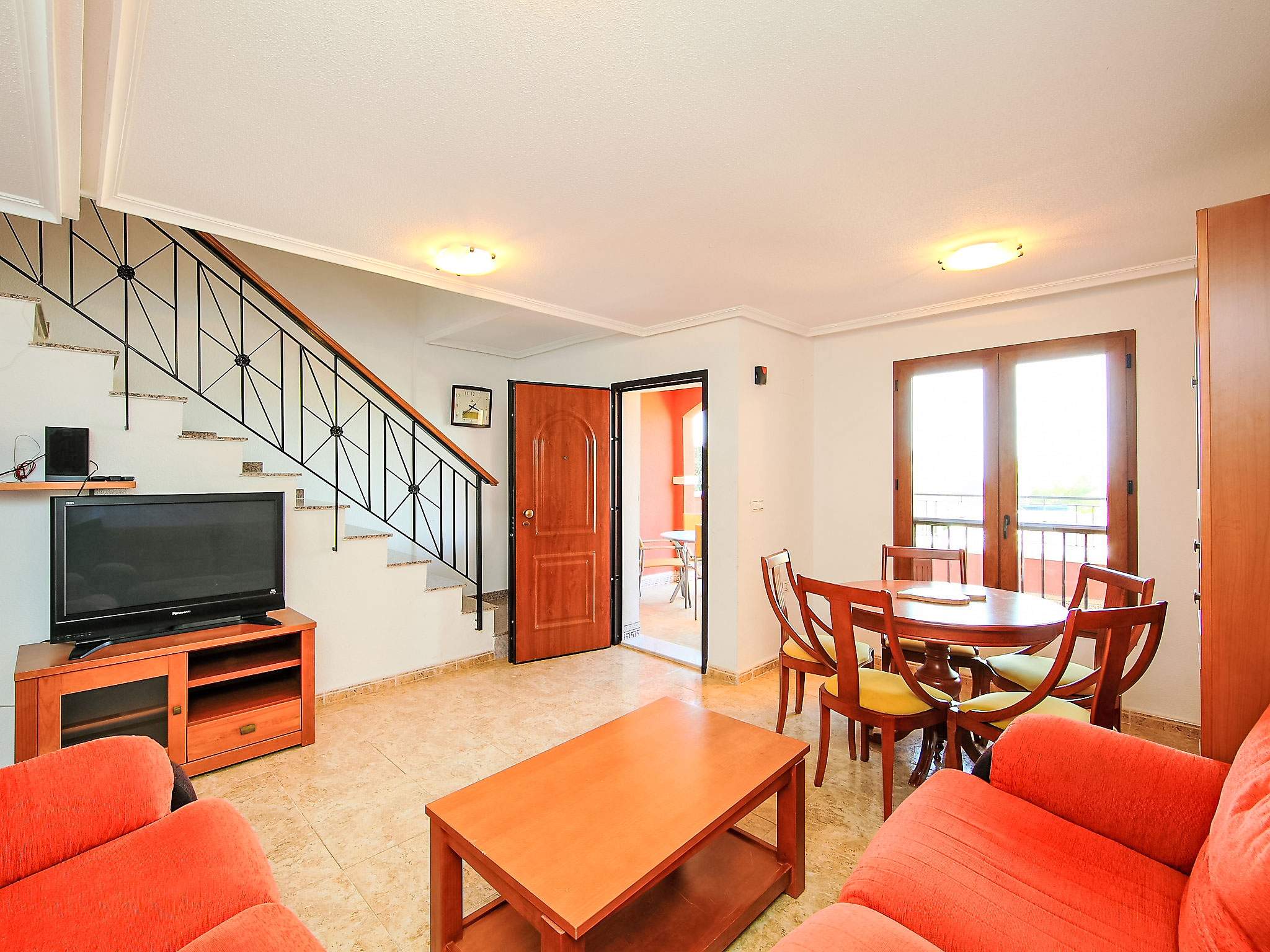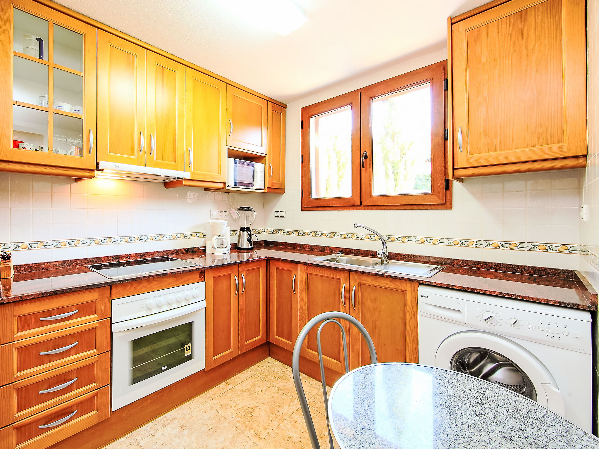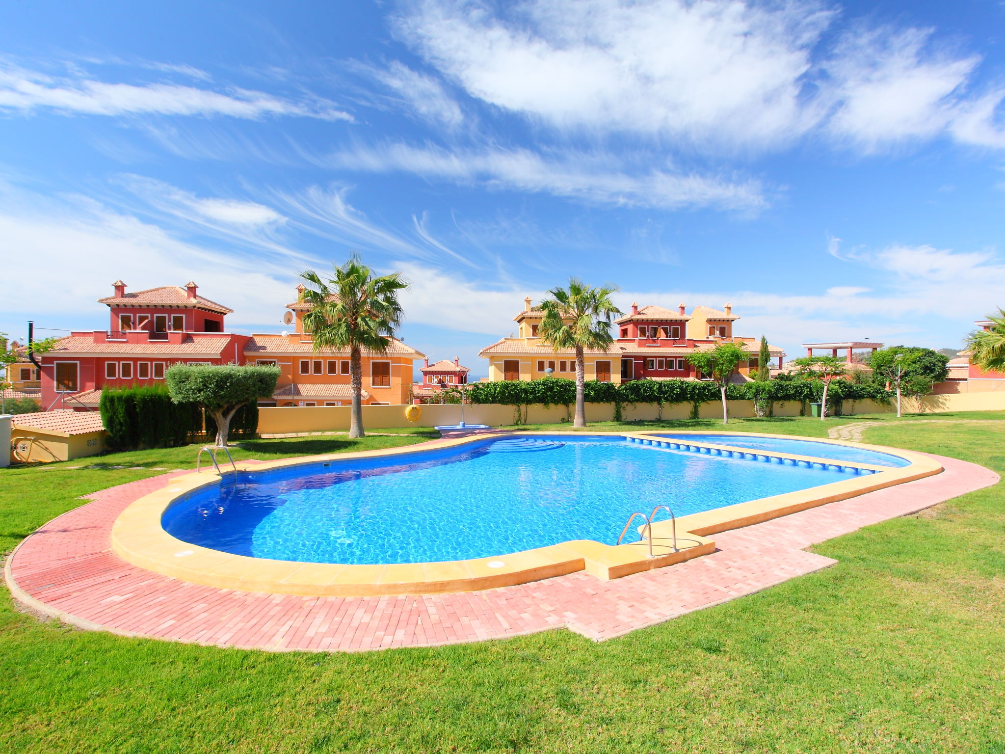 "Balcon de Finestrat", 4-Zimmer-Reihenhaus 100 m2 auf 3 Stockwerken. Hell, zweckmässig und komfortabel eingerichtet: Wohn-/Esszimmer 20 m2 mit Digital-TV, Klimaanlage und Warmluftheizung. Ausgang zur Terrasse. Küche 7 m2 (Backofen, 4 Glaskeramikherd Platten, Toaster, Wasserkocher, Mikrowelle, Tiefkühler, elektrische Kaffeemaschine). Dusche/WC. Boiler (50 Liter). Unteres Geschoss: 1 Zimmer 10 m2 mit 1 franz. Bett (150 cm, Länge 190 cm), Klimaanlage. Ausgang zur Terrasse. Dusche/WC. Obergeschoss: 1 Zimmer 8 m2 mit 2 Betten (90 cm, Länge 190 cm), Klimaanlage. 1 Zimmer 10 m2 mit 1 franz. Bett (150 cm, Länge 190 cm), Klimaanlage. Dusche/WC. 2 Terrassen 6 m2, Gartensitzplatz 18 m2. Terrassenmöbel, Liegestühle. Fernsicht auf das Meer, das Schwimmbad und die Landschaft. Zur Verfügung: Waschmaschine, Bügeleisen, Haartrockner. Internet (Wireless LAN, gratis). Parkplatz beim Haus, Höhe 230 cm, Breite 320 cm. Maximal 1 kleines Haustier/Hund erlaubt. AT321227BM