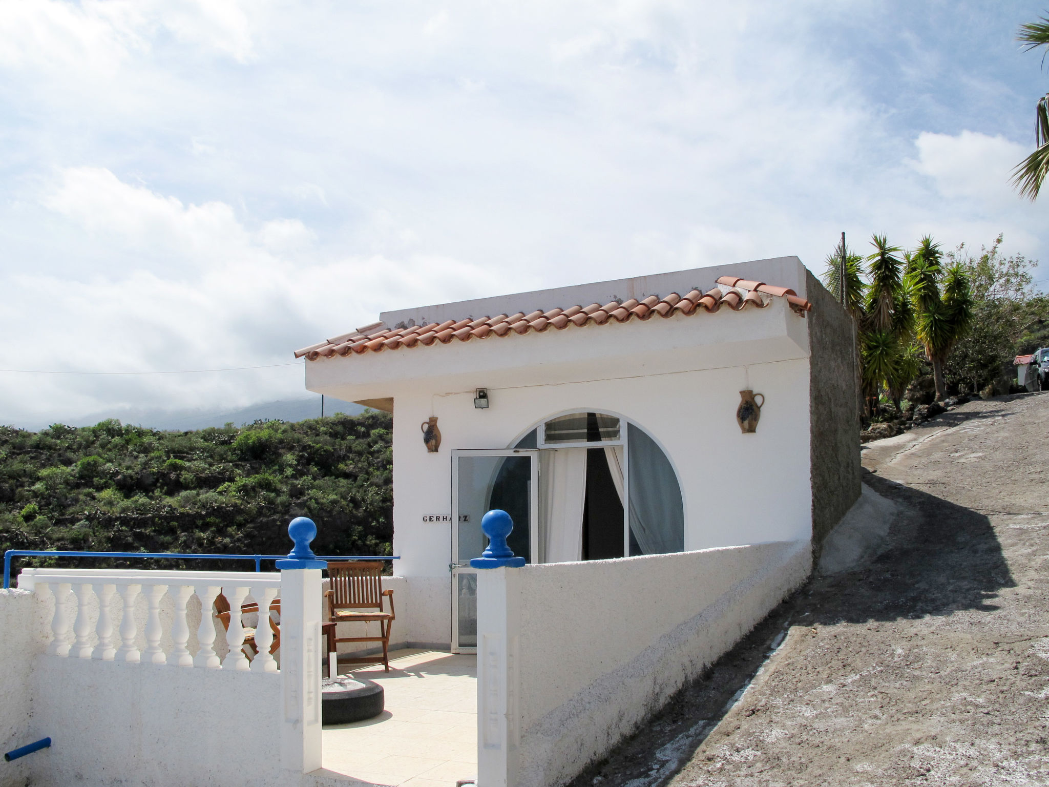 Mehrfamilienhaus "Cuevecitas", 500 m.ü.M.. 5 Wohnungen im Ferienhaus. Im Ortsteil Cuevecitas, 6 km vom Zentrum von Candelaria, 30 km vom Zentrum von Santa Cruz, 51 km vom Zentrum von Puerto de la Cruz, am Hang, 6 km vom Meer. Zur Mitbenutzung: naturbelassenes Grundstück 5'000 m2 mit Rasen und Bäumen, Aufstellpool rund (4.50 m Durchmesser, 140 - 140 cm tief, saisonale Verfügbarkeit: 01.Jan.-31.Dez.). Aussendusche, Grill. Im Hause: Waschmaschine (zur Mitbenutzung). Parkplatz auf dem Grundstück. Einkaufsgeschäft 6 km, Restaurant 1 km, Sandstrand 6 km. Bitte beachten: Fahrzeug empfohlen. Der Besitzer wohnt im selben Haus.