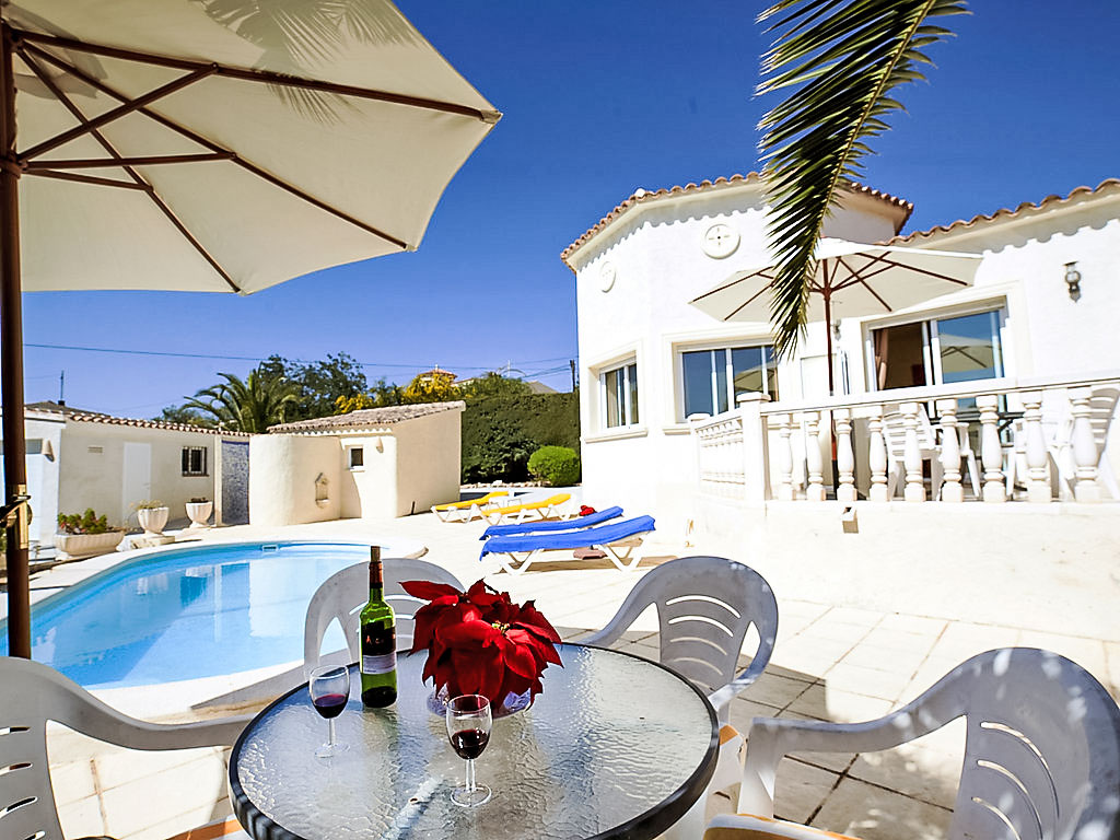 Carrio: Gemütliche, komfortable Villa "Ingy". 4 km vom Zentrum von Calpe, im Bezirk Carrio, ruhige, sonnige Lage im Villenviertel, 2 km vom Meer, in einer Sackgasse. Zur Alleinbenutzung: Grundstück 800 m2 (eingezäunt), Schwimmbad (8 x 4 m, 80 - 150 cm tief, 01.01.-31.12.) mit Innentreppe. Aussendusche, Terrasse, Gartenmöbel, Grill. Im Hause: Wireless LAN, Klimaanlage, Waschmaschine. Parkplatz. Einkaufsgeschäft 2 km, Restaurant 2 km, Sandstrand "Playa de Calpe" 2 km. Sporthafen 3.3 km, Jacht-Hafen 3.3 km, Surfschule 3.3 km, Segelschule 3.3 km. Nahe gelegene Sehenswürdigkeiten: Aqualandia, Mundomar, Terra Mítica, Terra Natura, y Benidorm Palace (Benidorm).