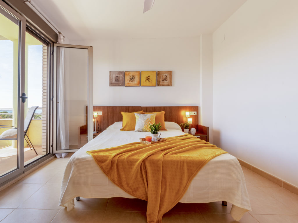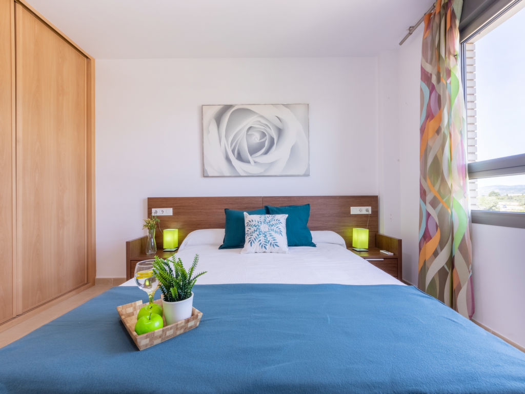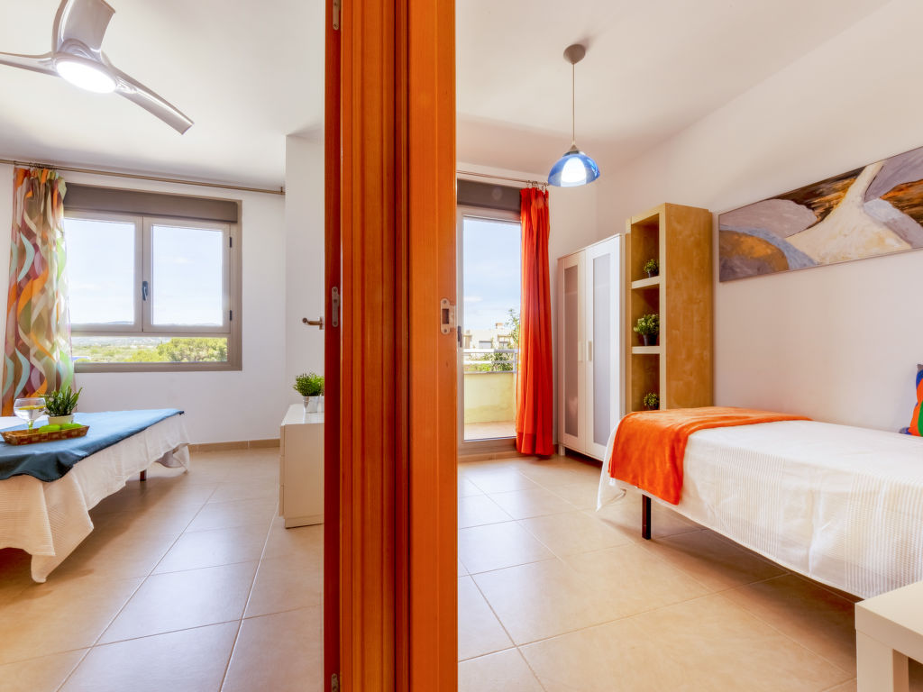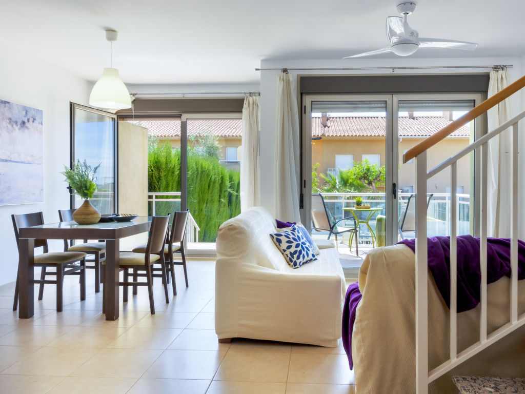4-Zimmer-Reihenhaus 126 m2 auf 2 Stockwerken. Hell, komfortabel und geschmackvoll eingerichtet: Wohn-/Esszimmer mit Panoramafenster mit TV, Stereoanlage und Ventilator. Ausgang zur Terrasse. Küche (Backofen, Geschirrspüler, 3 Glaskeramikherd Platten, Tiefkühler). Dusche/WC. Obergeschoss: 1 grosses Zimmer mit Panoramafenster begehbarer Kleiderschrank mit 1 franz. Bett (150 cm), Bad/Bidet/WC, TV und Ventilator. Ausgang zum Balkon. 1 Zimmer mit 1 franz. Bett (150 cm), Ventilator. 1 Zimmer mit Panoramafenster mit 1 Bett (90 cm), 1 Klappbett und Ventilator. Ausgang zum Balkon. Dusche/WC. Gartensitzplatz. Terrassenmöbel, Gartengrill. Fernsicht auf das Meer. Zur Verfügung: Waschmaschine. Internet (Wireless LAN, gratis). Parkplatz (eingezäunt). Bitte beachten: geeignet für Familien. Maximal 2 Haustiere/Hunde erlaubt. TV nur ES. HUTTE000273