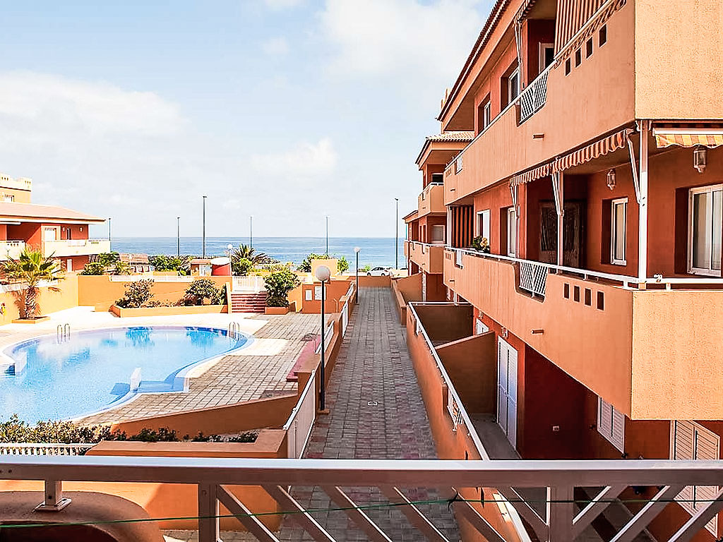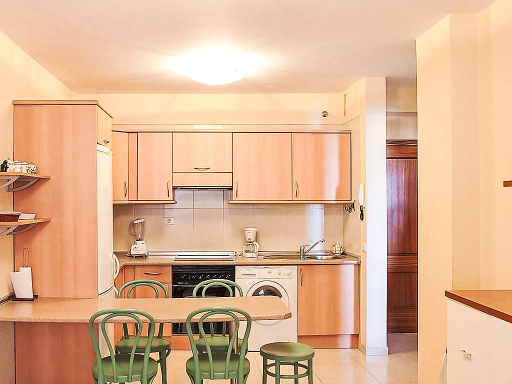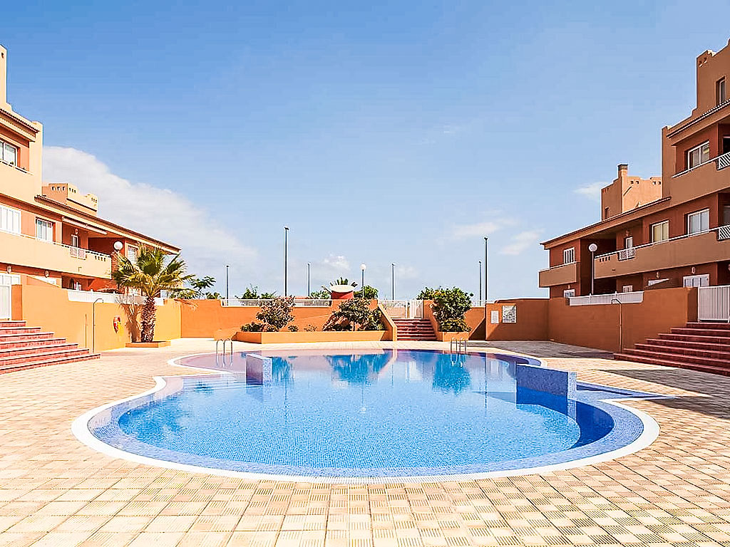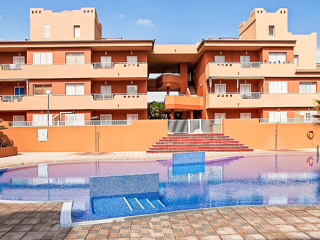 Residenz "La Gomera", Baujahr 2005. Im Ort, 30 m vom Meer, 30 m vom Strand, Strasse zu überqueren. Zur Mitbenutzung: WC im Poolbereich, Aussendusche. Im Hause: Fahrstuhl. Öffentliche Parkplätze auf der Strasse. Lebensmittelgeschäft 500 m, Einkaufszentrum 7 km, Restaurant 300 m, Bäckerei, Bushaltestelle 500 m, Sandstrand 25 m, Steinstrand 30 m, Badebucht 500 m. Golfplatz 40 km, Kinderspielplatz 100 m. Bitte beachten: Autobahn 2 km vom Haus. Hauptstrasse 600 m vom Haus.