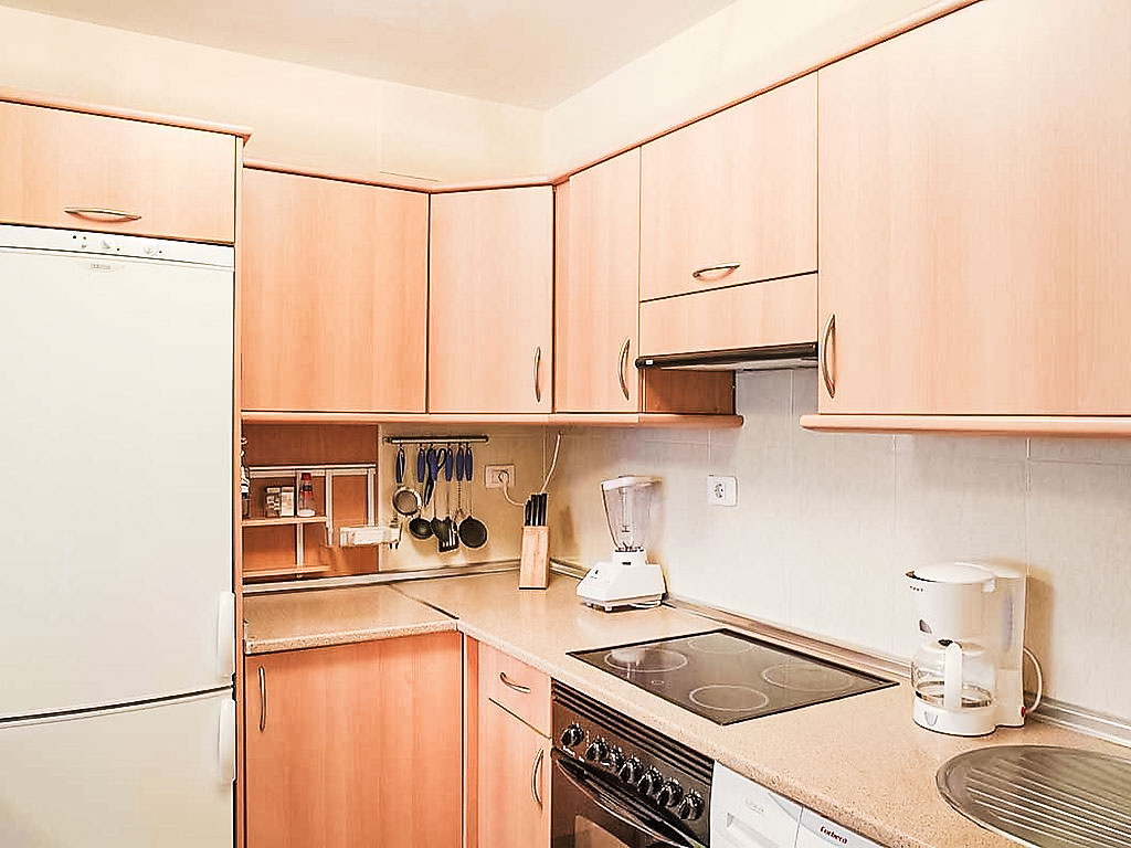 2-Zimmer-Wohnung 45 m2 im 1. Stock. Einfach und komfortabel eingerichtet: Wohn-/Esszimmer mit 1 Diwanbett (135 cm, Länge 200 cm), 2 Schlafmöglichkeiten (70 cm, Länge 190 cm), TV und Ventilator. Ausgang zum Balkon. 1 Doppelzimmer mit 1 franz. Bett. Offene Küche (Backofen, 4 Glaskeramikherd Platten, Tiefkühler, elektrische Kaffeemaschine) mit Esstisch. Bad/WC. Boiler (50 Liter). Balkon 5 m2. Balkonmöbel. Sicht auf das Meer und das Schwimmbad. Zur Verfügung: Waschmaschine.