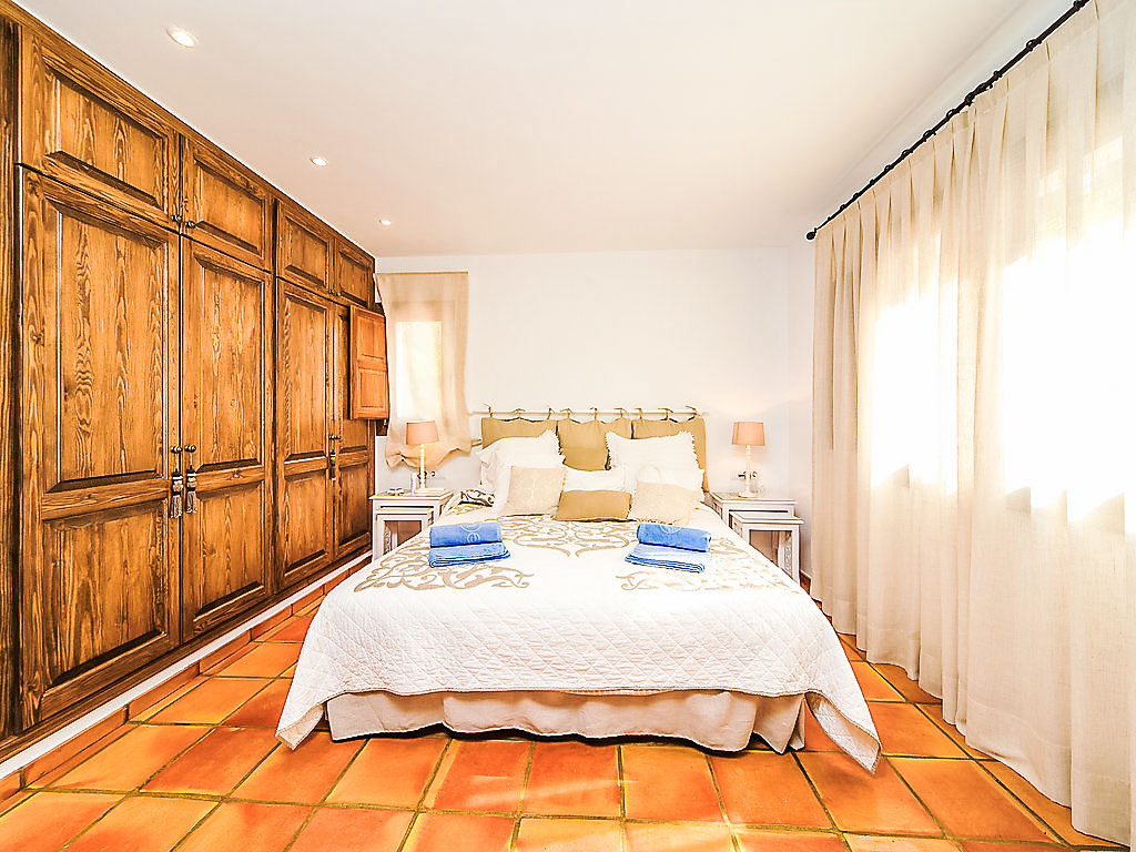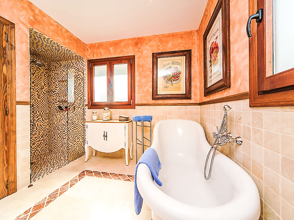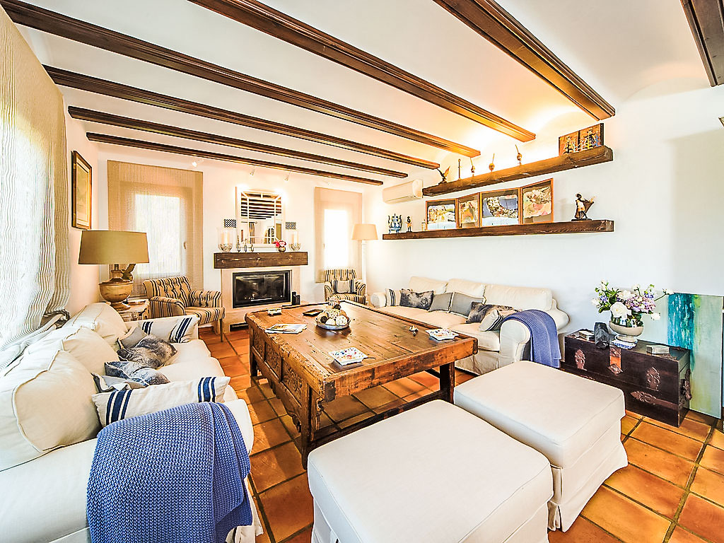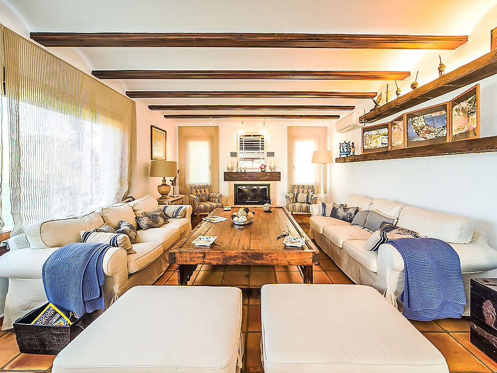6-Zimmer-Villa 200 m2. Komfortabel und schön eingerichtet: Wohn-/Esszimmer mit Schwedenofen und Klimaanlage. Ausgang zur Terrasse. 1 Zimmer mit 1 franz. Bett, Bad/Dusche/WC und Klimaanlage. Küche (Backofen, Geschirrspüler, X Glaskeramikherd Platten, Mikrowelle, Tiefkühler, elektrische Kaffeemaschine). Sep. WC. Unteres Geschoss: kleines Wohnzimmer mit Digital-TV, DVD, DVD Sammlung vorhanden und Klimaanlage. 1 Kinderzimmer mit 1 x 2 Etagenbetten, Dusche/WC und Klimaanlage. 1 Zimmer mit 2 Betten, Dusche/WC und Klimaanlage. 1 Zimmer mit 2 Betten und Klimaanlage. Dusche/WC. Grosse Terrasse überdacht. Terrassenmöbel, Gartengrill, Liegestühle (4). Schöne Sicht auf die Landschaft. Zur Verfügung: Waschmaschine, Wäschetrockner. Internet (DSL/LAN, gratis). Parkplatz (überdacht, eingezäunt, 2 Autos) beim Haus. Bitte beachten: TV nur ES. AT-437797-A