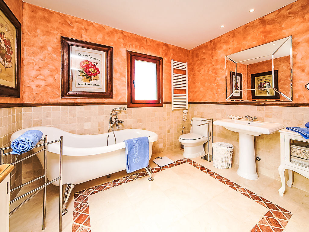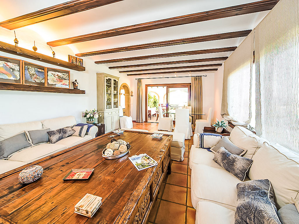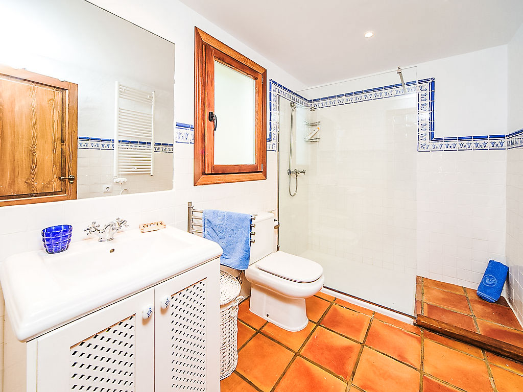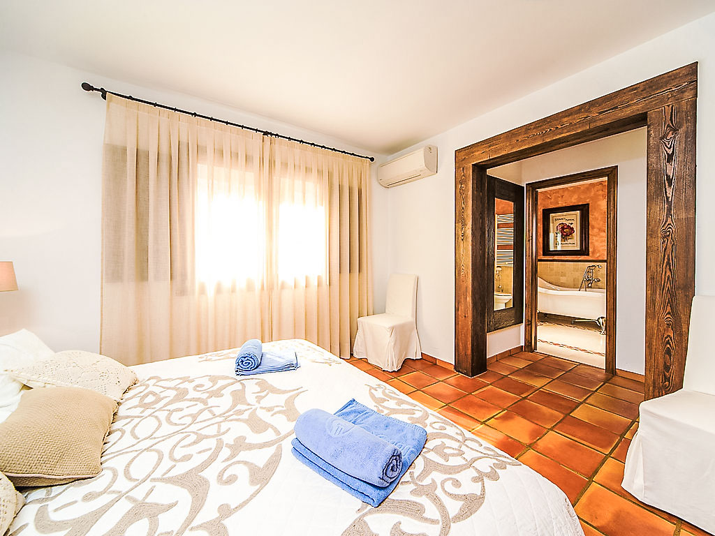 6-Zimmer-Villa 200 m2. Komfortabel und schön eingerichtet: Wohn-/Esszimmer mit Schwedenofen und Klimaanlage. Ausgang zur Terrasse. 1 Zimmer mit 1 franz. Bett, Bad/Dusche/WC und Klimaanlage. Küche (Backofen, Geschirrspüler, X Glaskeramikherd Platten, Mikrowelle, Tiefkühler, elektrische Kaffeemaschine). Sep. WC. Unteres Geschoss: kleines Wohnzimmer mit Digital-TV, DVD, DVD Sammlung vorhanden und Klimaanlage. 1 Kinderzimmer mit 1 x 2 Etagenbetten, Dusche/WC und Klimaanlage. 1 Zimmer mit 2 Betten, Dusche/WC und Klimaanlage. 1 Zimmer mit 2 Betten und Klimaanlage. Dusche/WC. Grosse Terrasse überdacht. Terrassenmöbel, Gartengrill, Liegestühle (4). Schöne Sicht auf die Landschaft. Zur Verfügung: Waschmaschine, Wäschetrockner. Internet (DSL/LAN, gratis). Parkplatz (überdacht, eingezäunt, 2 Autos) beim Haus. Bitte beachten: TV nur ES. AT-437797-A