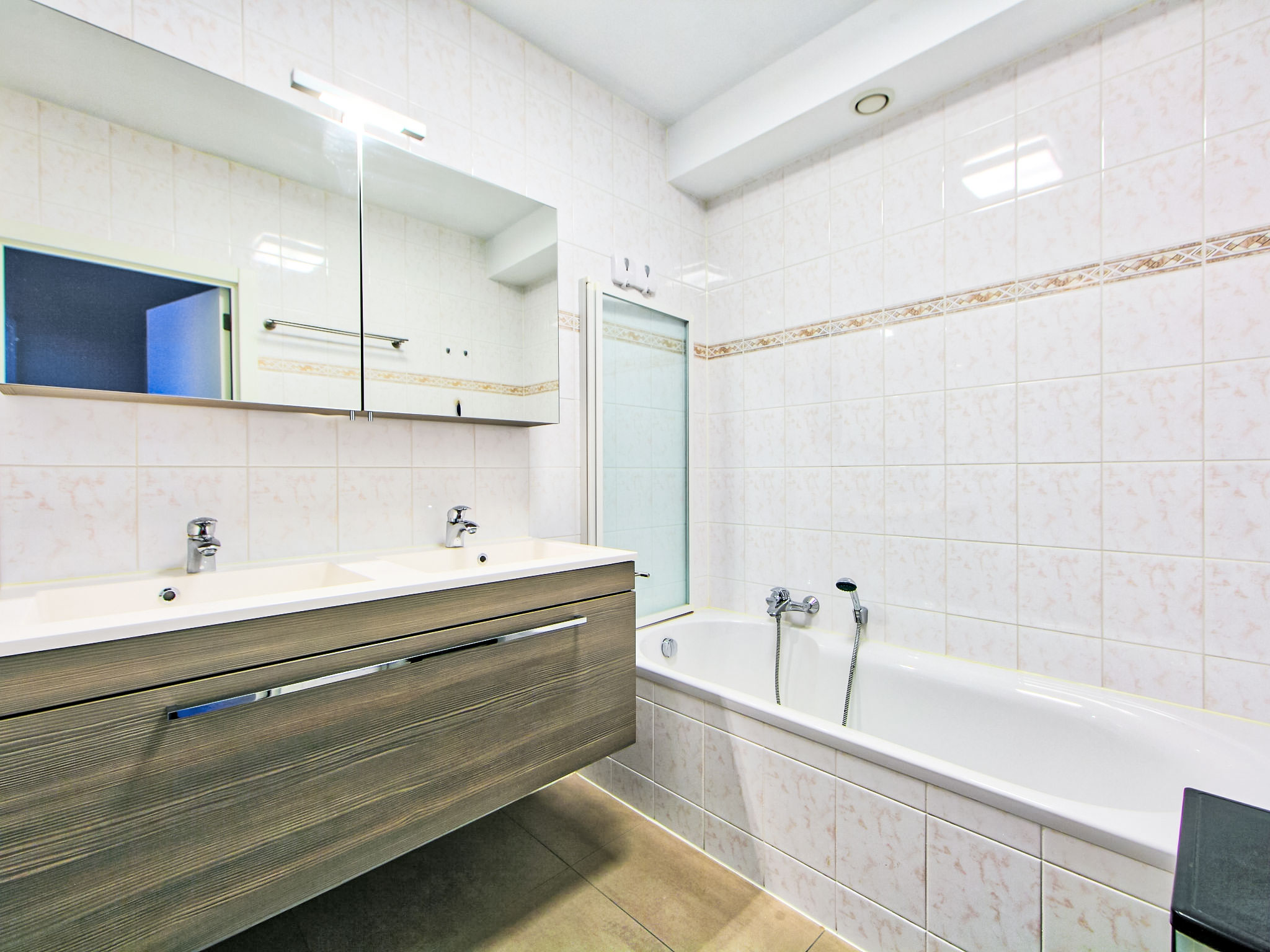 "Appartement 103", 3-Zimmer-Wohnung 87 m2 im 1. Stock. Komfortabel eingerichtet: Wohn-/Esszimmer mit Esstisch, Sat-TV, DVD und E-Heizung. Ausgang zur Terrasse. 1 Doppelzimmer mit 2 Betten. 1 Doppelzimmer mit 2 Betten. Küche (Backofen, Geschirrspüler, 4 Glaskeramikherd Platten, Wasserkocher, Mikrowelle, elektrische Kaffeemaschine). Bad/Dusche/WC, Doppelwaschbecken. Grosse Terrasse 30 m2. Terrassenmöbel, Liegestühle. Zur Verfügung: Waschmaschine, Wäschetrockner. Internet (Wireless LAN, gratis). Garage Nr. 32. Bitte beachten: Wohnung auf Strassenseite. Nichtraucher-Haus.