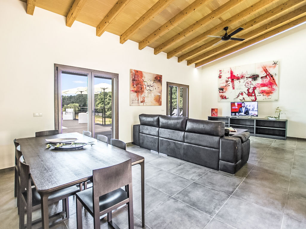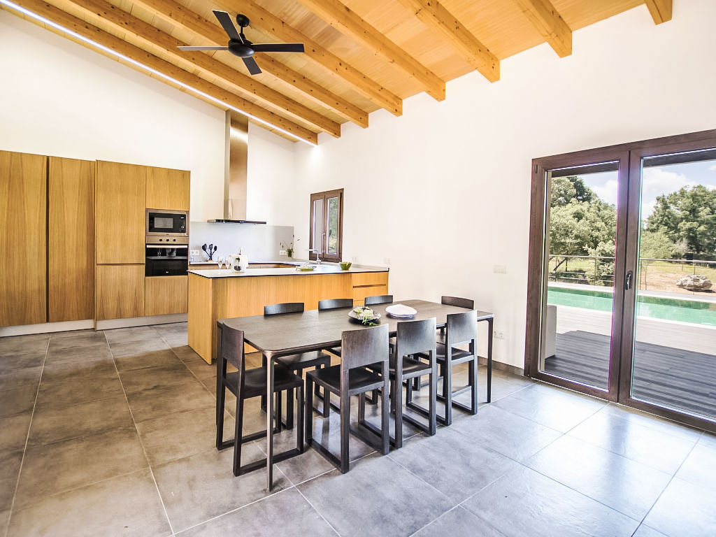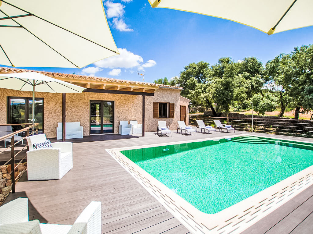 "Can Munar", 5-Zimmer-Villa 171 m2. Objekt geeignet für 8 Erwachsene. Sehr zweckmässig und komfortabel eingerichtet: offenes grosses Wohn-/Esszimmer mit Schiebetür, Panoramafenster mit Esstisch, Sat-TV, Kabel-TV, Digital-TV, Internationale TV-Sender, Flachbildschirm, G-Heizung, Klimaanlage und Warmluftheizung. Ausgang zum Gartensitzplatz, zum Schwimmbad. 1 grosses Doppelzimmer mit Panoramafenster mit 1 Doppelbett (180 cm, Länge 200 cm), Bad/Dusche/WC, Doppelwaschbecken, Kabel-TV, Internationale TV-Sender, Flachbildschirm, G-Heizung, Klimaanlage und Warmluftheizung. 1 grosses Doppelzimmer mit Panoramafenster mit 1 Doppelbett (180 cm, Länge 200 cm), Bad/Dusche/WC, Doppelwaschbecken, Flachbildschirm, G-Heizung, Klimaanlage und Warmluftheizung. 1 grosses Doppelzimmer mit Panoramafenster mit 2 Betten (90 cm, Länge 200 cm), Kabel-TV, Internationale TV-Sender, Flachbildschirm, G-Heizung, Klimaanlage und Warmluftheizung. 1 grosses Doppelzimmer mit Panoramafenster mit 2 Betten (90 cm, Länge 200 cm), Kabel-TV, Internationale TV-Sender, Flachbildschirm, G-Heizung, Klimaanlage und Warmluftheizung. Offene Küche (Backofen, Geschirrspüler, 3 Induktionskochplatten, Toaster, Wasserkocher, Mikrowelle, Tiefkühler) mit Bar, G-Heizung, Klimaanlage und Warmluftheizung. Ausgang zum Gartensitzplatz, zum Schwimmbad. 2 Bäder/Duschen/WC, Doppelwaschbecken. E-Heizung, Klimaanlage. Holzböden. Grosser Gartensitzplatz. Terrassenmöbel, Liegestühle (8), Loggia, Sitzplatz. Zur Verfügung: Waschmaschine, Bügeleisen, Kinderhochstuhl, Babybett bis 2 Jahre, Haartrockner. Internet (Wireless LAN, gratis). Geeignet für Familien. L12E7472