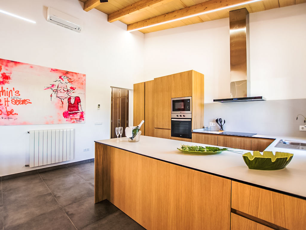 Costitx: Sehr moderne, schöne, gemütliche Villa "Can Munar", umgeben von Bäumen und Feldern. Ausserhalb des Ortes Costitx, ruhige, sonnige Lage, 27 km vom Meer, 27 km vom Strand, im Grünen. Zur Alleinbenutzung: naturbelassenes Grundstück (eingezäunt), Naturgarten, Liegewiese, Schwimmbad eckig (8 x 4 m, 01.01.-31.12.) mit Meerwasser. Aussendusche, Sitzplatz, Pergola, Gartenmöbel. Im Hause: Wireless LAN, Zentralheizung, Klimaanlage, Waschmaschine. Parkplatz beim Haus auf dem Grundstück. Einkaufsgeschäft 1.6 km, Lebensmittelgeschäft 1.6 km, Supermarkt 8 km, Restaurant 8 km, Bar 1.6 km, Bäckerei 1.6 km, Café 1.6 km, Biergarten 1.6 km, Sandstrand "Ca'n Picafort" 26 km. Sporthafen 33 km, Jacht-Hafen 33 km, Golfplatz (18 Loch) 35 km. Nahe gelegene Sehenswürdigkeiten: Finca Son Bordils (Vineyards) 5 km, Mallorca Planetarium 2 km, Museo de Ciencia Natural 2 km. Bitte beachten: Fahrzeug empfohlen. Geeignet für Familien, geeignet für Senioren Babyausstattung auf Anfrage (inkl.). Objekt geeignet für 8 Erwachsene Jugendgruppen nur auf Anfrage. Be- und Entladen am Ferienhaus möglich. Flugplatz 32 km vom Haus.