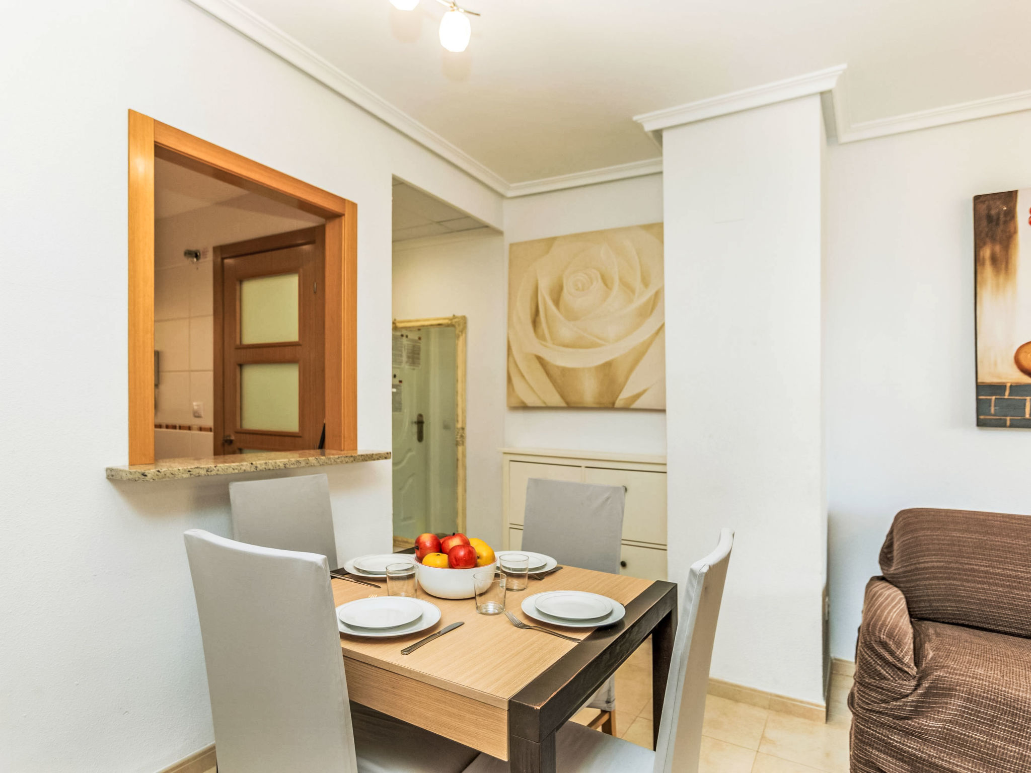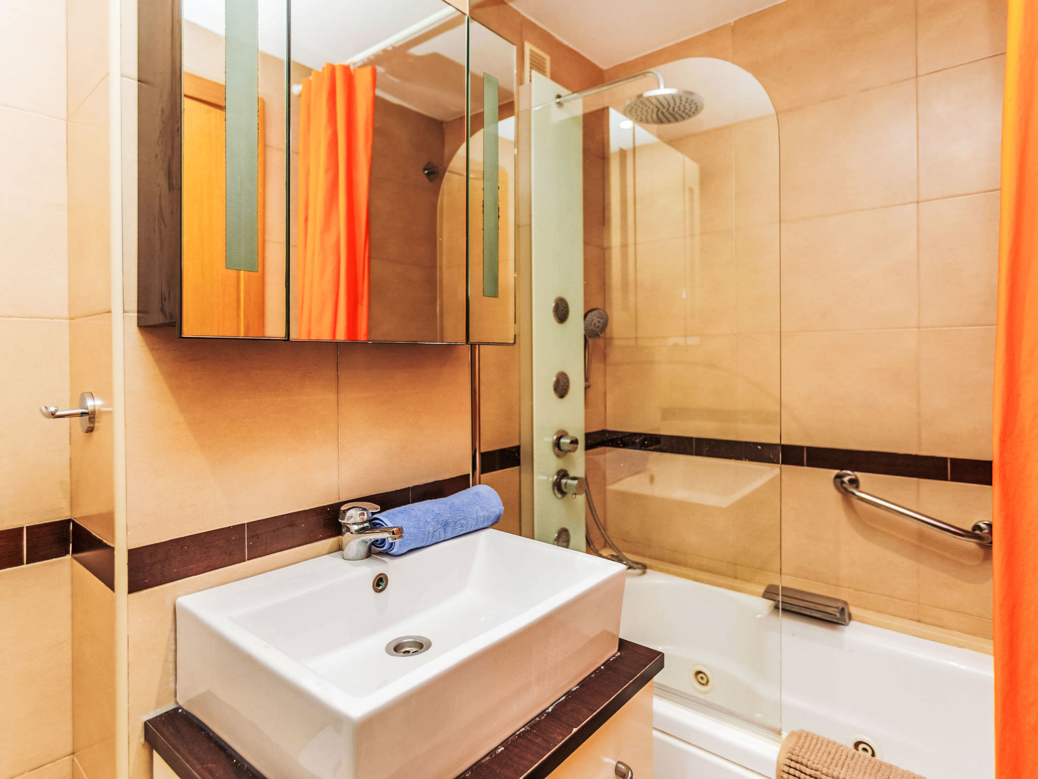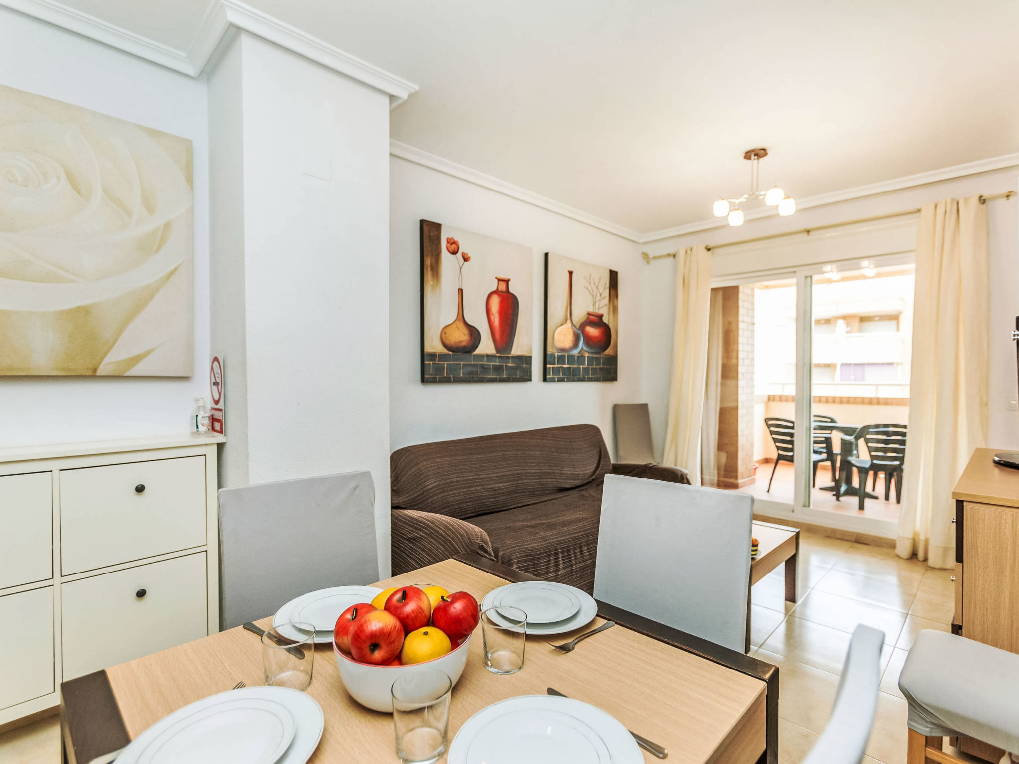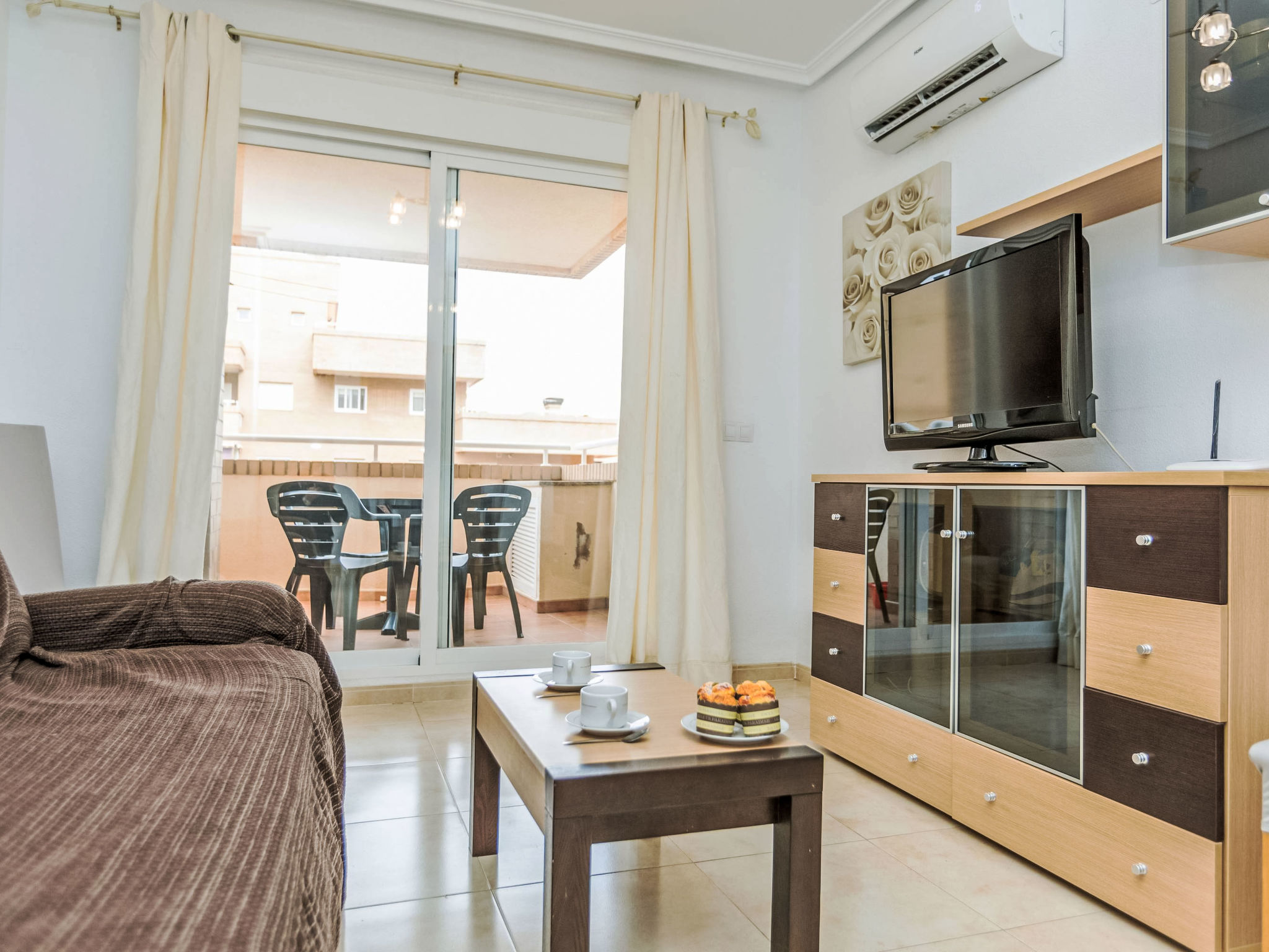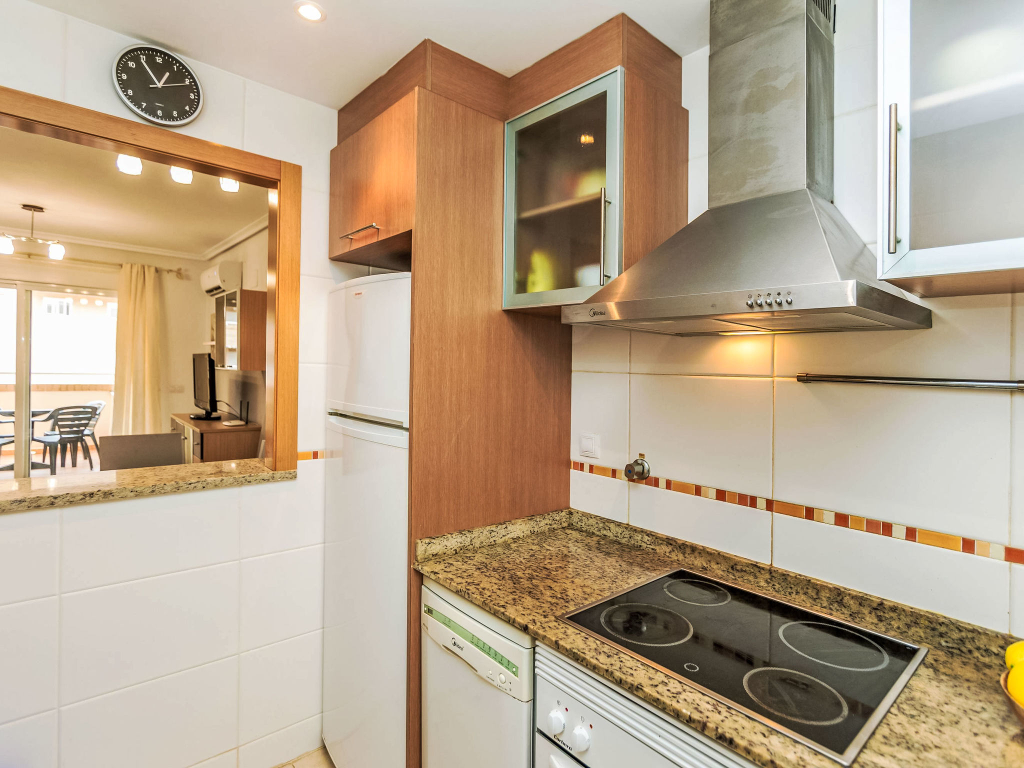 "Sea View - Jardines del Mar I", 3-Zimmer-Wohnung 65 m2 im 7. Stock. Hell, komfortabel und gemütlich eingerichtet: Wohn-/Esszimmer mit 1 Doppeldiwanbett, Esstisch, Digital-TV und Flachbildschirm. 1 Zimmer mit 1 Doppelbett (135 cm, Länge 190 cm). 1 Zimmer mit 2 Betten (90 cm, Länge 190 cm). Küche (Backofen, Geschirrspüler, 4 Glaskeramikherd Platten, Toaster, Wasserkocher, Mikrowelle, Tiefkühler, elektrische Kaffeemaschine) mit Durchreiche. Bad/Bidet/WC, Whirlbadewanne. Terrasse, Nordlage. Terrassenmöbel. Sicht auf das Meer und die Berge. Zur Verfügung: Waschmaschine, Bügeleisen, Haartrockner. Internet (Wireless LAN, gratis). Parkplatz Nr. 354/418 (überdacht, 2 Autos) beim Haus. Bitte beachten: geeignet für Familien. Nichtraucher-Unterkunft. AT-37678-CS