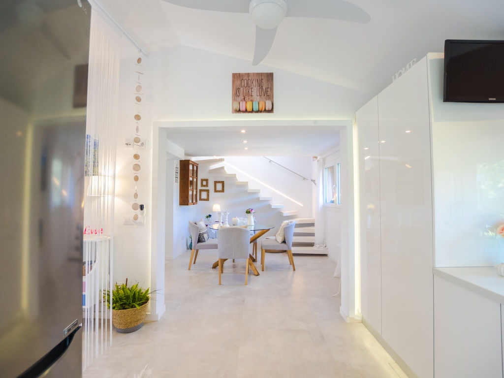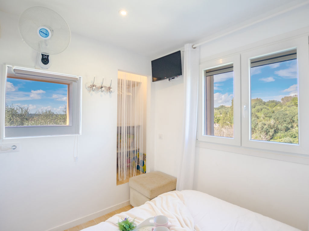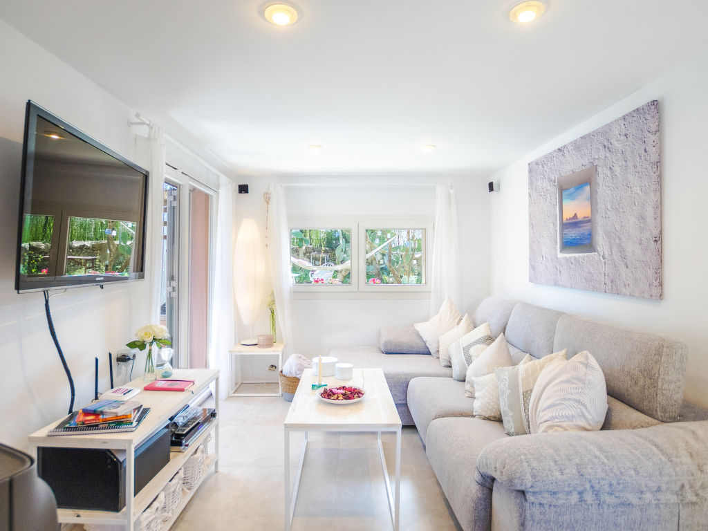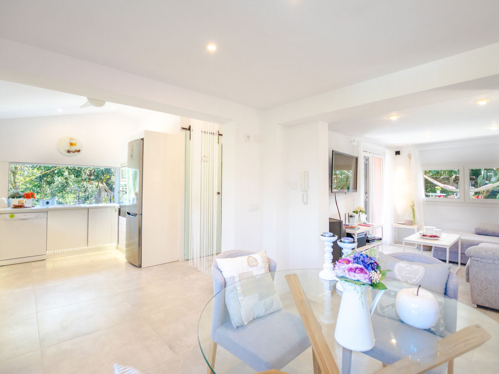"Sa Font", 3-Zimmer-Haus 80 m2 auf 2 Stockwerken. Objekt geeignet für 4 Erwachsene. Vollständig renoviert, sehr gemütlich und romantisch eingerichtet: offenes Wohn-/Esszimmer mit Schiebetür, Panoramafenster mit offenem Kamin, TV und Flachbildschirm. Ausgang zum Gartensitzplatz. Offene Küche (Backofen, Geschirrspüler, 3 Glaskeramikherd Platten, Toaster, Wasserkocher, Mikrowelle, Tiefkühler, elektrische Kaffeemaschine). Ausgang zum Gartensitzplatz. Bad/Dusche/WC. Obergeschoss: 1 Doppelzimmer mit Schiebetür mit 1 franz. Bett (150 cm), Ventilator. Ausgang zum Balkon. 1 Doppelzimmer mit Panoramafenster mit 1 franz. Bett (135 cm), Ventilator. Bad/Dusche/WC. Balkon, Gartensitzplatz, Laube. Terrassenmöbel, Balkonmöbel, Gartengrill, Liegestühle. Sicht auf die Berge und die Landschaft. Zur Verfügung: Waschmaschine, Bügeleisen, Fliegengitter, Haartrockner. Internet (Wireless LAN, gratis). Parkplatz (eingezäunt). Geeignet für Familien. 1 Haustier/Hund erlaubt. ETV9259