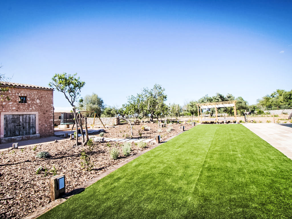 Llubi: Grosser, sehr schöner, komfortabler Finca "Cort", auf 2 Stockwerken, umgeben von Bäumen und Feldern. Ausserhalb des Ortes Llubí, ruhige, sonnige Lage, 3 km vom Waldrand, 30 km vom Strand, im Grünen. Zur Alleinbenutzung: naturbelassenes Grundstück, schöner, gepflegter Garten mit Rasen und Pflanzen, Schwimmbad eckig (7 x 4 m, 01.01.-31.12.) mit Salzelektrolyse-Reinigungssystem. Aussendusche, Tischtennis, Sitzplatz, Grill (Rutschbahn, Schaukel). Im Hause: Internetzugang, Wireless LAN, Klimaanlage, Waschmaschine, Wäschetrockner. Parkplatz beim Haus auf dem Grundstück. Bitte beachten: geeignet für Familien, geeignet für Senioren. Objekt geeignet für 6 Erwachsene Jugendgruppen nur auf Anfrage. Be- und Entladen am Ferienhaus möglich.