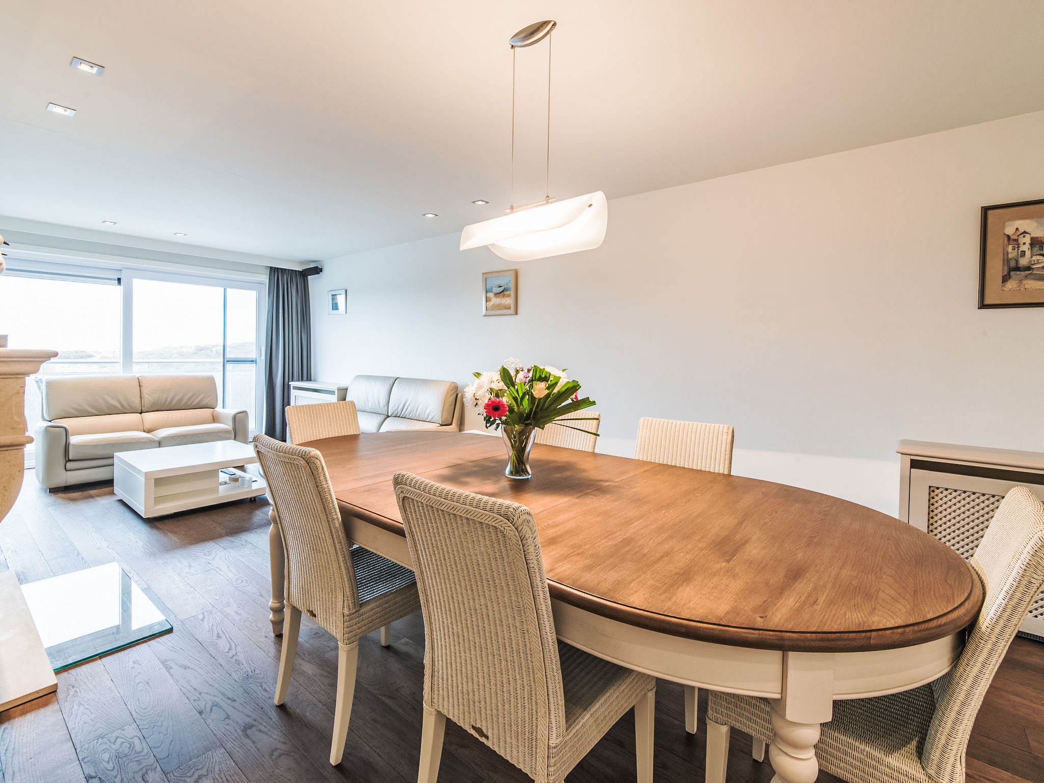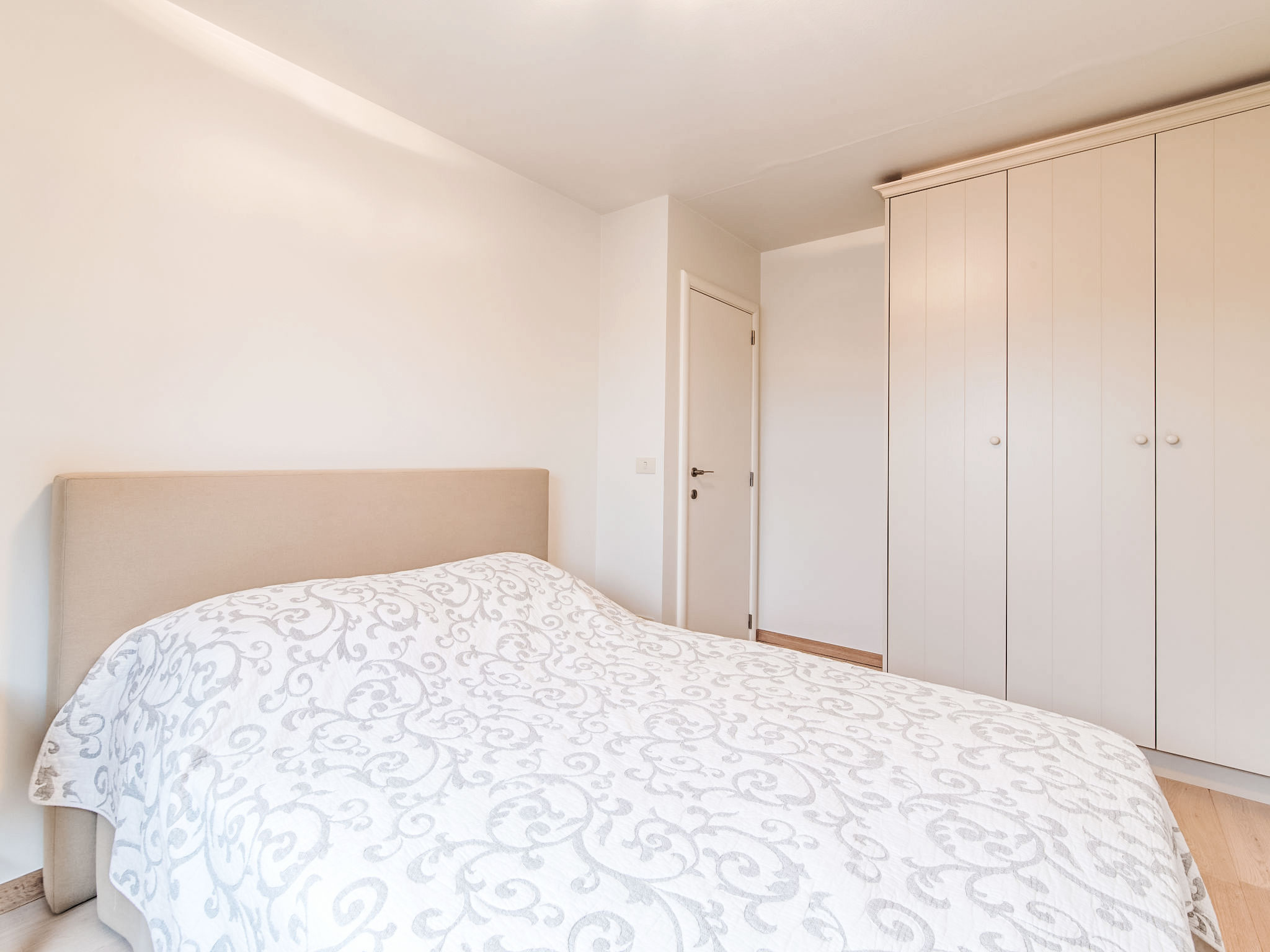 "Duplex", 4-Zimmer-Wohnung 135 m2 auf 2 Stockwerken im 5. Stock. Geräumig, zweckmässig eingerichtet: Wohn-/Esszimmer mit Esstisch und Digital-TV. Ausgang zur Terrasse. Eingang mit sep. WC. Küche (Backofen, Geschirrspüler, 4 Induktionskochplatten, Wasserkocher, Mikrowelle, elektrische Kaffeemaschine). Ausgang zur Terrasse. Obergeschoss: 1 Doppelzimmer mit 1 Doppelbett (160 cm, Länge 200 cm). 1 Zimmer mit 1 Bett (90 cm, Länge 200 cm). 1 Doppelzimmer mit 1 Doppelbett (140 cm, Länge 200 cm). Bad/Dusche, sep. WC. Terrassenmöbel. Sicht auf das Meer. Zur Verfügung: Internet (Wireless LAN). Bitte beachten: Nichtraucher-Unterkunft.