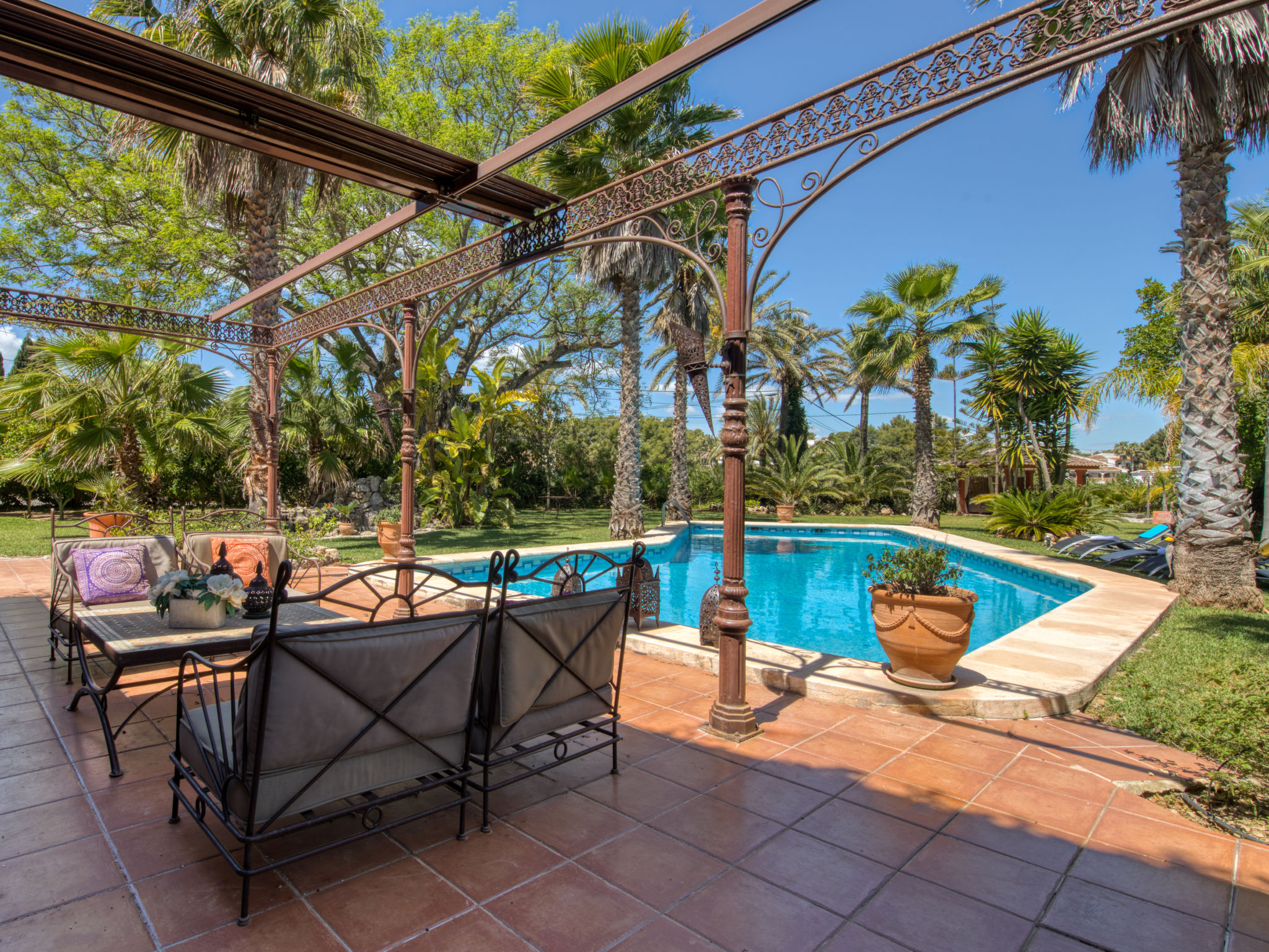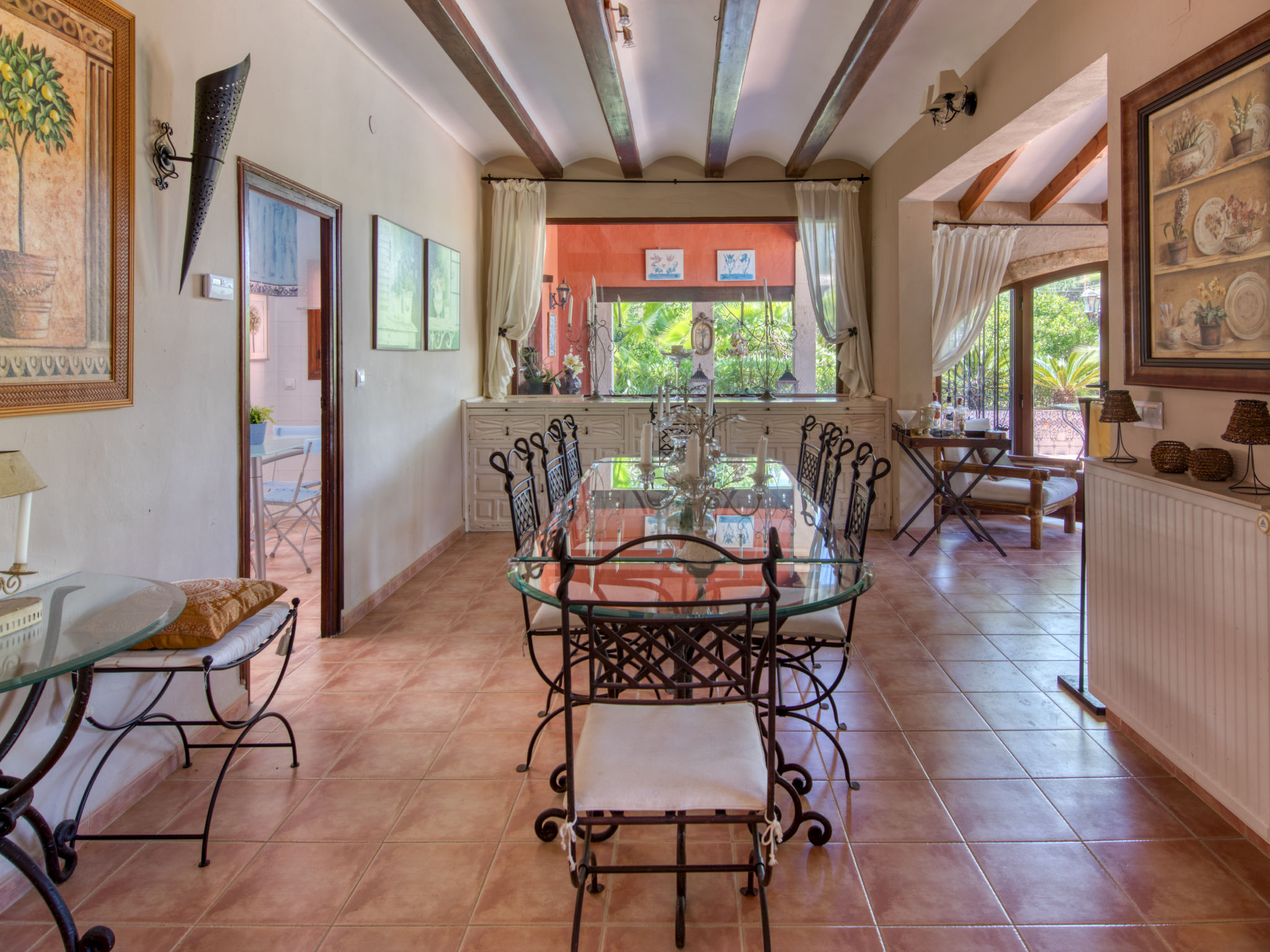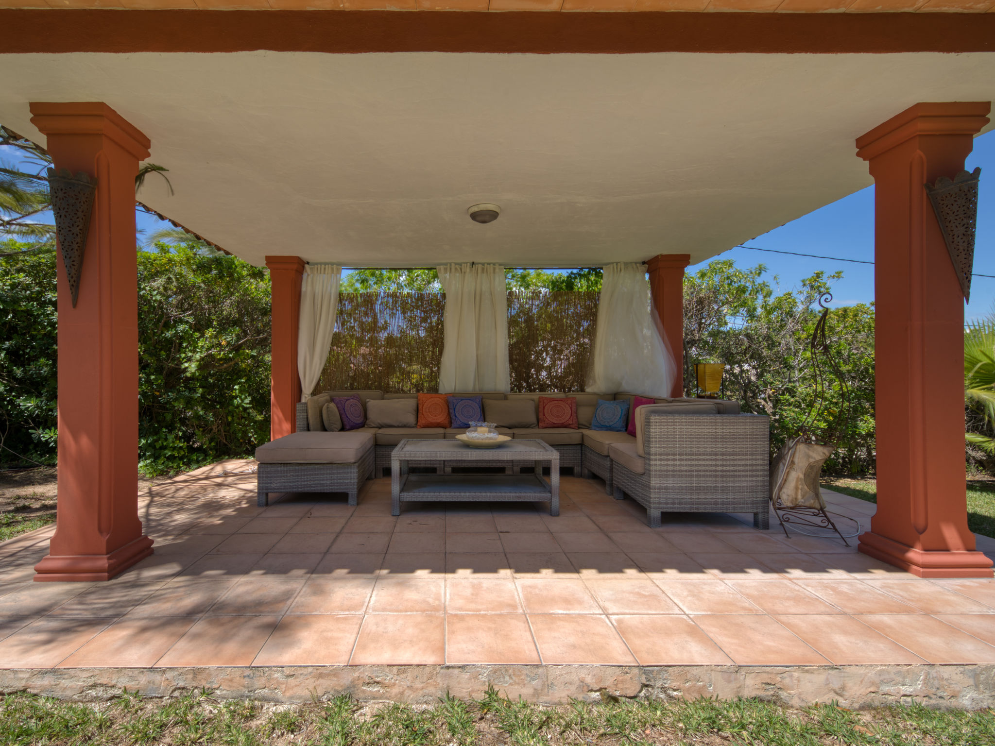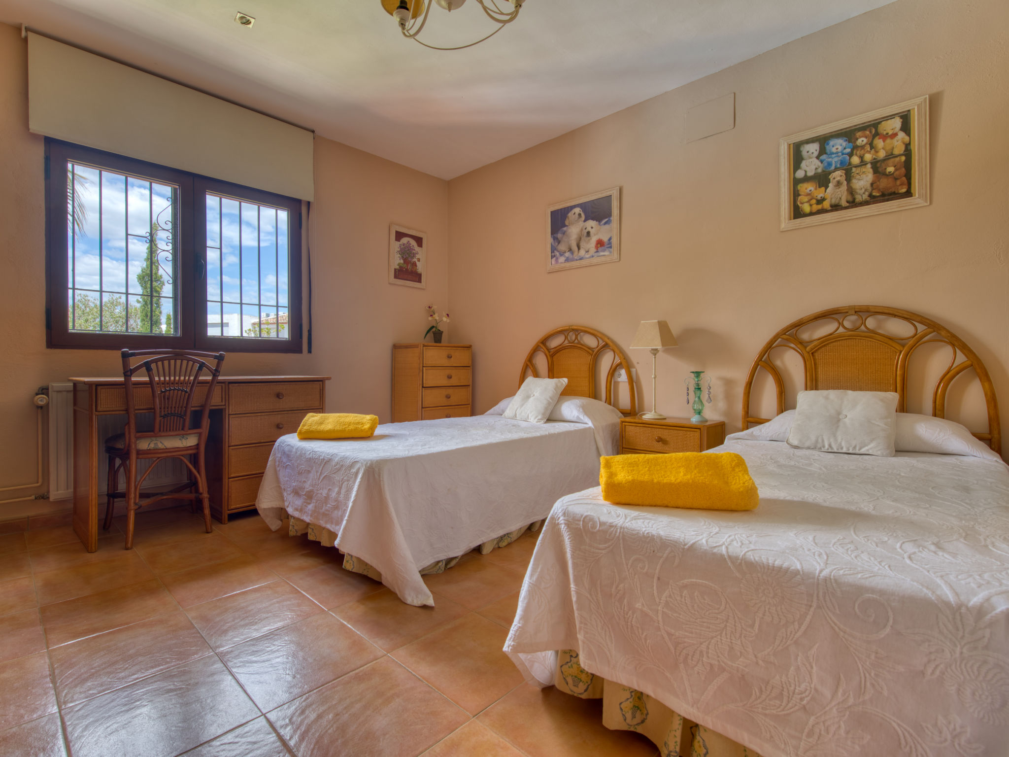 "Villa Adelfa", 6-Zimmer-Villa 440 m2 auf 2 Stockwerken. Sehr schön und stilvoll eingerichtet: Wohn-/Esszimmer. Ausgang zum Garten, Pergola, zum Gartensitzplatz, zum Schwimmbad. 1 Zimmer mit 1 franz. Bett (160 cm, Länge 190 cm), Bad/Bidet/WC. Ausgang zur Terrasse. Grosse Küche (Backofen, Geschirrspüler, 3 Glaskeramikherd Platten, Mikrowelle, Tiefkühler, elektrische Kaffeemaschine). Sep. WC. Obergeschoss: grosser Salon mit Esstisch, Sat-TV und Digital-TV. 1 Zimmer mit 2 Betten (90 cm, Länge 180 cm), Bad/Bidet/WC mit Ventilator. 1 Zimmer mit 2 Betten (90 cm, Länge 180 cm), Bad/Bidet/WC. 1 Zimmer mit 2 Betten (90 cm, Länge 180 cm). Bad/WC, Dusche/WC. Grosser Gartensitzplatz, Garten, Laube. Terrassenmöbel, Gartengrill, Liegestühle (4), Loggia. Zur Verfügung: Waschmaschine, Fliegengitter. Internet (Wireless LAN, gratis). VT487637A