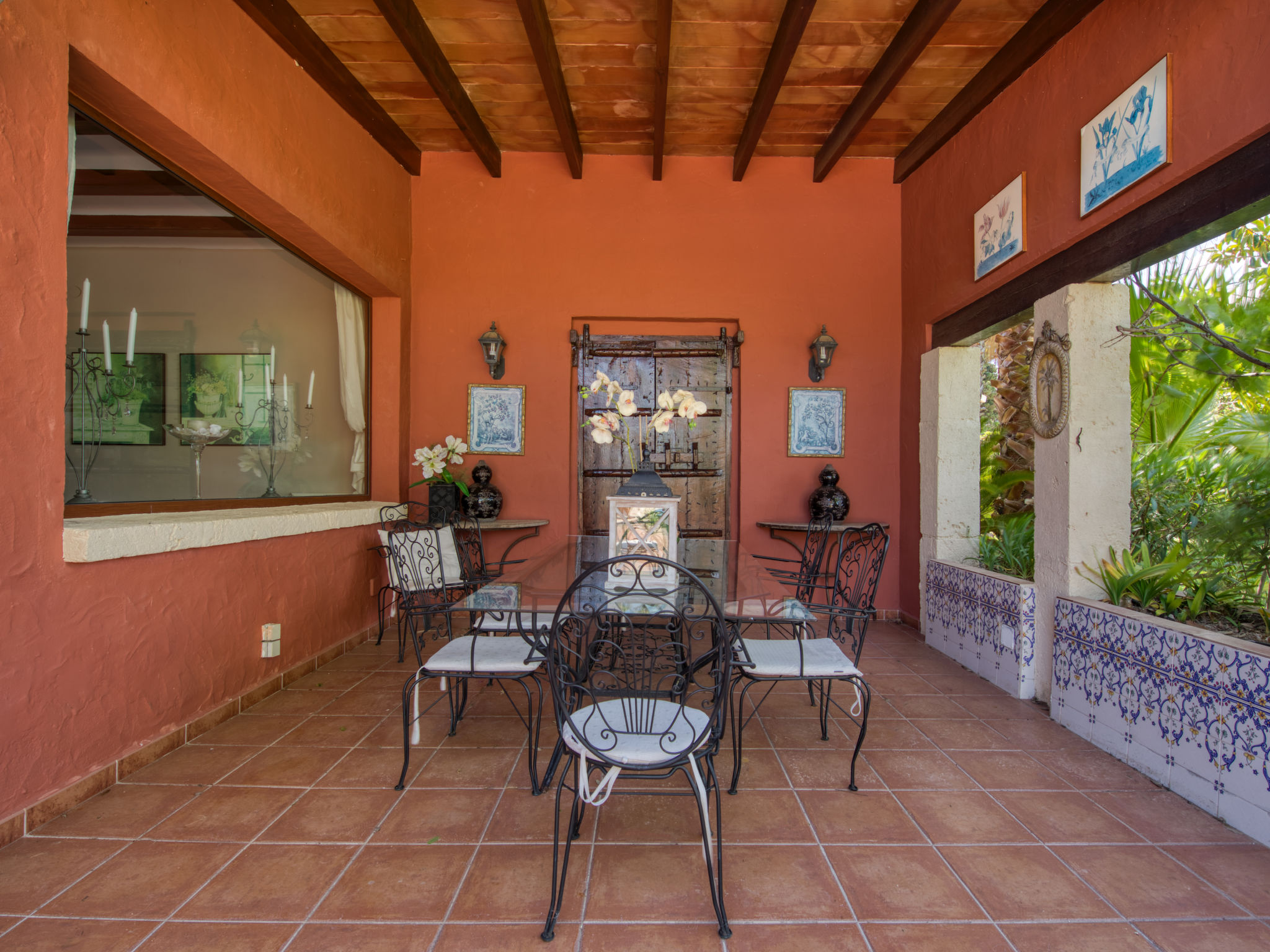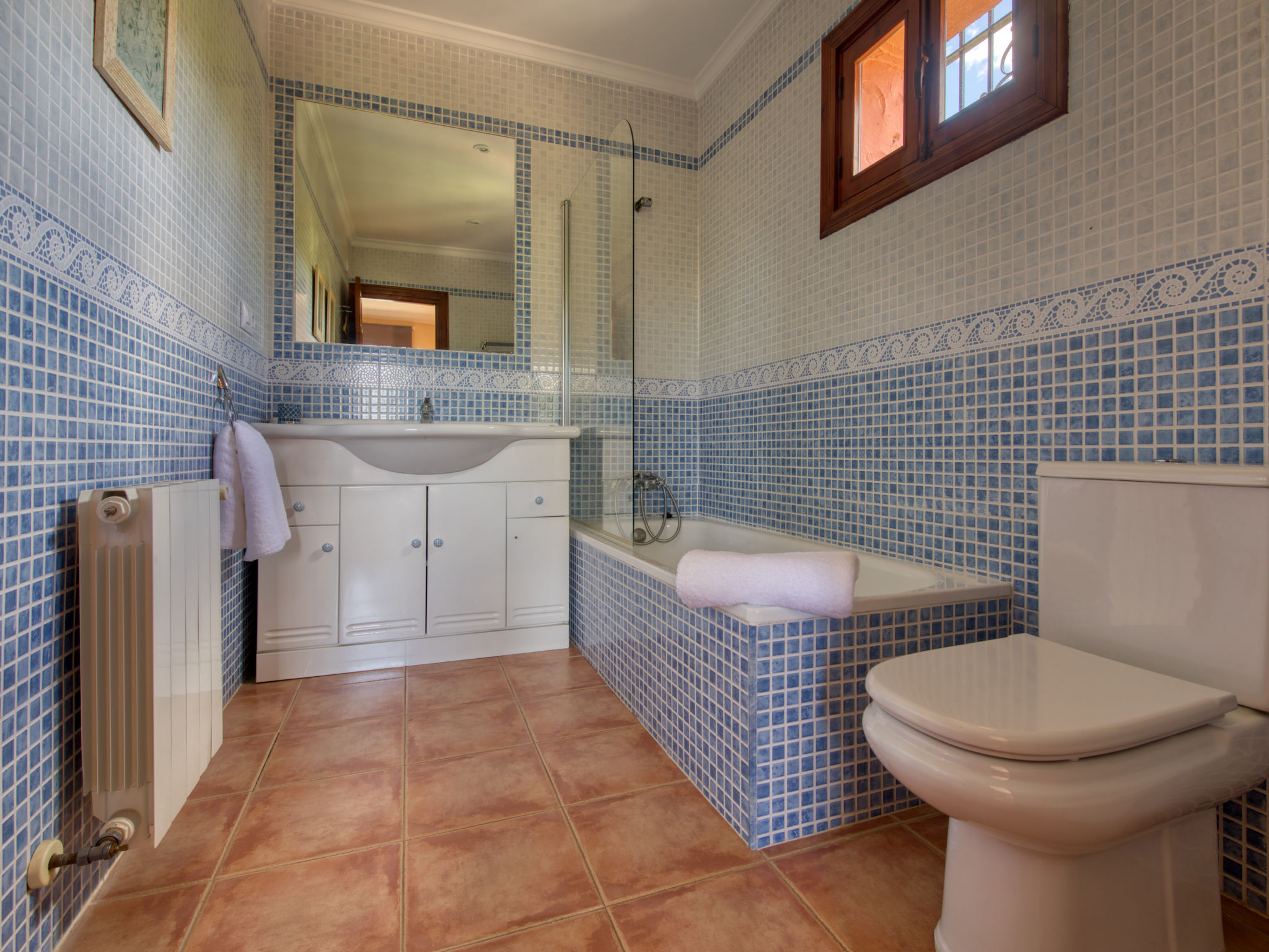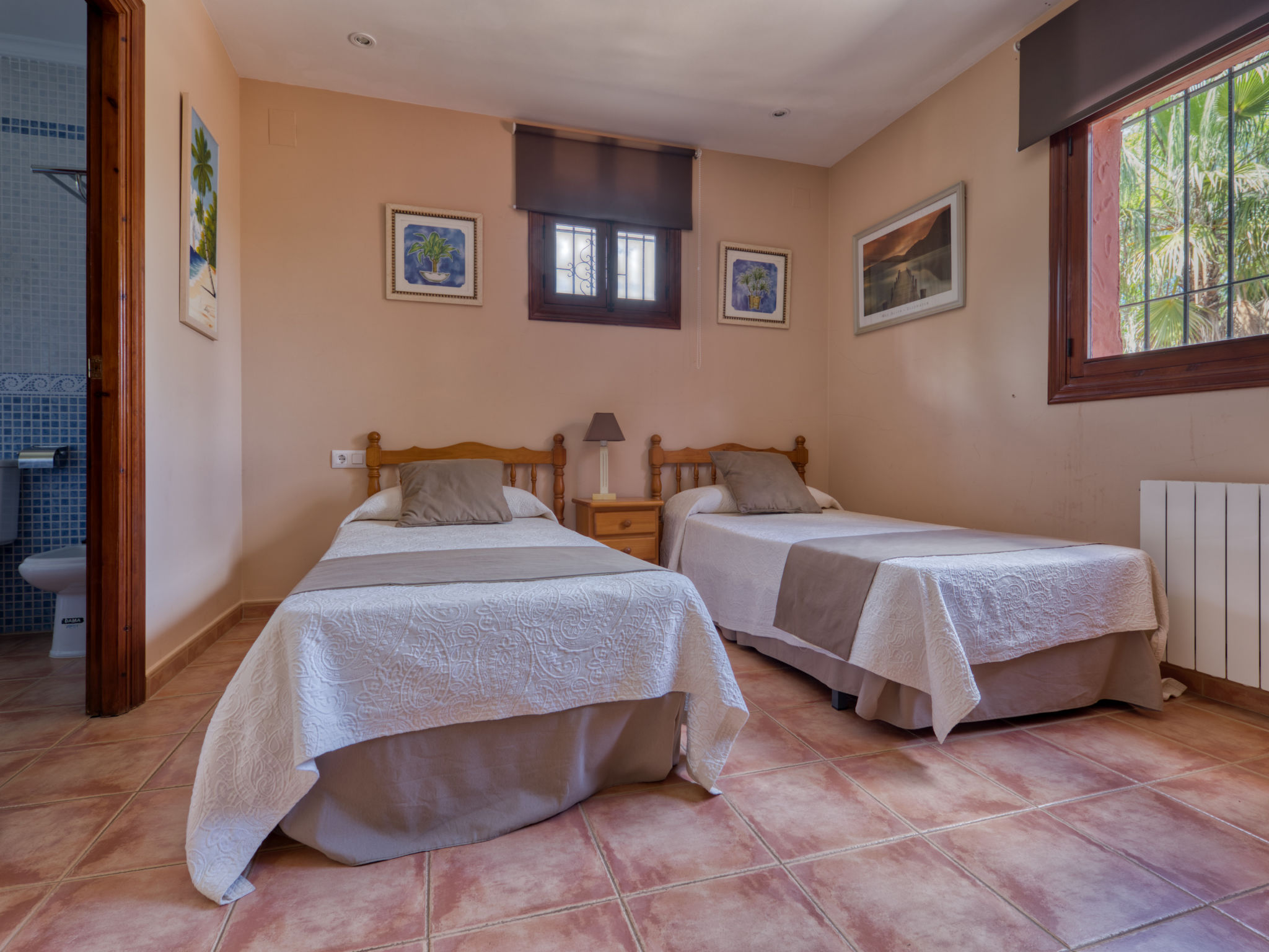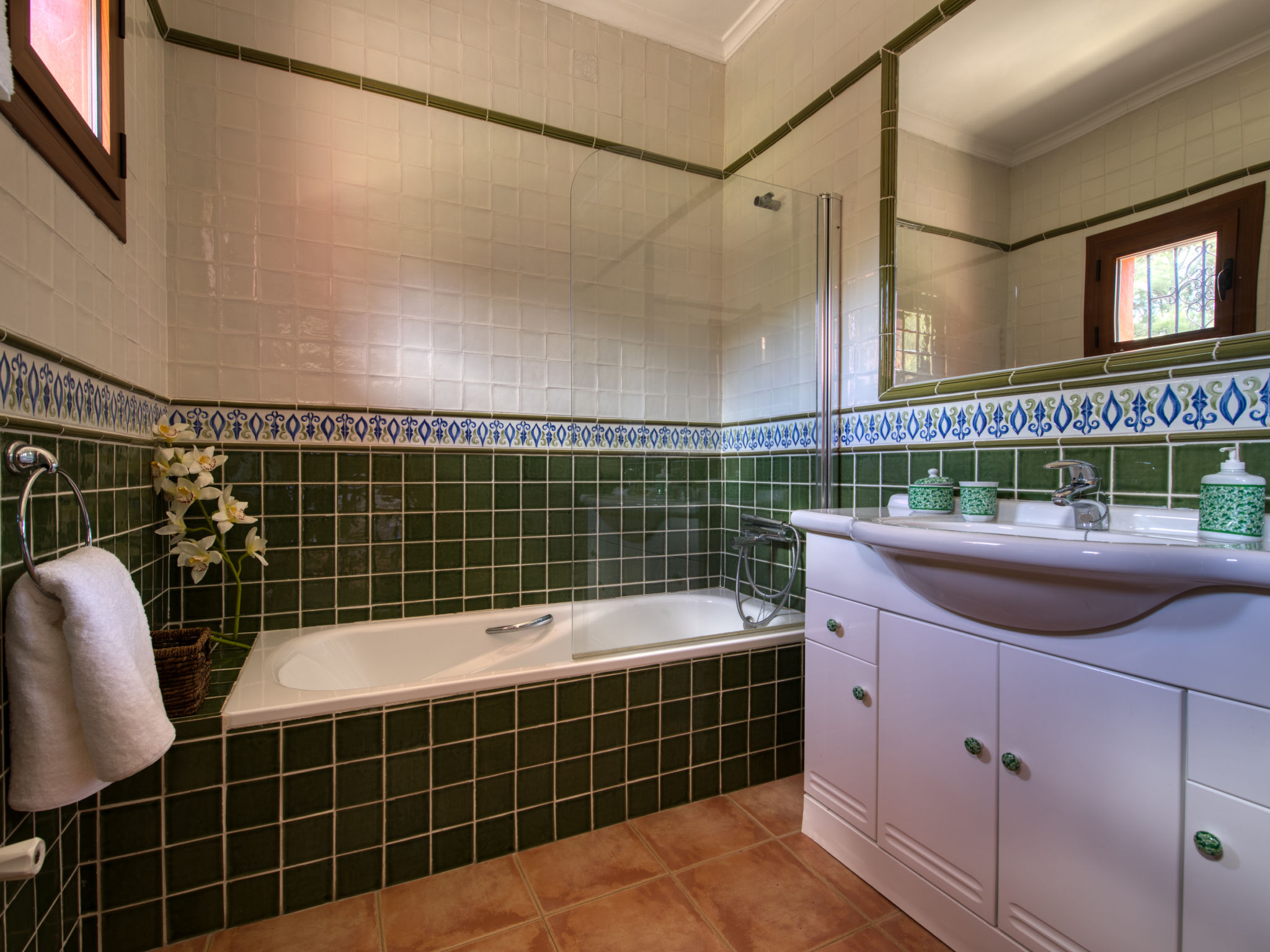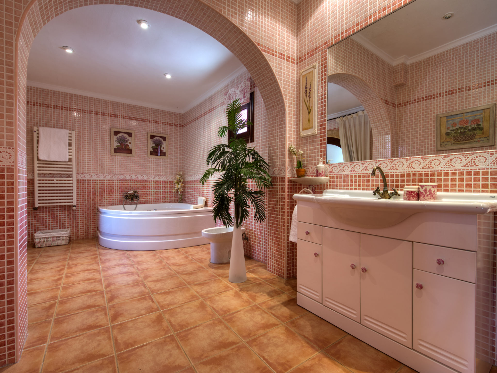 "Villa Adelfa", 6-Zimmer-Villa 440 m2 auf 2 Stockwerken. Sehr schön und stilvoll eingerichtet: Wohn-/Esszimmer. Ausgang zum Garten, Pergola, zum Gartensitzplatz, zum Schwimmbad. 1 Zimmer mit 1 franz. Bett (160 cm, Länge 190 cm), Bad/Bidet/WC. Ausgang zur Terrasse. Grosse Küche (Backofen, Geschirrspüler, 3 Glaskeramikherd Platten, Mikrowelle, Tiefkühler, elektrische Kaffeemaschine). Sep. WC. Obergeschoss: grosser Salon mit Esstisch, Sat-TV und Digital-TV. 1 Zimmer mit 2 Betten (90 cm, Länge 180 cm), Bad/Bidet/WC mit Ventilator. 1 Zimmer mit 2 Betten (90 cm, Länge 180 cm), Bad/Bidet/WC. 1 Zimmer mit 2 Betten (90 cm, Länge 180 cm). Bad/WC, Dusche/WC. Grosser Gartensitzplatz, Garten, Laube. Terrassenmöbel, Gartengrill, Liegestühle (4), Loggia. Zur Verfügung: Waschmaschine, Fliegengitter. Internet (Wireless LAN, gratis). VT487637A