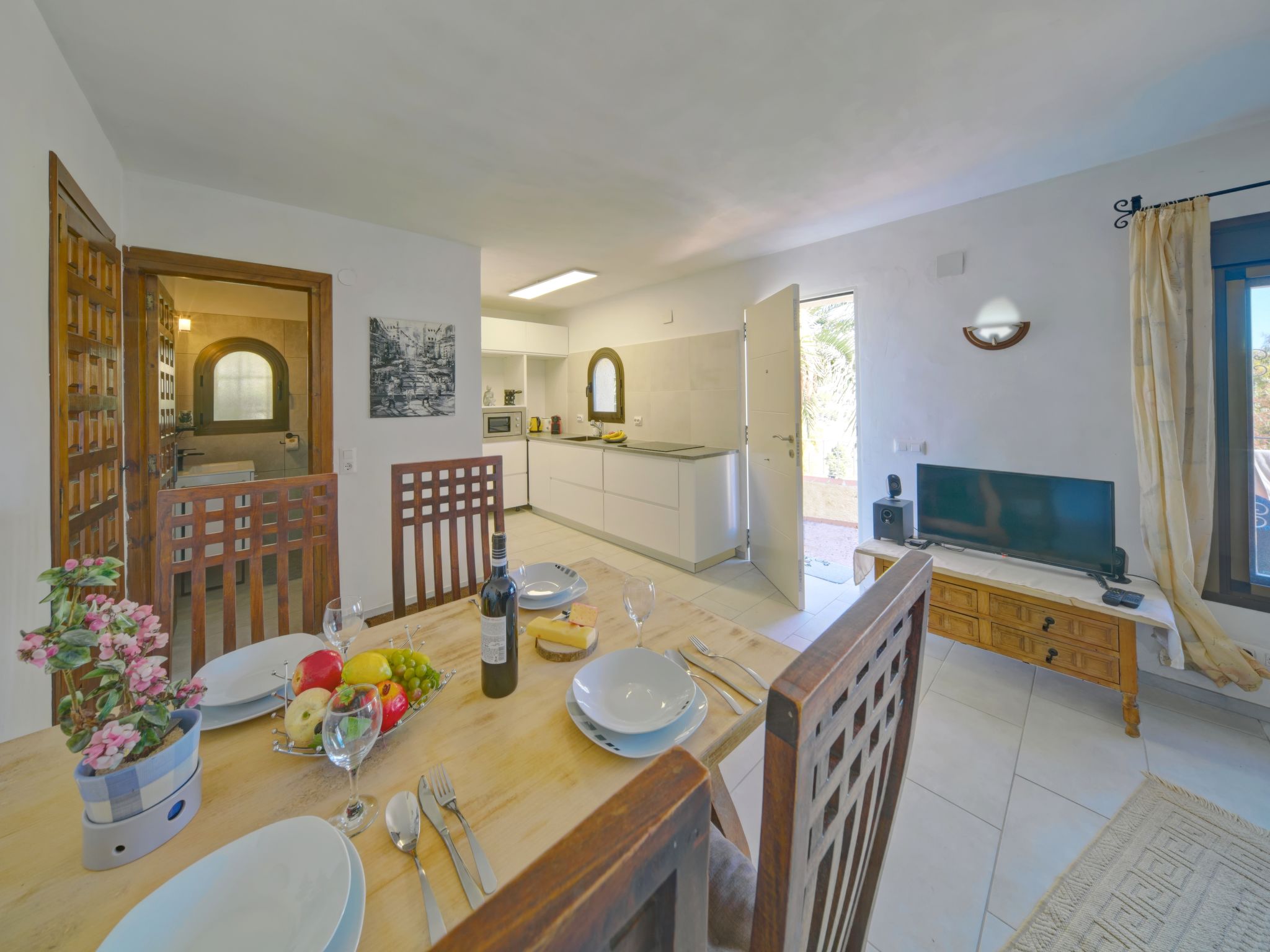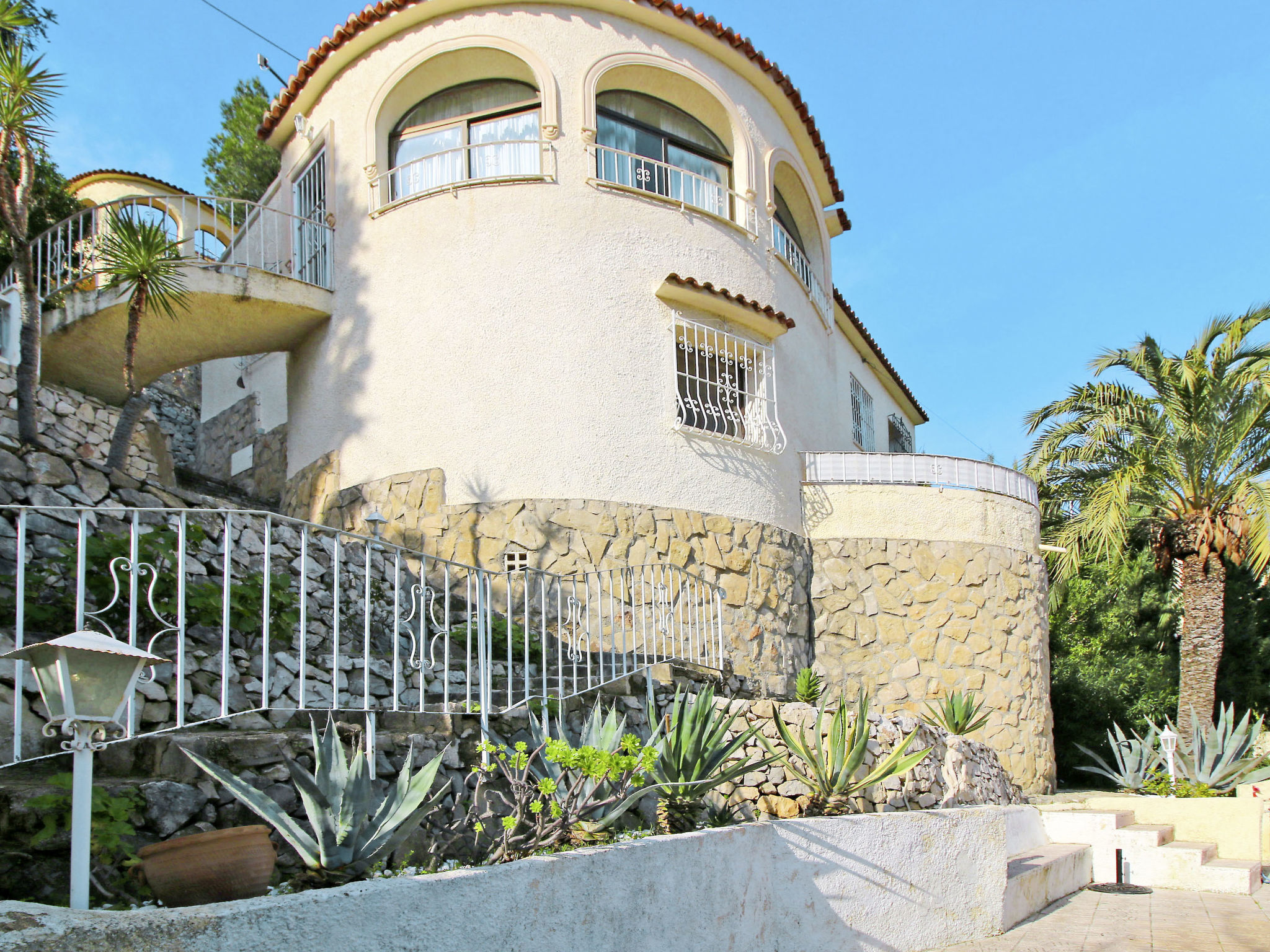 Das Ferienhaus EBI steht in Hanglage, im Ortsteil Maryvilla, 3 km von der Ortsmitte Calpe mit Einkaufsmöglichkeiten entfernt. Zum Sandstrand 'Puerto Blanco' 2 km. Supermarkt 4 km. Ca. 300 m² großes, gefliestes, teils bepflanztes mit Büschen, Bäumen und Kakteen angelegtes, abgeschlossenes Hanggrundstück. Parkmöglichkeit an der Straße beim Haus. Über Treppe zum Pool (ca. 6 x 3 m, gesamte Saison geöffnet) mit Poolterrasse mit Mobiliar, Außendusche und gemauertem Grill. Feriengerechte Einrichtung. Fliesenböden. Sat-TV (deutsche Programme). Internetzugang (WLAN, inklusive). Bügeleisen/-brett. Klimaanlage mit Kühl-/Heizfunktion. Elektroradiator oder Gasofen (Bestellung). Hinweis: Rauchen ist im Haus nicht gestattet.