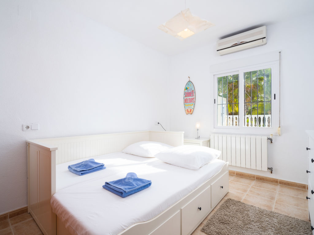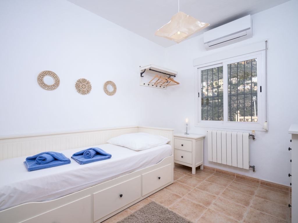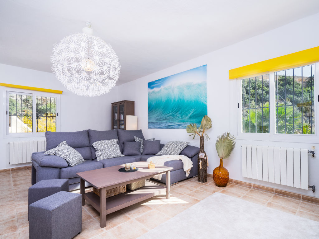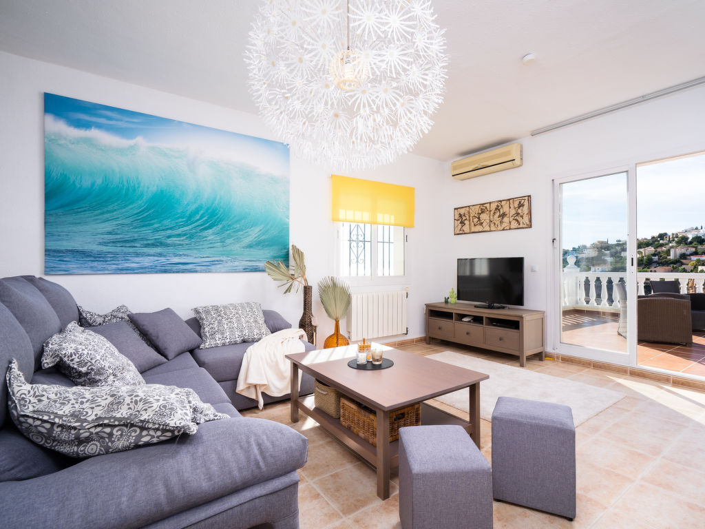 "Rioja", 4-Zimmer-Villa 160 m2 auf 2 Stockwerken. Geräumig und hell, komfortabel und schön eingerichtet: offenes Wohn-/Esszimmer mit Klimaanlage und Warmluftheizung. Ausgang zur Terrasse. Offene Küche). Sep. WC. Unteres Geschoss: 1 Zimmer mit 1 Doppelbett, Bad/WC, Klimaanlage und Warmluftheizung. 3 Zimmer, jedes Zimmer mit 1 Doppelbett, Klimaanlage und Warmluftheizung. Dusche/WC. 2 grosse Terrassen. Terrassenmöbel, Gartengrill, Liegestühle. Sehr schöne Sicht auf das Meer und das Tal. Zur Verfügung: Waschmaschine. Internet (Wireless LAN, gratis). Parkplatz. Bitte beachten: geeignet für Familien. Nichtraucher-Haus. R000000001