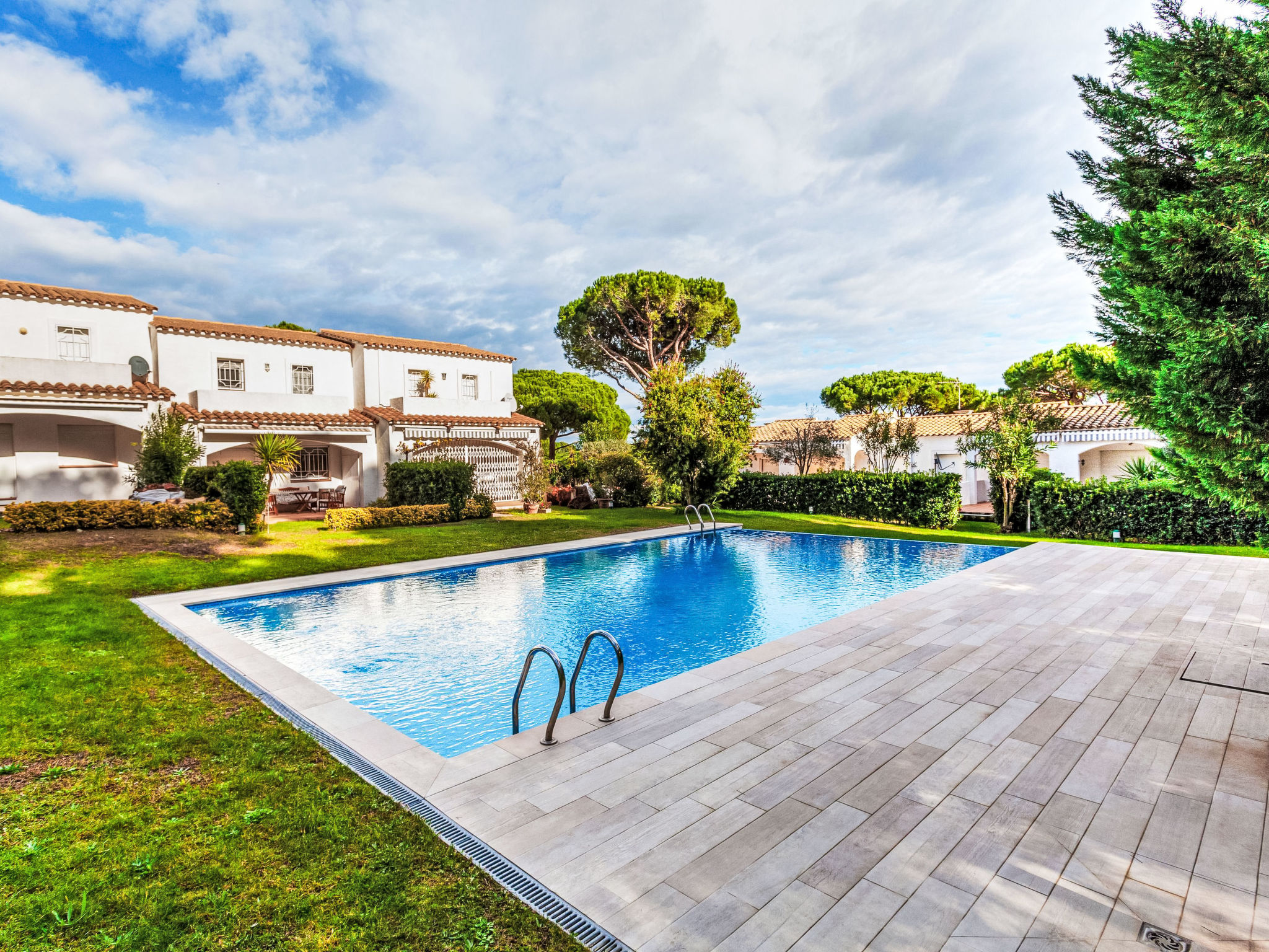 Reihenhaus "Trebol". 1900 km vom Meer. Zur Mitbenutzung: mit Rasen, Naturgarten, Schwimmbad (10 x 6 m, 95 - 185 cm tief, saisonale Verfügbarkeit: 15.Mai.-16.Okt.). Aussendusche. Supermarkt 1 km, Restaurant 1 km, Sandstrand "Playa de Pals" 1.9 km. Golfplatz (18 Loch) 400 m. Nahe gelegene Sehenswürdigkeiten: Illes Medes 17 km.