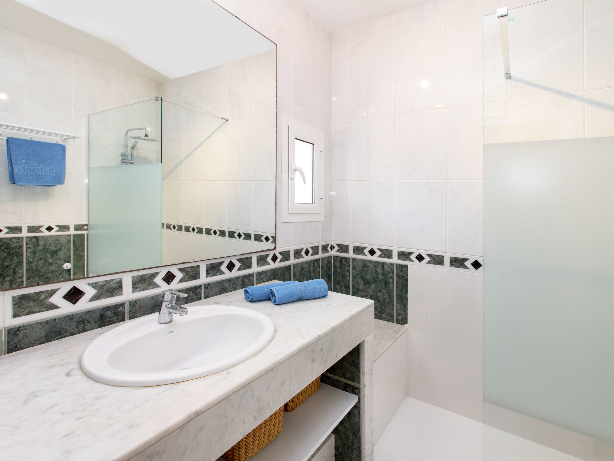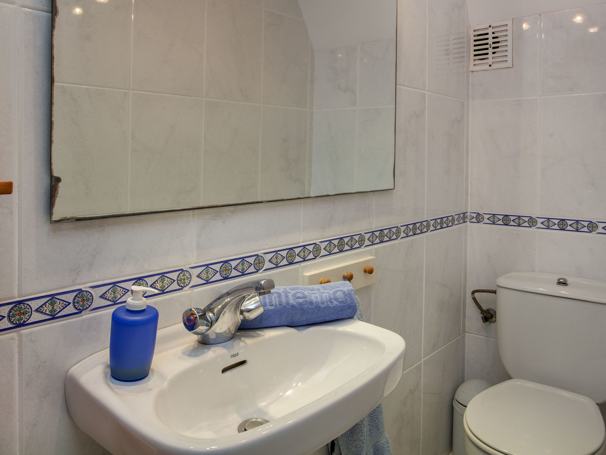 "Trebol Blanco", 3-Zimmer-Reihenhaus 55 m2 auf 2 Stockwerken. Zweckmässig eingerichtet: Wohn-/Esszimmer mit offenem Kamin (nur Deko), Digital-TV. Ausgang zum Gartensitzplatz. Offene Küche (Backofen, Geschirrspüler, 3 Glaskeramikherd Platten, Mikrowelle). Sep. WC. Boiler (100 Liter). Obergeschoss: 1 Zimmer mit 1 franz. Bett (150 cm, Länge 190 cm). 1 Zimmer mit 1 x 2 Etagenbetten (140 cm, Länge 190 cm). Bad/WC. Gartensitzplatz. Terrassenmöbel. Zur Verfügung: Waschmaschine, Kinderhochstuhl, Babybett, Haartrockner. Parkplatz (1 Auto). Bitte beachten: TV nur ES. HUTG003154
