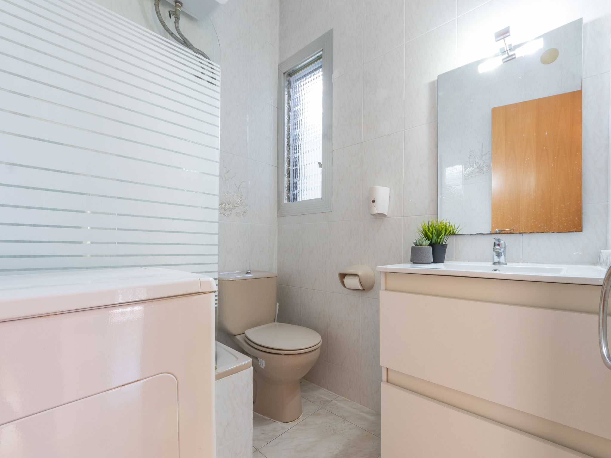 Torredembarra 18 km von Tarragona: Appartementhaus auf 2 Stockwerken. 4 Wohnungen im Ferienhaus. 600 m vom Meer, 600 m vom Strand. Zur Mitbenutzung: Grundstück. Aussendusche, öffentliche Parkplätze auf der Strasse. Einkaufsgeschäft 400 m, Lebensmittelgeschäft 600 m, Supermarkt 1 km, Einkaufszentrum 19 km, Restaurant 300 m, Bar 500 m, Bäckerei 1 km, Café 500 m, Fußgängerzone 600 m, Zentrum zu Fuss in 11 Minuten erreichbar, Bushaltestelle 400 m, Bahnstation "Renfe Torredembarra" 1.2 km. Sporthafen 800 m, Tennis 2 km, Reitstall 2 km. Nahe gelegene Sehenswürdigkeiten: Port Aventura 30 km, Aquopolis 35 km, Jungle Trek 8 km. Bekannte Seen in der Umgebung sind gut erreichbar: Pantano de Foix 33 km, Bassa de les Olles 85 km, Embalse de Siurana 60 km. Wandergebiete: La Musara 56 km, Ronda verda del Baix Gaia 5 km. Bitte beachten: kein Fahrstuhl vorhanden. Der Besitzer akzeptiert keine Jugendgruppen. Autobahn 3 km vom Haus. Hauptstrasse 850 m vom Haus. Flugplatz 80 km vom Haus. Die Nachbarschaft ist sehr lärmempfindlich. Ruhe und gutes Benehmen wird erwartet.