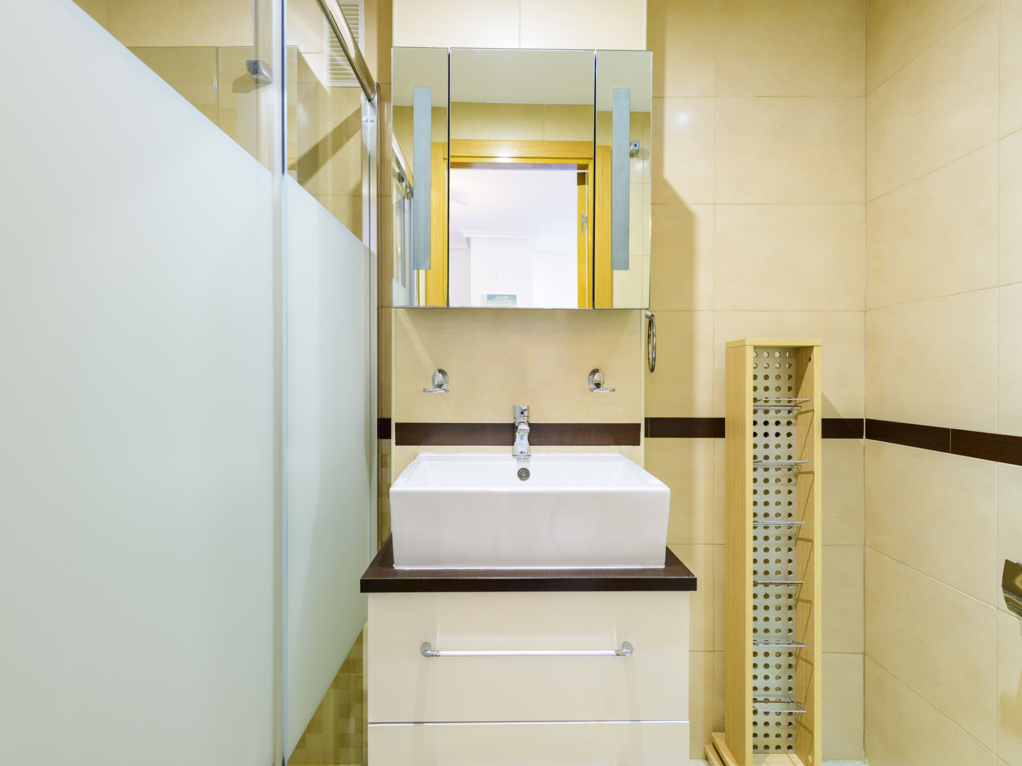 "Altamar", 3-Zimmer-Wohnung 60 m2 im 7. Stock. Hell, komfortabel und gemütlich eingerichtet: Wohn-/Esszimmer mit 1 Doppeldiwanbett, Esstisch, TV und Klimaanlage. Ausgang zur Terrasse. 1 Doppelzimmer mit 1 Doppelbett (135 cm, Länge 190 cm), Ventilator. 1 Zimmer mit 2 Betten (90 cm, Länge 190 cm), Ventilator. Küche (Geschirrspüler, 4 Glaskeramikherd Platten, Mikrowelle, Tiefkühler, elektrische Kaffeemaschine) mit Durchreiche. Bad/WC. Terrasse 12 m2, Ostlage. Terrassenmöbel. Sicht auf das Meer und die Berge. Zur Verfügung: Waschmaschine, Bügeleisen, Babybett bis 2 Jahre, Haartrockner. Parkplatz Nr. 349 (überdacht). Bitte beachten: geeignet für Familien. Nichtraucher-Unterkunft. AT-39822-CS