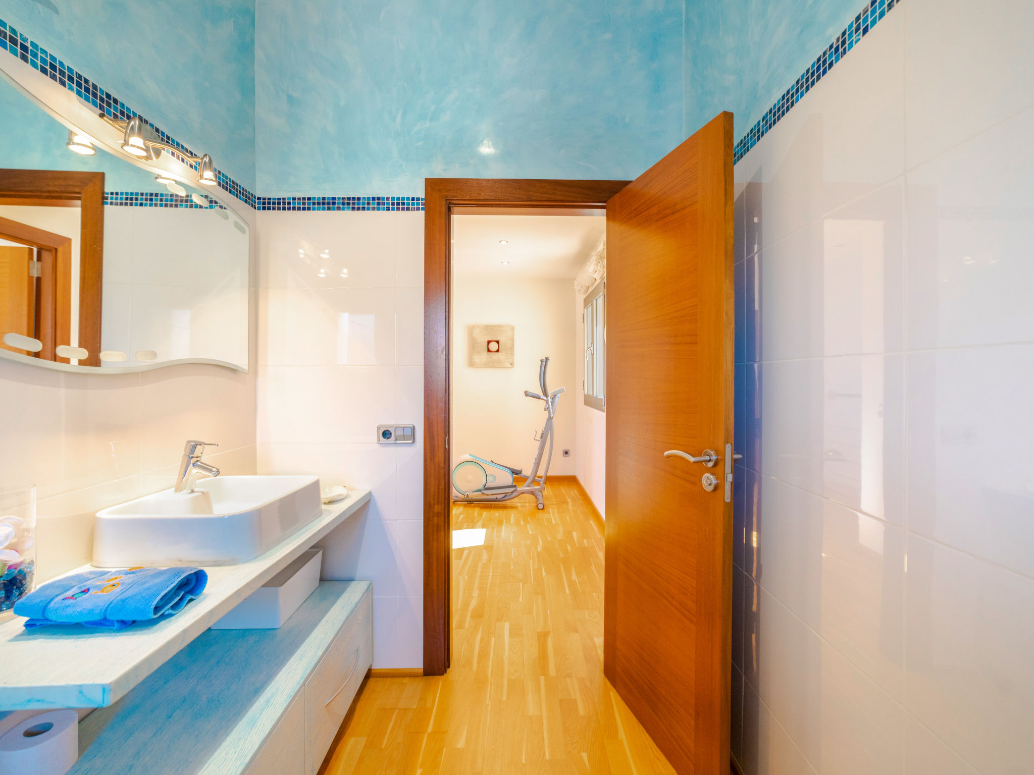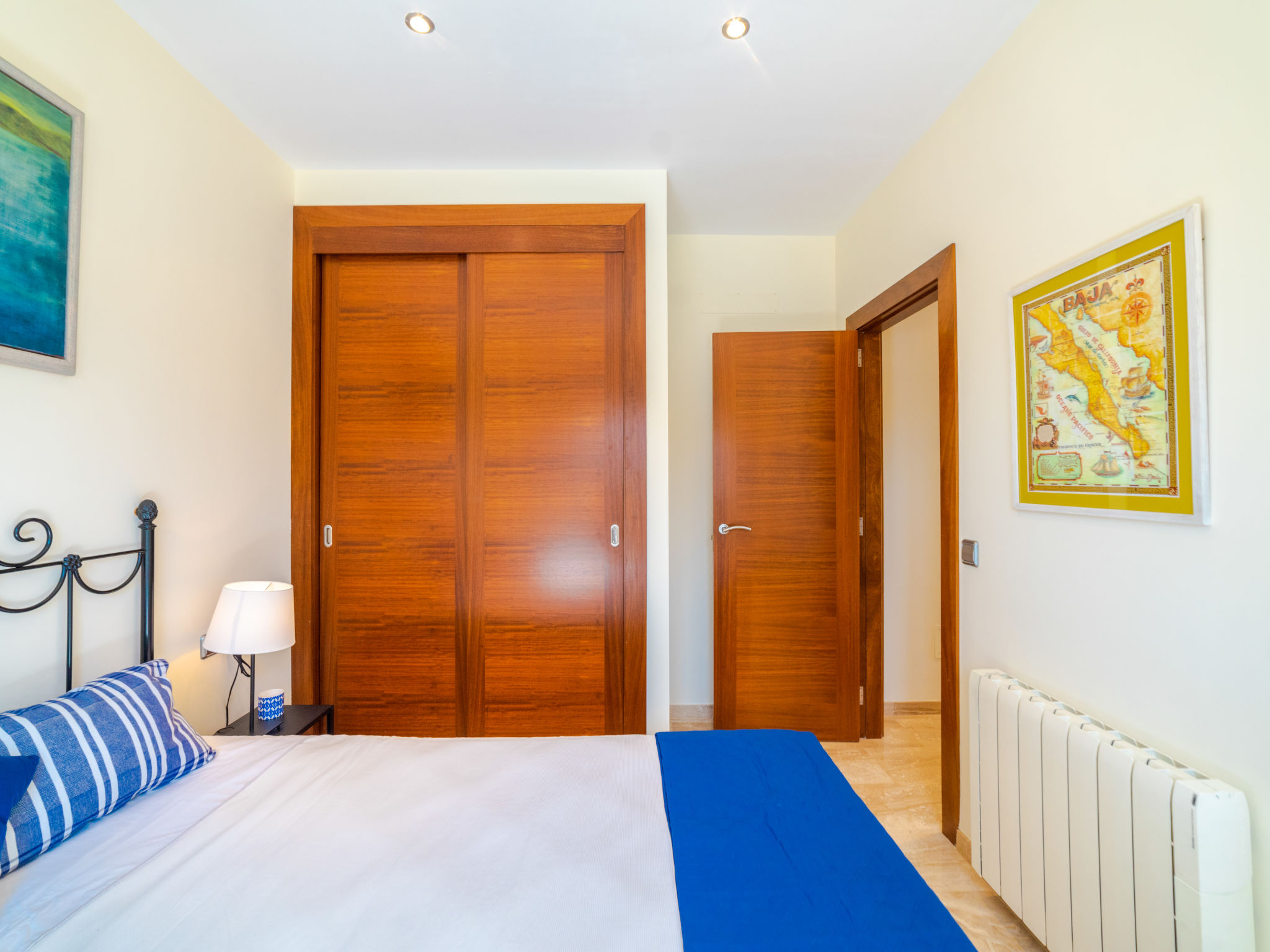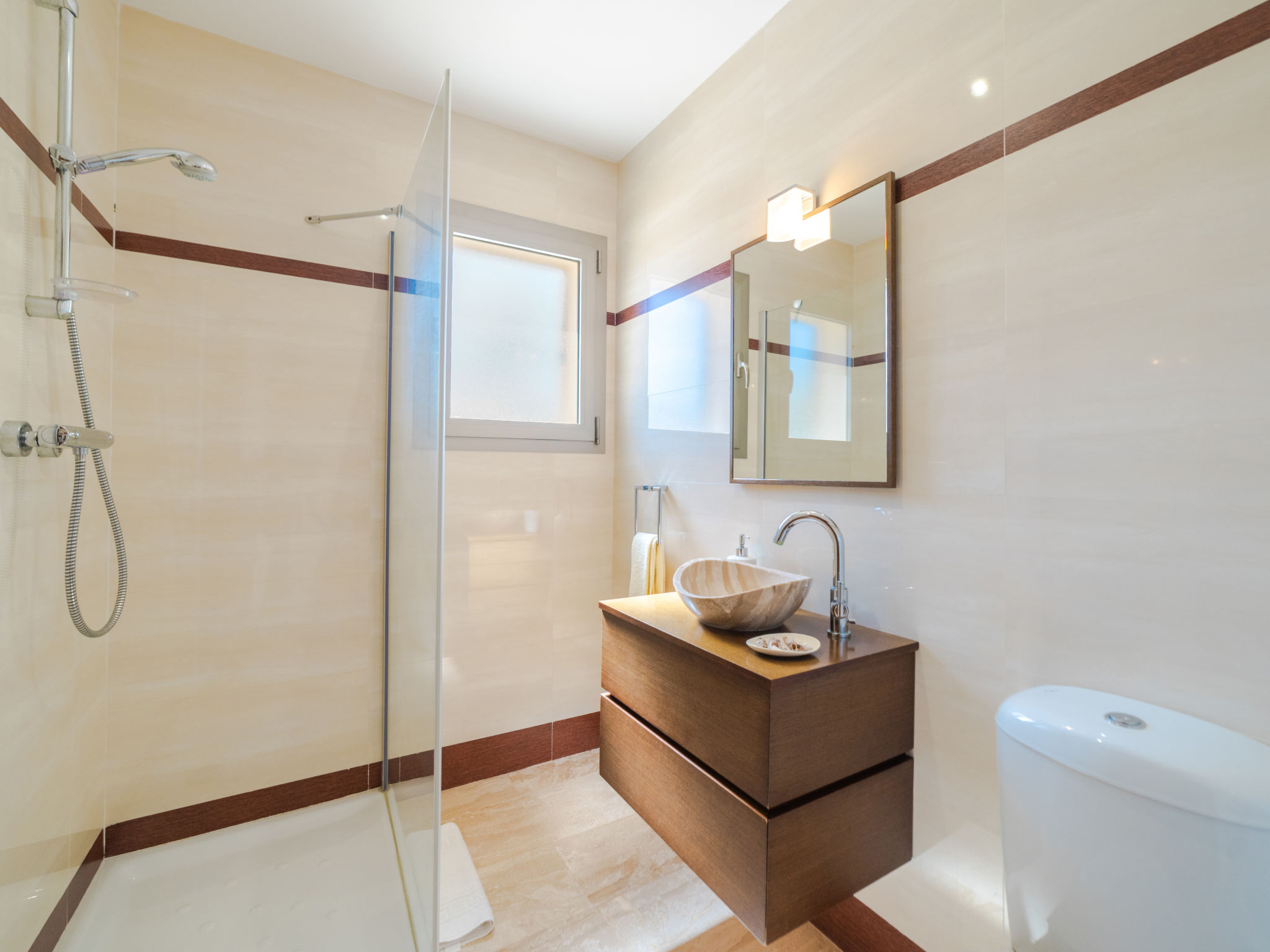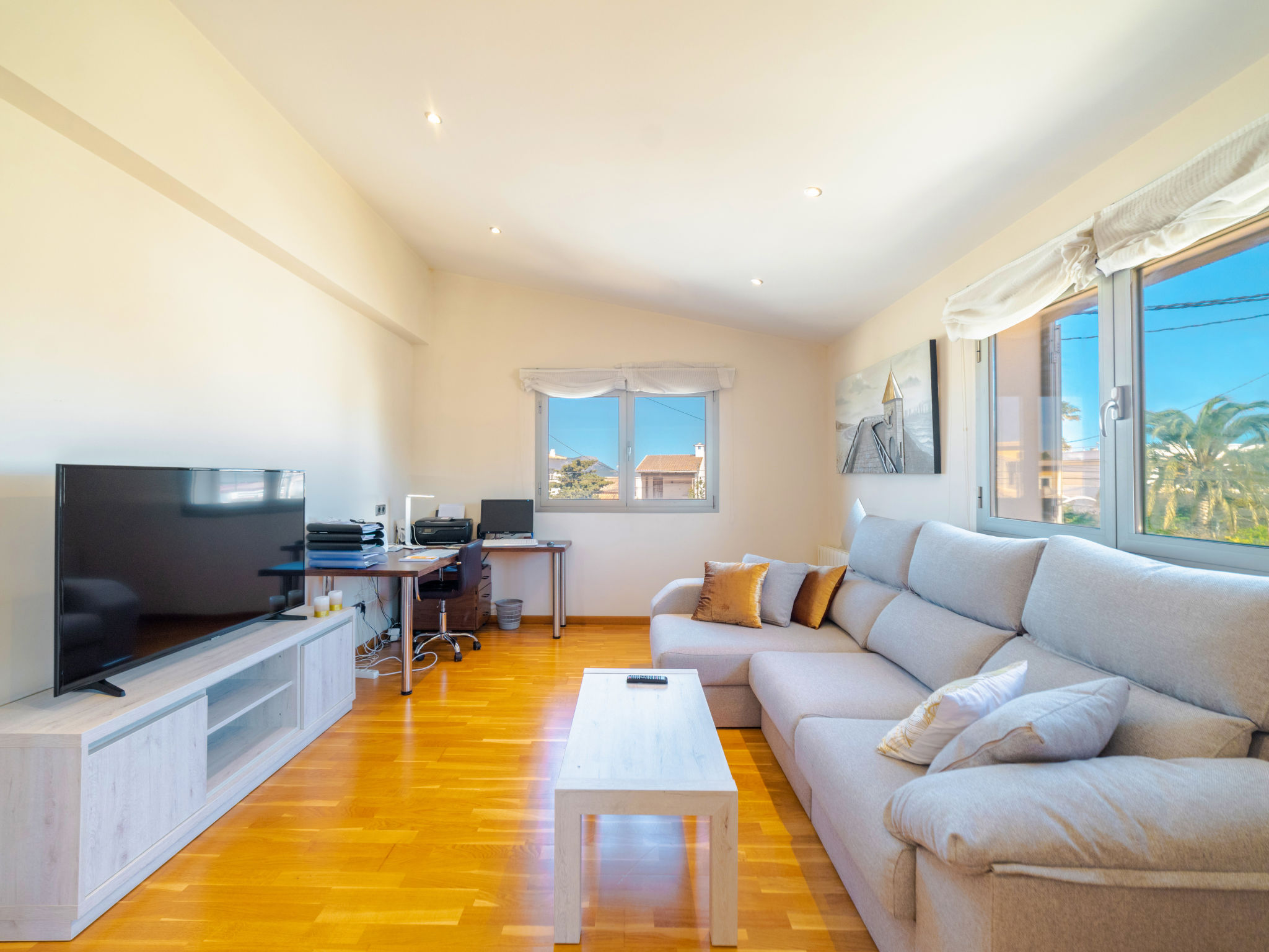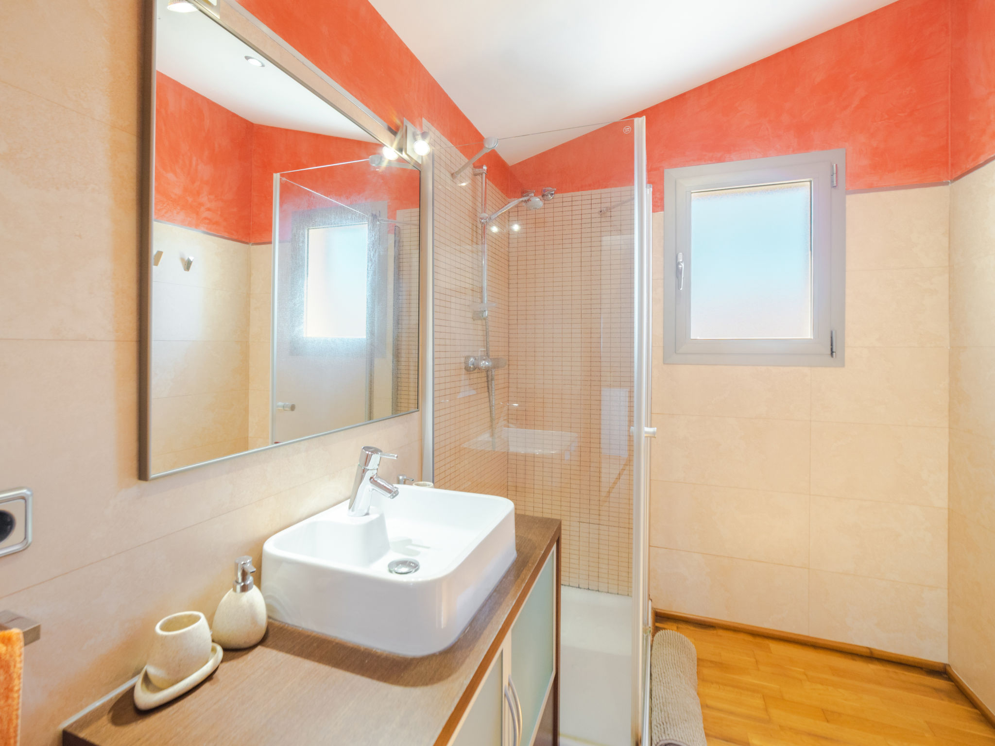 Barcarés 1 km von Alcúdia: Sehr grosse, sehr moderne, alleinstehende Villa "Son Jil", auf 2 Stockwerken, Baujahr 2005. Ruhige, sonnige Lage im Villenviertel, 2 km vom Waldrand, 60 m vom Meer, Strasse zu überqueren. Zur Alleinbenutzung: grosser, gepflegter Garten mit Rasen und Pflanzen, Schwimmbad eckig (8 x 4 m, 150 - 150 cm tief, 01.01.-31.12.) mit Salzelektrolyse-Reinigungssystem. Aussendusche, Sitzplatz, Laube, Pergola, Gartenmöbel, Grill. Im Hause: Internetzugang, Wireless LAN, Zentralheizung, Klimaanlage, Waschmaschine. Parkplatz beim Haus auf dem Grundstück, öffentliches Parkhaus, öffentliche Parkplätze auf der Strasse. Einkaufsgeschäft 1 km, Supermarkt 1.2 km, Einkaufszentrum 45 km, Restaurant, Bar 160 m, Fußgängerzone 50 m, Zentrum zu Fuss in 15 Minuten erreichbar, Bushaltestelle 1.5 km, Fähre 3 km, Sandstrand "Platja Es Morer Vermell" 550 m, Felsstrand "Platja Es Barcarés" 60 m. Sporthafen 250 m, Jacht-Hafen 3 km, Golfplatz (18 Loch) 6 km, Tennis 2.5 km, Reitstall 2.5 km, Sportzentrum 2.5 km, Wanderwege ab Haus 1 km, Radweg 700 m, Kinderspielplatz 500 m. Nahe gelegene Sehenswürdigkeiten: Ermita de la Victoria, Barcarés, Manresa, Sa Marina, Es Malpas. Ciutat Romana de Pollentia, Alcudia. Port d'Alcúdia, Port de Pollença - Pollença, North Beaches. Wandergebiete: Sa Talaia, Es Puig de Sant Martí, Serra Tramuntana Pollença. Bitte beachten: geeignet für Familien, geeignet für Senioren. Objekt geeignet für 8 Erwachsene Jugendgruppen nur auf Anfrage. Flugplatz 60 km vom Haus.
