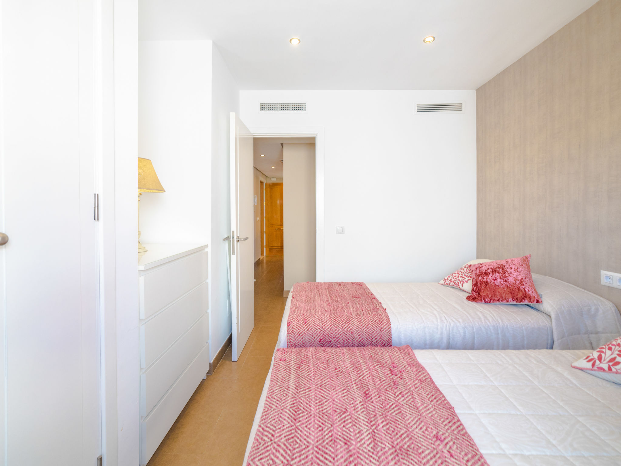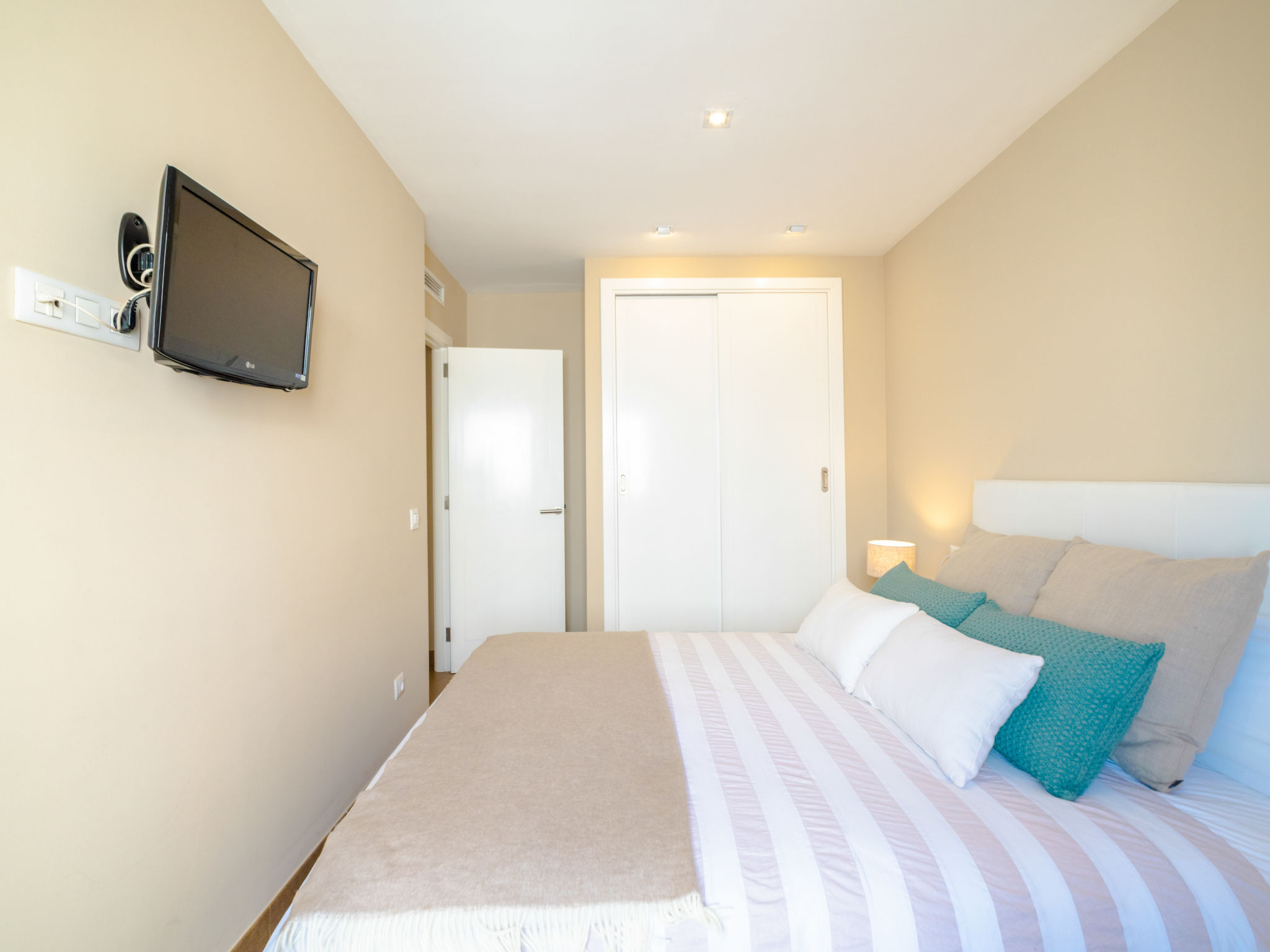"Nautic Sea Views", 3-Zimmer-Wohnung 100 m2 im 5. Stock. Objekt geeignet für 4 Erwachsene. Geräumig und hell, vollständig renoviert, sehr schön und modern eingerichtet: grosses Wohn-/Esszimmer mit Schiebetür, Panoramafenster mit Esstisch, TV, Flachbildschirm, E-Heizung, Klimaanlage und Warmluftheizung. Ausgang zur Terrasse. 1 Doppelzimmer mit Panoramafenster mit 1 franz. Bett (150 cm, Länge 200 cm), E-Heizung, Klimaanlage und Warmluftheizung. Ausgang zur Terrasse. 1 Doppelzimmer mit Panoramafenster mit 2 Betten (90 cm, Länge 190 cm), E-Heizung, Klimaanlage und Warmluftheizung. Wohnküche (3 Kochplatten, Backofen, Geschirrspüler, Mikrowelle, Tiefkühler, elektrische Kaffeemaschine) mit Esstisch. Ausgang zum Balkon. Dusche/WC. E-Heizung, Klimaanlage. Grosse Terrasse. Terrassenmöbel. Herrliche Panoramasicht auf das Meer, die Berge und die Bucht. Zur Verfügung: Waschmaschine, Bügeleisen, Kinderhochstuhl, Babybett, Haartrockner. Internet (Wireless LAN, gratis). Geeignet für Familien. ETVPL15292
