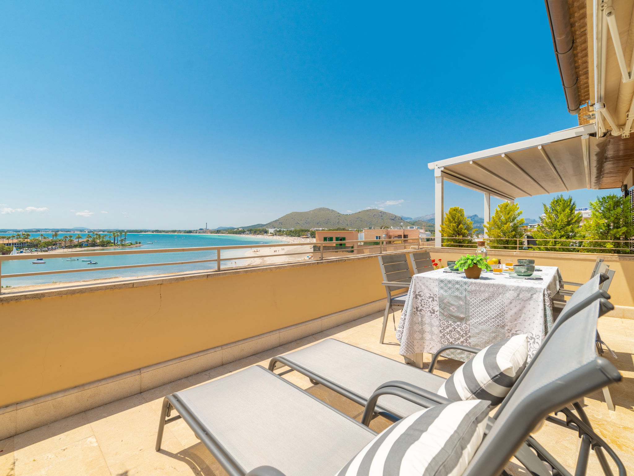 Port d'Alcúdia: Sehr modernes, komfortables Appartementhaus "Nautic Sea Views". Im Ortszentrum, sonnige Lage, exzellente Lage: Absolut zentral und dennoch ruhig, 2 km vom Waldrand, 50 m vom Meer, 50 m vom Strand, Strasse zu überqueren. Zur Alleinbenutzung: Terrasse. Im Hause: Internetzugang, Wireless LAN, Klimaanlage, Waschmaschine. Öffentliches Parkhaus in 100 m, öffentliche Parkplätze 100 m auf der Strasse. Zentralparkplätze. Einkaufsgeschäft, Lebensmittelgeschäft 50 m, Supermarkt 120 m, Einkaufszentrum 50 km, Restaurant, Bar 50 m, Bäckerei 200 m, Fußgängerzone 5 m, Fahrradverleih 200 m, Biergarten 50 m, Zentrum zu Fuss in 1 Minuten erreichbar, Bushaltestelle 120 m, Fähre 1 km, Sandstrand "Playa de Alcúdia" 35 m, Felsstrand "Alcanada" 2 km. Sporthafen, Jacht-Hafen 100 m, Golfplatz (18 Loch) 3 km, Tennis 1.5 km, Reitstall 3 km. Nahe gelegene Sehenswürdigkeiten: Ciutat Romana de Pollentia, Ermita de La Victoria, Faro de Aucanada, Alcúdia Local Market (Sunday 09.00-13.30, Playas de Muro, Port de Pollença. Wandergebiete: Atalaya de Alcúdia, Puig de Sant Martí, Serra de Tramuntana Pollença. Bitte beachten: geeignet für Familien, geeignet für Senioren. Objekt geeignet für 4 Erwachsene. Flugplatz 55 km vom Haus.