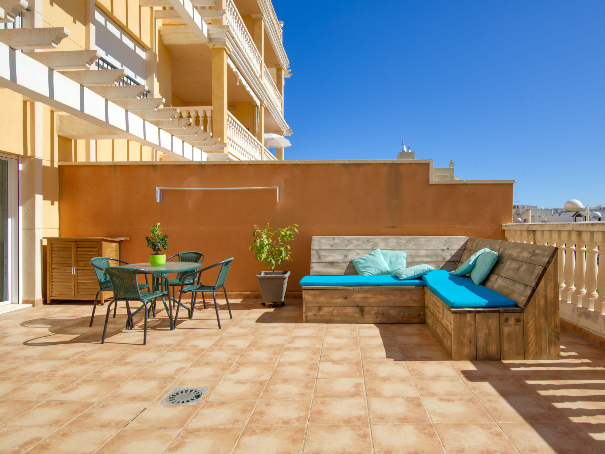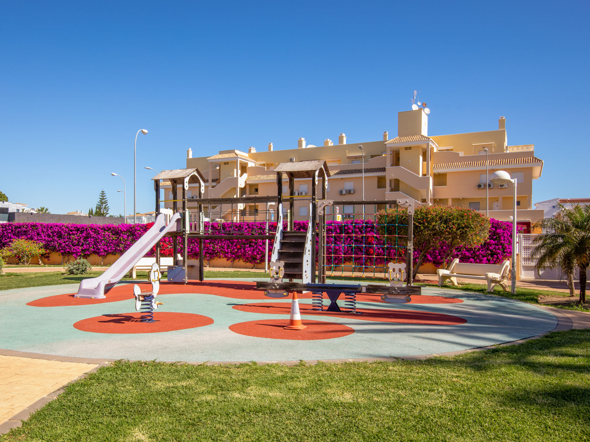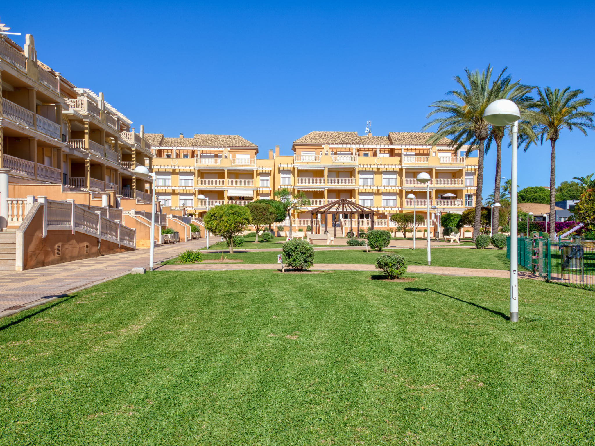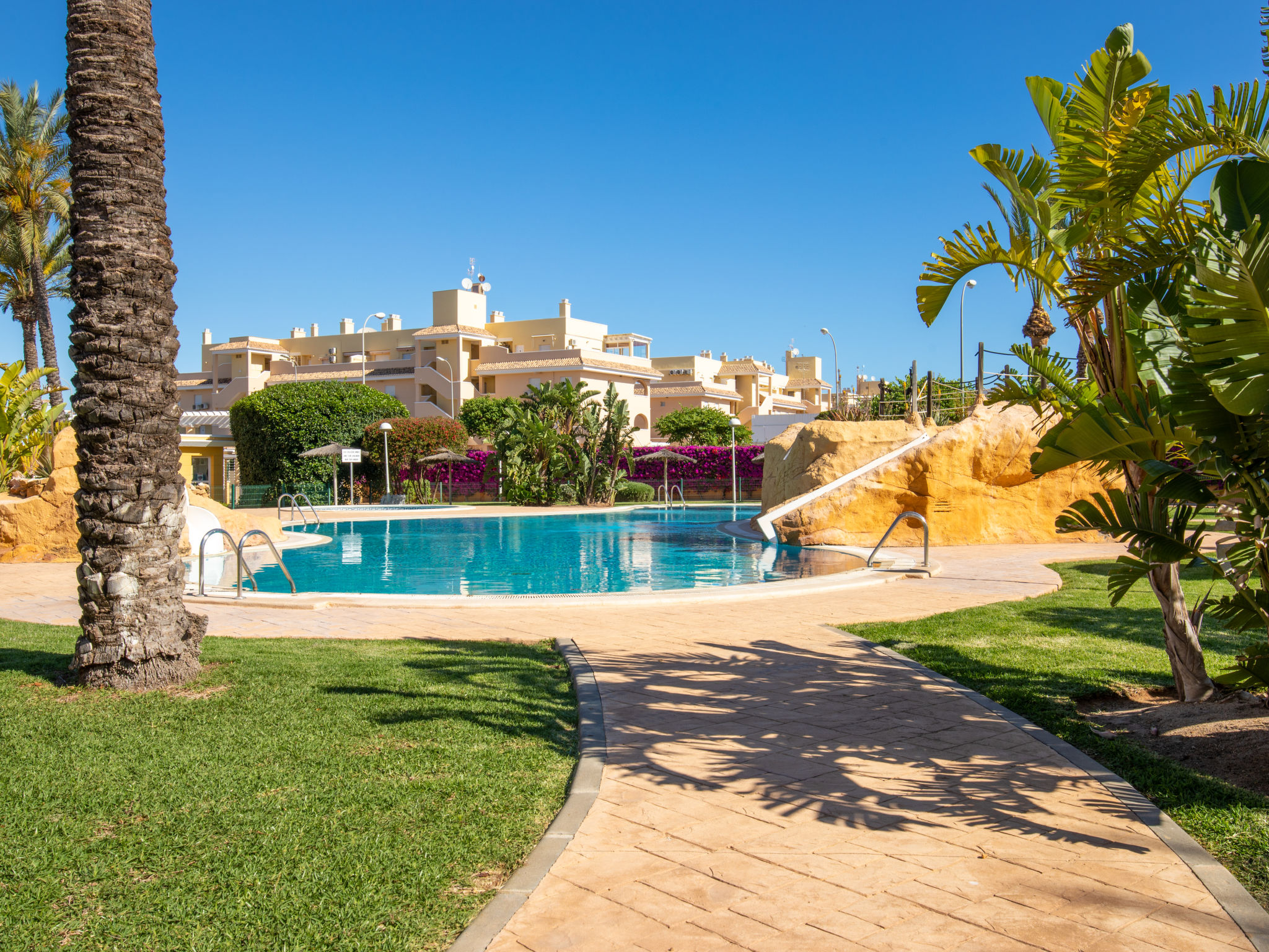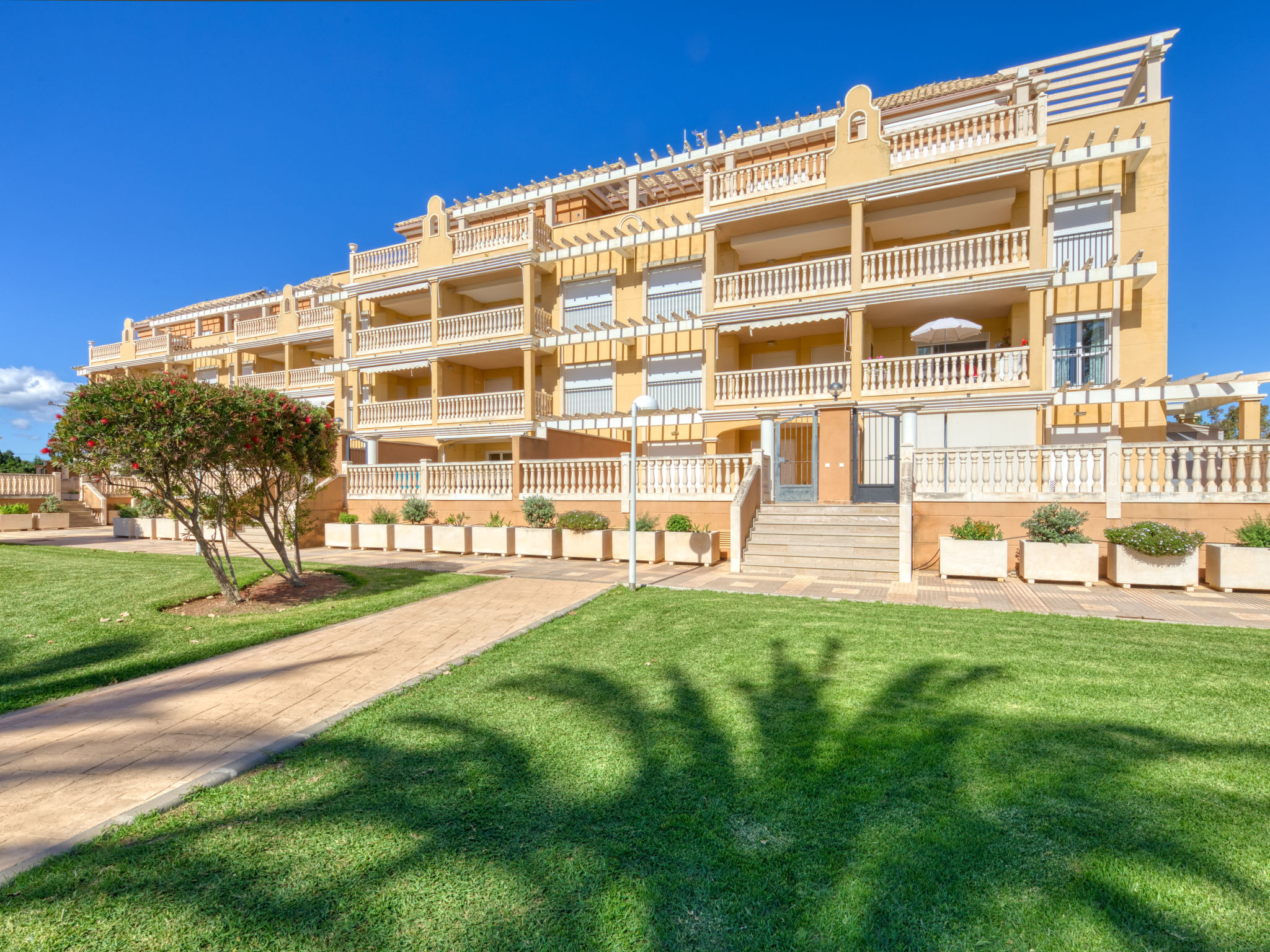 Sehr schönes, gemütliches, sehr komfortables Appartementhaus "Aquamarine". 5 km vom Zentrum von Dénia, im Bezirk Les Marines, ruhige, sonnige Lage, 450 m vom Meer, 450 m vom Strand. Zur Mitbenutzung: grosser, schöner, gepflegter Garten (eingezäunt) mit Rasen und Pflanzen, Schwimmbad (26 x 10 m, 80 - 210 cm tief, saisonale Verfügbarkeit: 01.Jan.-31.Dez.). Kinderbecken, Rutschbahn, Aussendusche, Kinderspielplatz. Zur Alleinbenutzung: Terrasse (35 m2), Gartenmöbel, Grill. Im Hause: Fahrstuhl, Zentralheizung, Klimaanlage. Einzelgarage. Einkaufsgeschäft 250 m, Supermarkt 450 m, Restaurant, Café 80 m, Bushaltestelle 50 m, Sandstrand "Els Molins" 450 m. Sporthafen 5 km, Golfplatz (18 Loch) 2 km, Surfschule, Segelschule 450 m. Bitte beachten: geeignet für Familien.