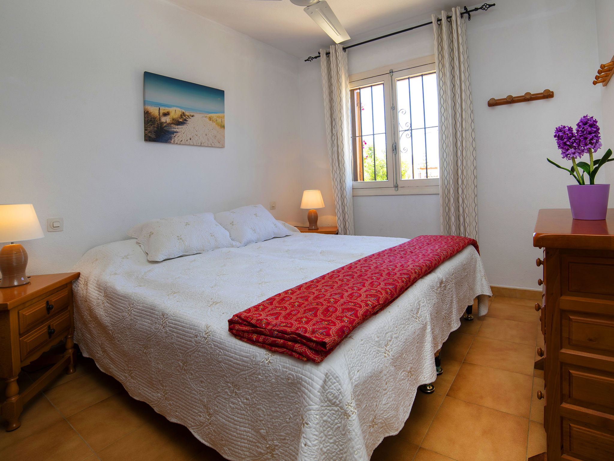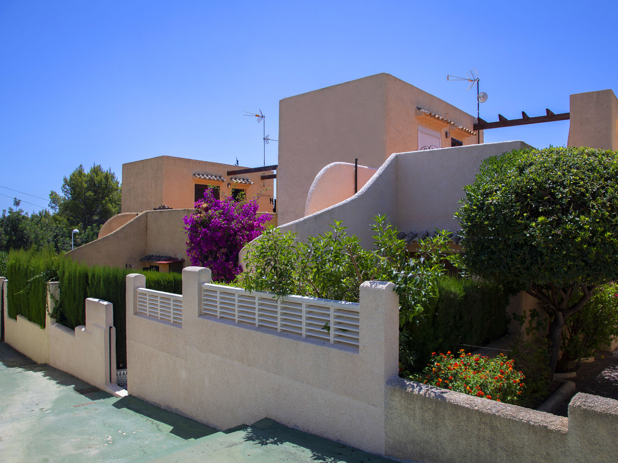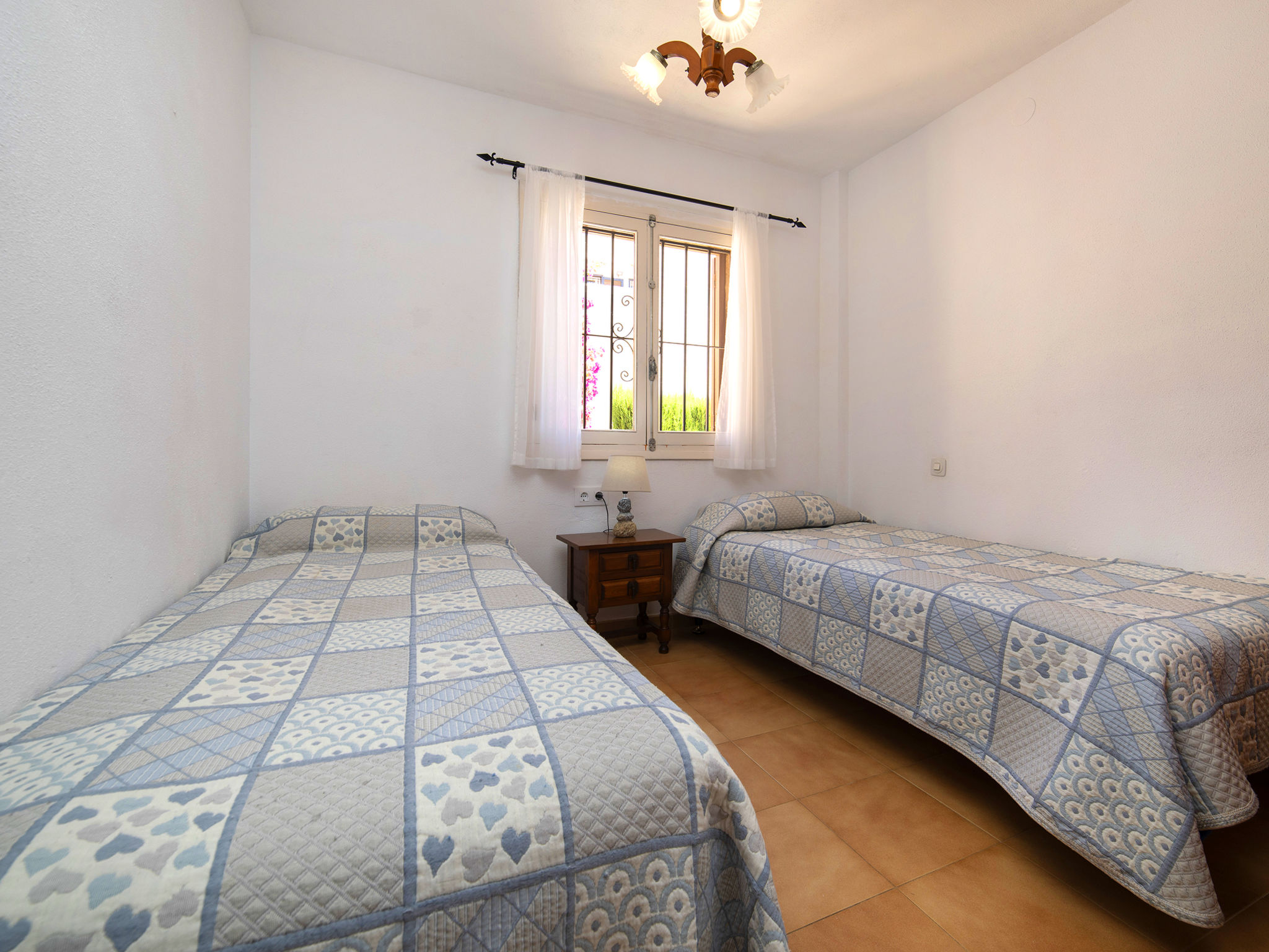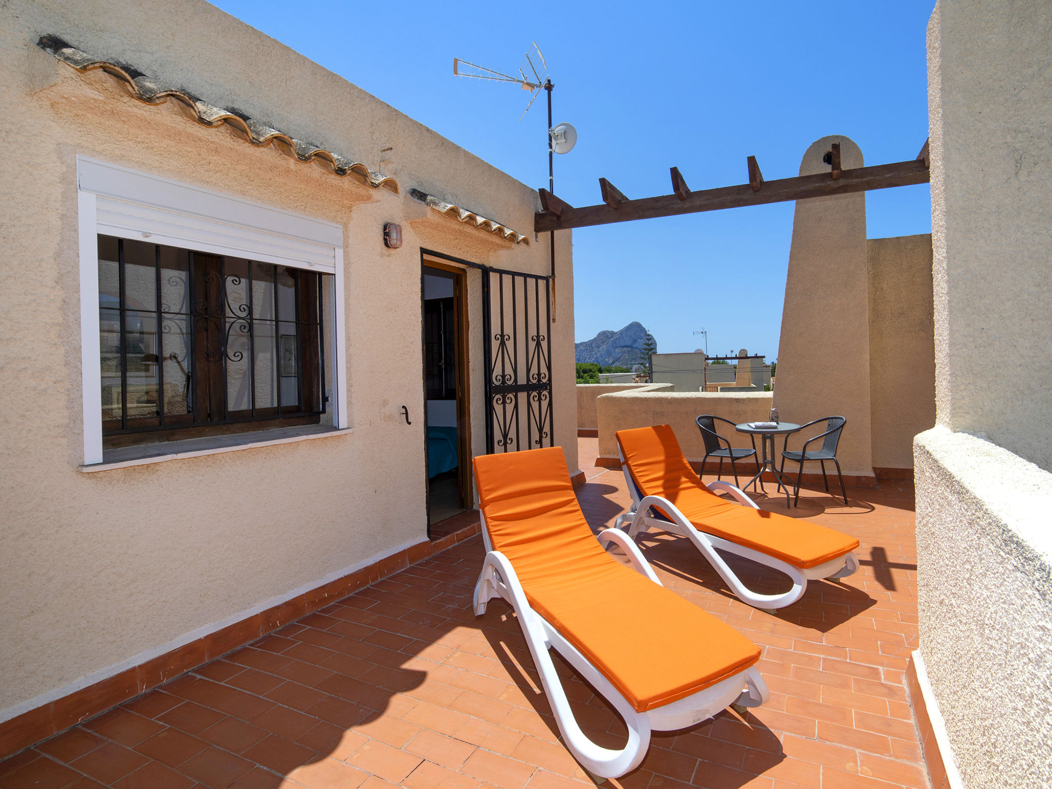 "Vega", 3-Zimmer-Bungalow 104 m2 auf 2 Stockwerken. Komfortabel und schön eingerichtet: offenes Wohn-/Esszimmer mit Sat-TV, Klimaanlage, Ventilator und Warmluftheizung. 1 Zimmer mit 1 Doppelbett (2 x 90 cm, Länge 200 cm), Ventilator. 1 Zimmer, ohne Schrank mit 2 Betten (90 cm, Länge 200 cm). Offene Küche (4 Kochplatten, Backofen, Mikrowelle, elektrische Kaffeemaschine). Bad/WC. Obergeschoss: (Aussentreppe) 1 Zimmer mit 1 Doppelbett (2 x 90 cm, Länge 200 cm), Dusche/WC und Ventilator. Kleine Terrasse. Gartengrill. Schöne Sicht auf die Ortschaft und das Städtchen. Zur Verfügung: Waschmaschine, Bügeleisen, Kinderhochstuhl, Babybett bis 2 Jahre, Haartrockner. Internet (Wireless LAN, gratis). Geeignet für Familien. VT-484122-A