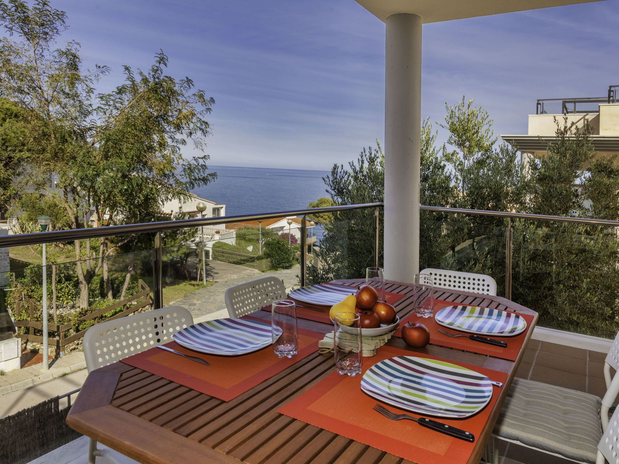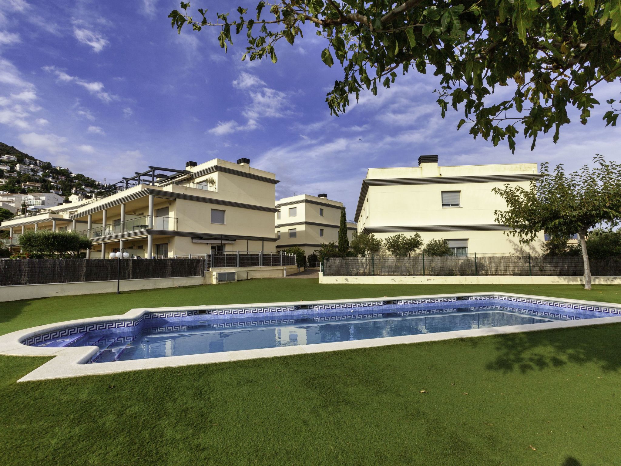 Fané de Baix: Gemütliches Appartementhaus "Fane de Baix III", auf 3 Stockwerken. Unterhalb von Ctra. Llançà-El Port de la Selva, im Ort, 1.8 km vom Zentrum von llançà, sonnige Lage, 100 m vom Meer. Zur Mitbenutzung: Garten (eingezäunt) mit Rasen und Bäumen, Schwimmbad eckig (saisonale Verfügbarkeit: 01.Apr. und 30.Okt.). Aussendusche, Parkplatz Nr. 8. Supermarkt 1.8 km, Restaurant 1.8 km.