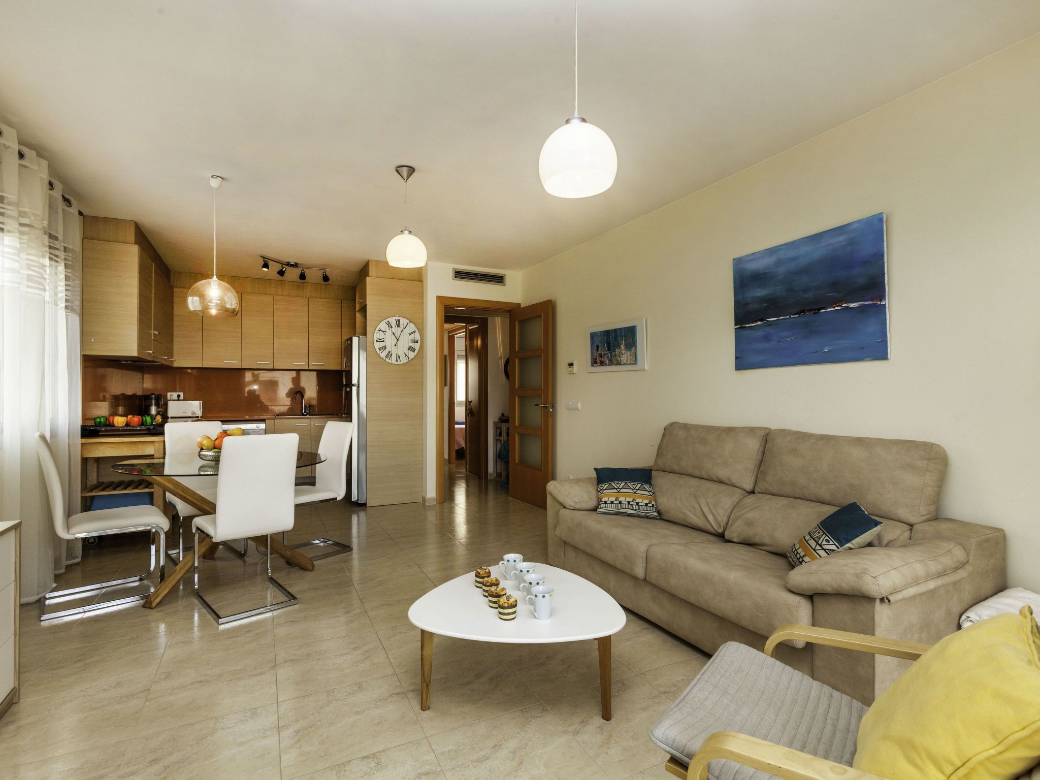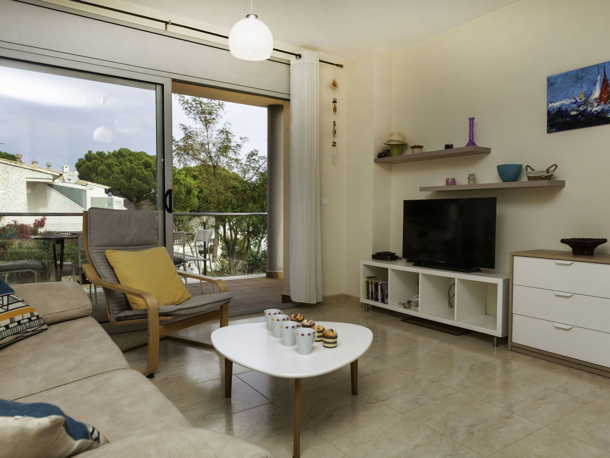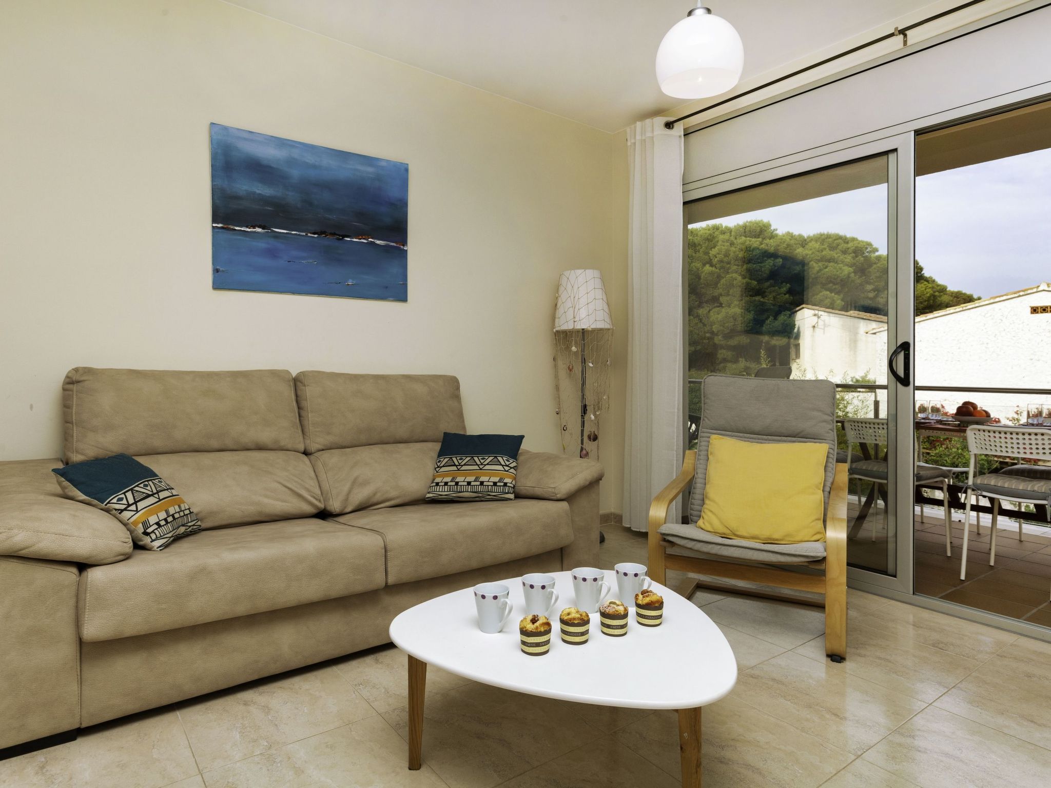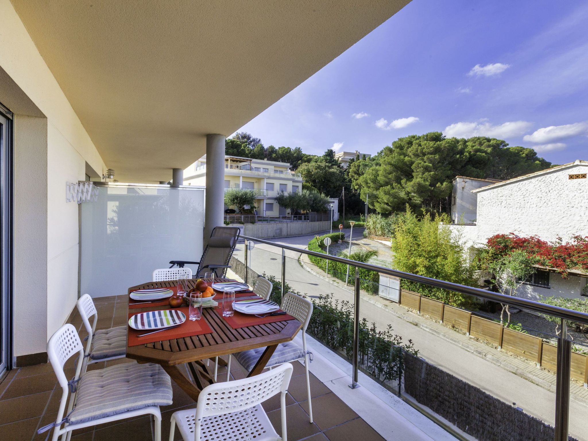 "Fane de baix III", 3-Zimmer-Wohnung 65 m2 im 1. Stock. Modern und gemütlich eingerichtet: Wohn-/Esszimmer mit Sat-TV (Flachbildschirm), Klimaanlage und Warmluftheizung. Ausgang zur Terrasse. 1 Zimmer mit 1 franz. Bett (1 x 150 cm), Klimaanlage und Warmluftheizung. 1 Zimmer mit 2 Betten (90 cm), Klimaanlage und Warmluftheizung. Offene Küche (Backofen, Geschirrspüler, 4 Glaskeramikherd Platten, Toaster, Wasserkocher, Mikrowelle, elektrische Kaffeemaschine). Dusche/Bidet/WC. Terrasse. Terrassenmöbel. Eingeschränkte Sicht auf das Meer. Zur Verfügung: Waschmaschine, Bügeleisen. Parkplatz Nr. 8. Geeignet für Familien. HUTG020409