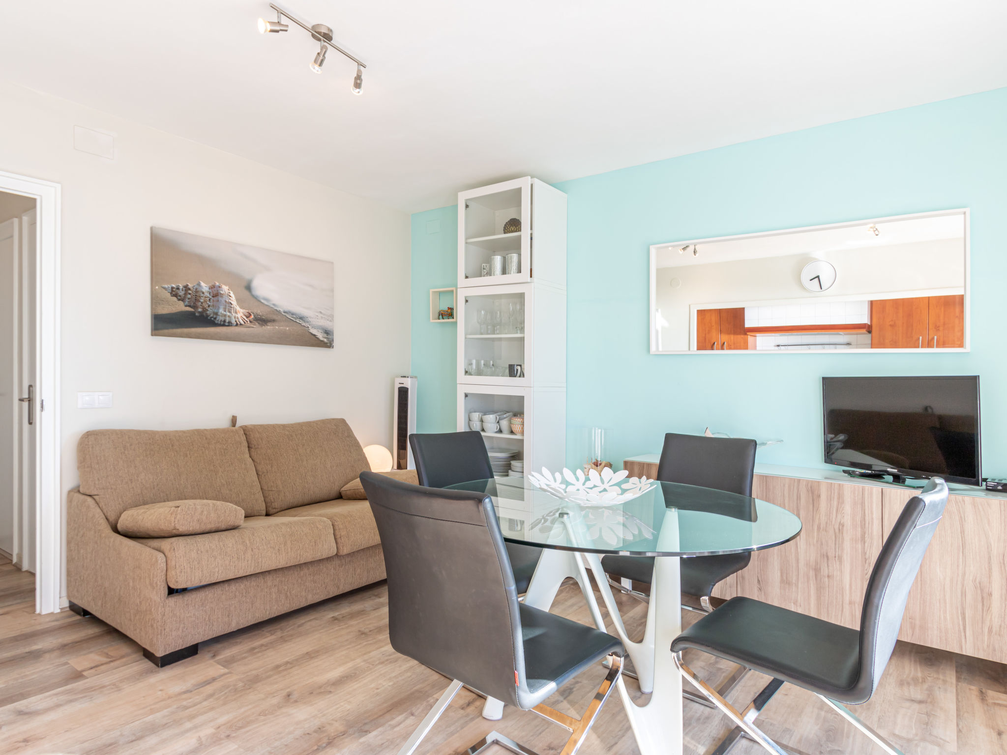 Paseo Maritimo Roses: Residenz "Hort de Mar", auf 4 Stockwerken. Im Ortszentrum von Santa Margarida, 1.5 km vom Zentrum von Roses, zentrale, sonnige Lage, 50 m vom Meer, 30 m vom Strand, direkter Zugang zum Strand. Zur Mitbenutzung: schöner Garten. Supermarkt 30 m, Restaurant 20 m, Bar 10 m, Bäckerei 30 m, Café 10 m, Biergarten 6 m, Bushaltestelle 1 km, Bahnstation "Figueres" 15 km, Sandstrand "Roses/Santa Margarida" 30 m, Steinstrand 10 km, Tauchzentrum 300 m, Hallenbad 4 km, Badebucht 12 km, FKK - Strand 15 km. Sporthafen 1 km, Jacht-Hafen 1.5 km, Golfplatz 22 km, Surfschule 2 km, Segelschule 2 km, Minigolf 500 m, Sportzentrum 3 km, Radweg 30 m. Nahe gelegene Sehenswürdigkeiten: Parque acuático Aquabrava 2 km, Centro paracaidismo Skydive Empuriabrava 6 km, Cadaqués 19 km, Monasterio de Sant Pere de Rodes 21 km, Castillo de Peralada 21 km, Museo Dalí Figueres 23 km. Bekannte Seen in der Umgebung sind gut erreichbar: Lago de Banyoles 54 km. Bitte beachten: kein Fahrstuhl vorhanden. Jugendgruppen nur auf Anfrage.